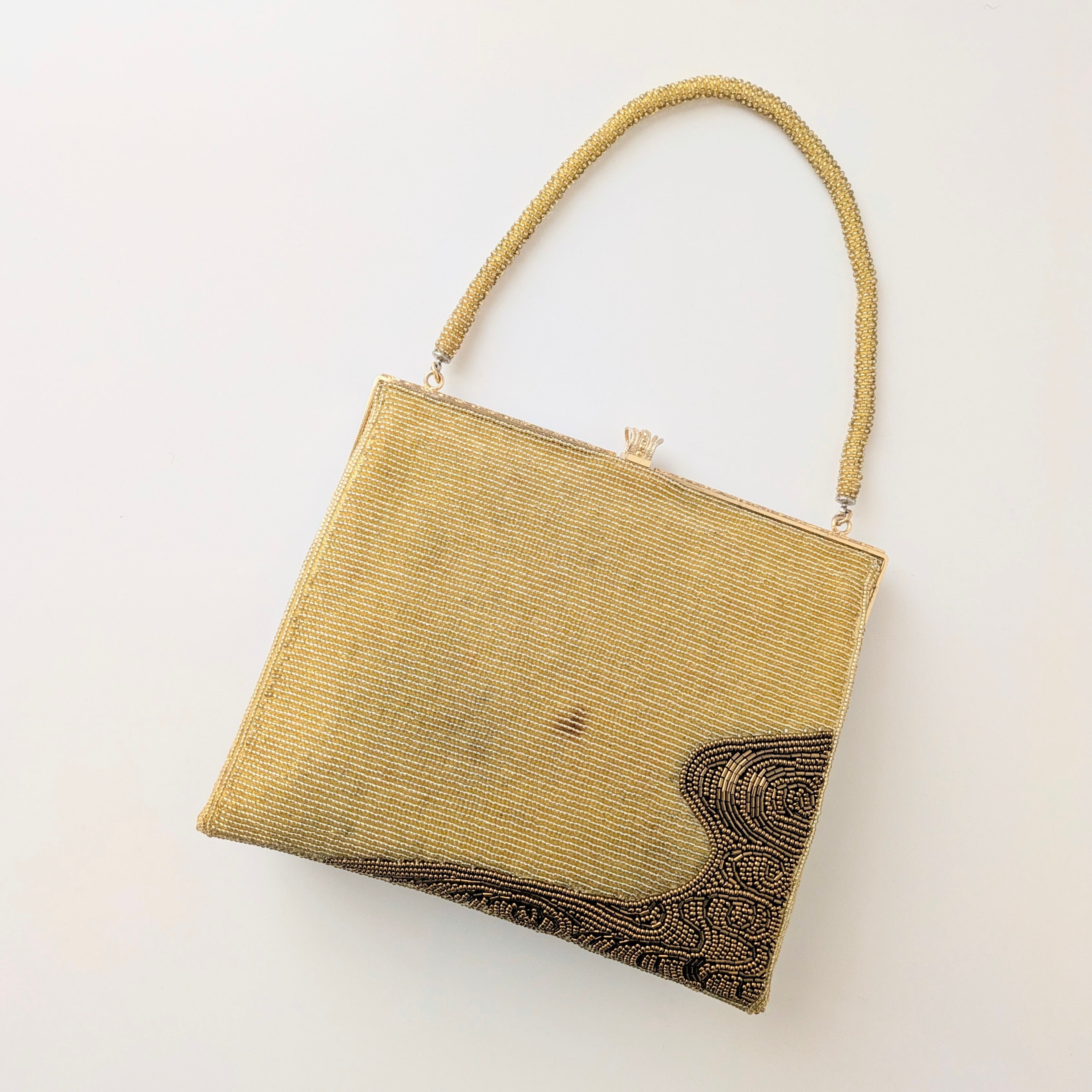 光を受けて美しく輝くヴィンテージビーズバッグ。