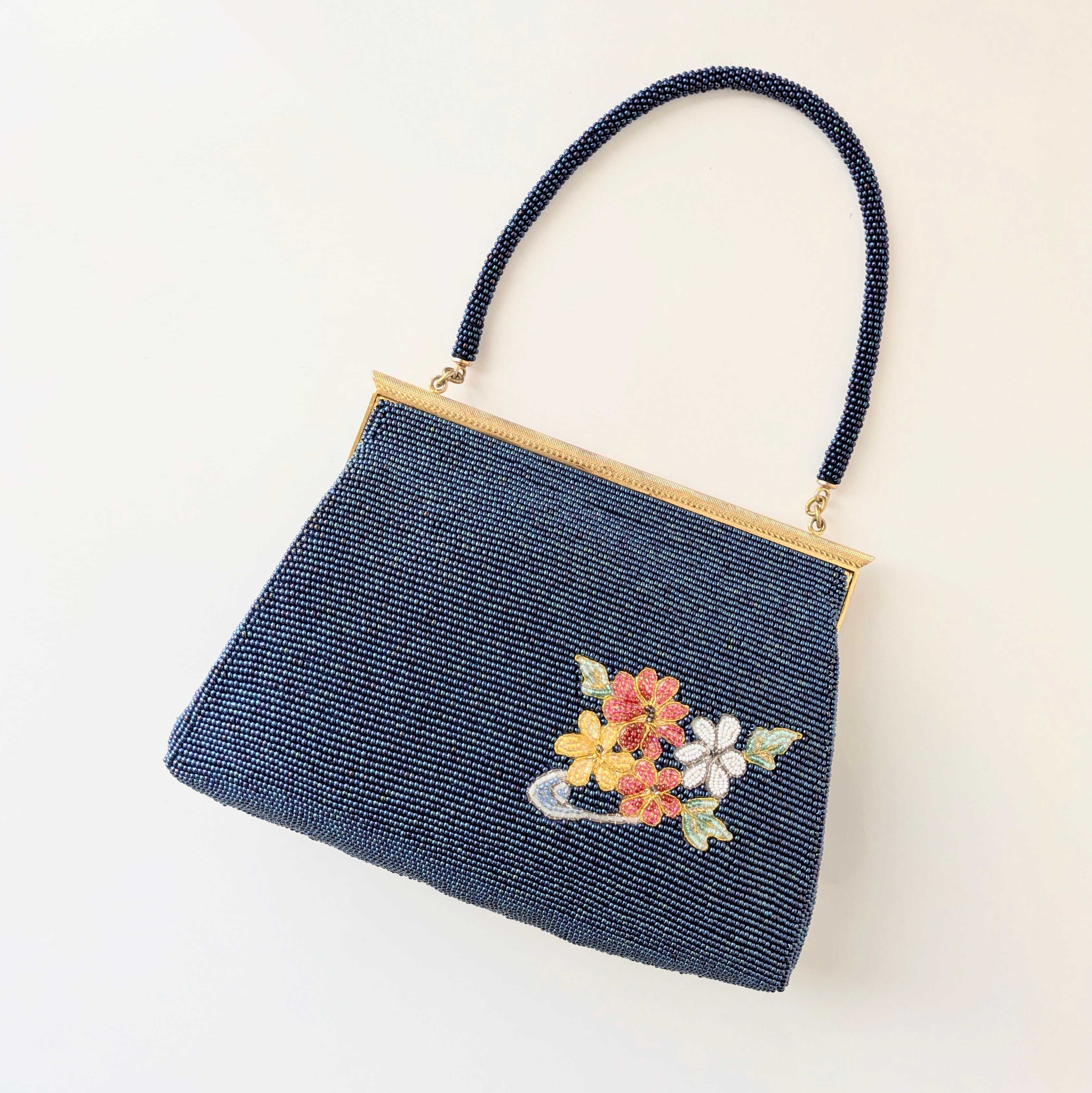 シンプルな装いにもパッと華が咲いたようなそんな存在感抜群なビーズバッグ。