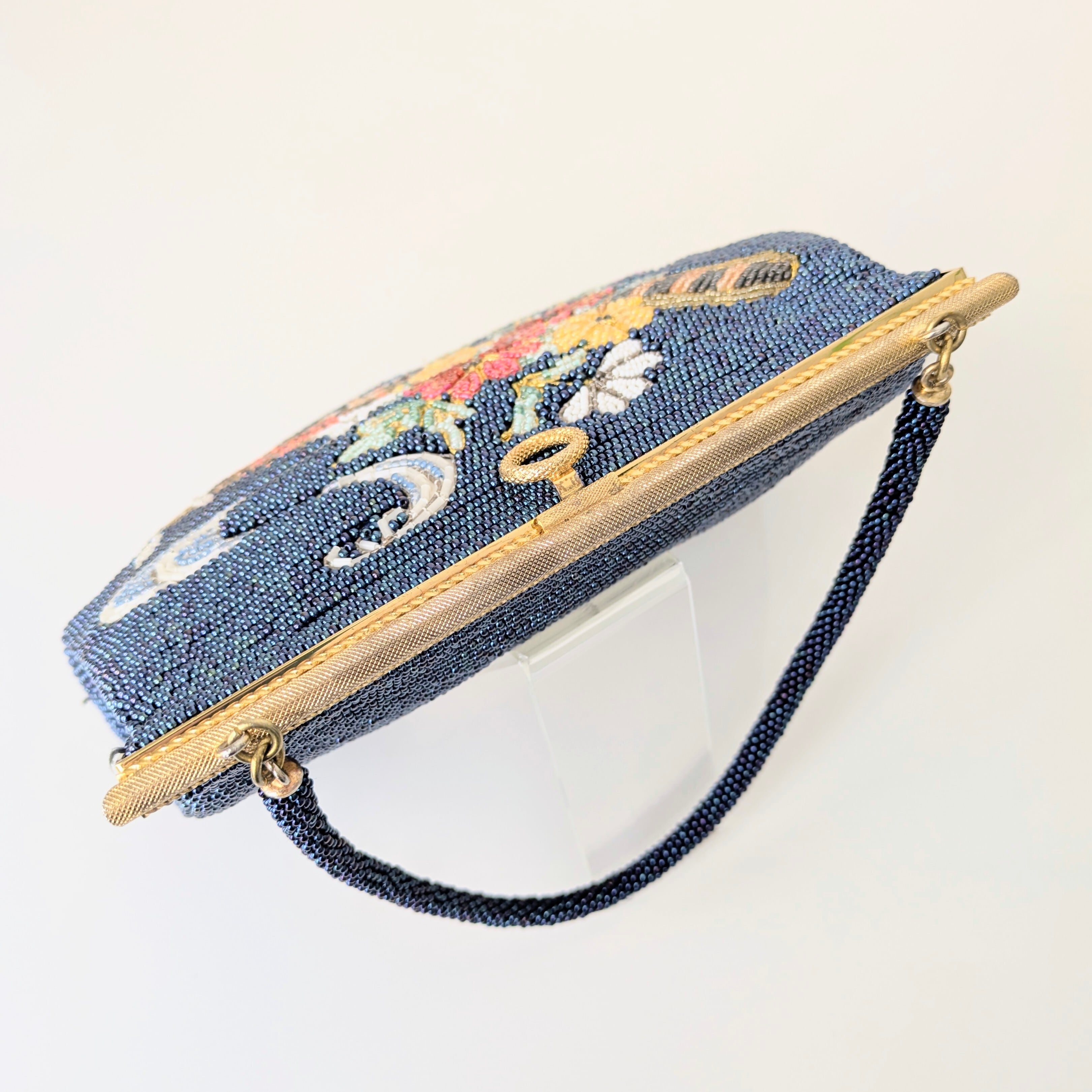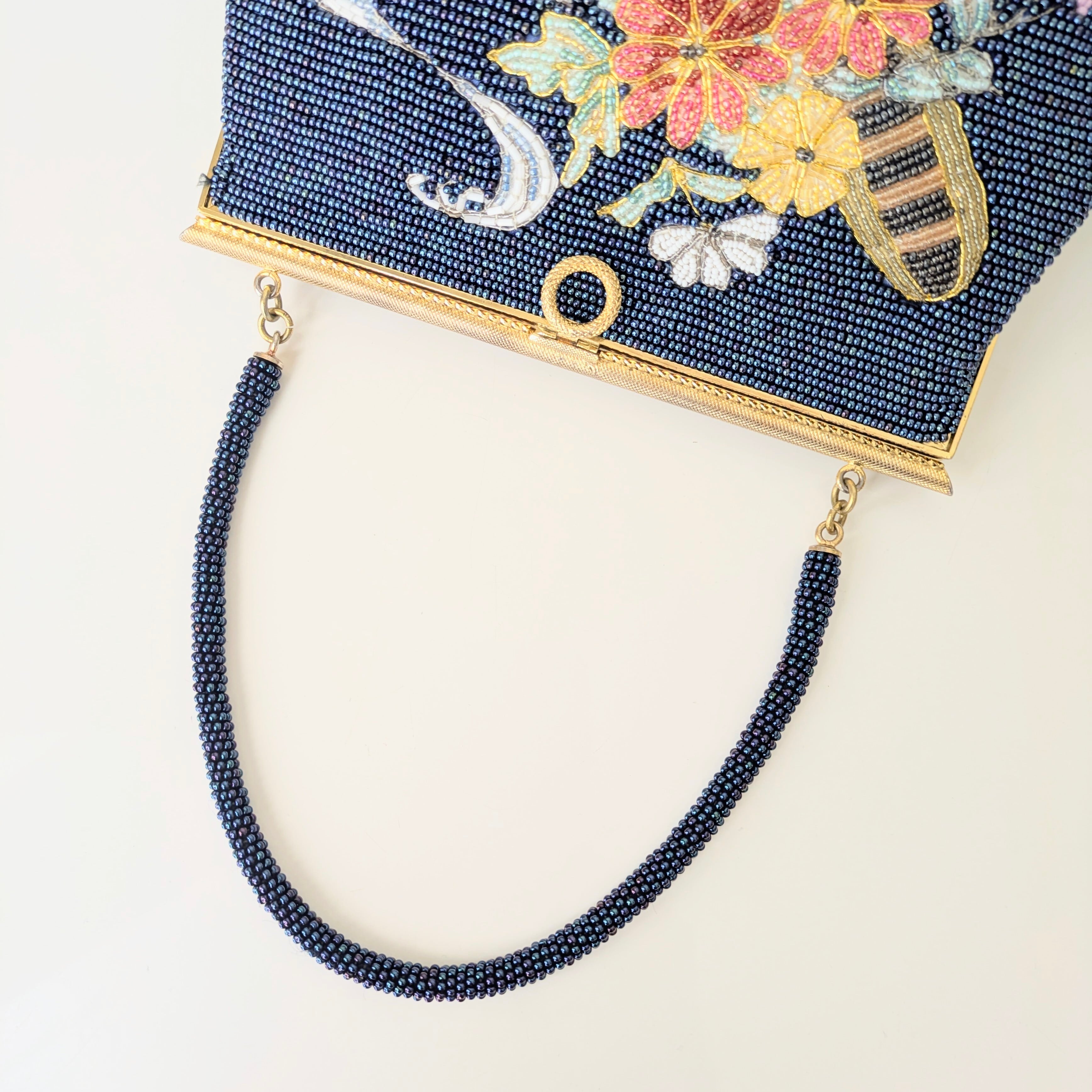 光を受けて美しく輝くヴィンテージビーズバッグ。