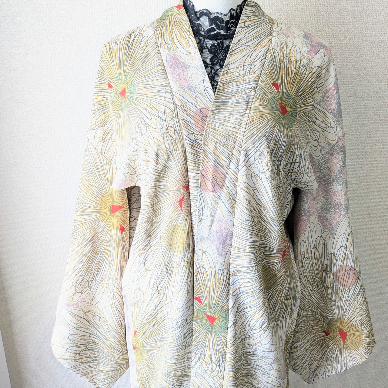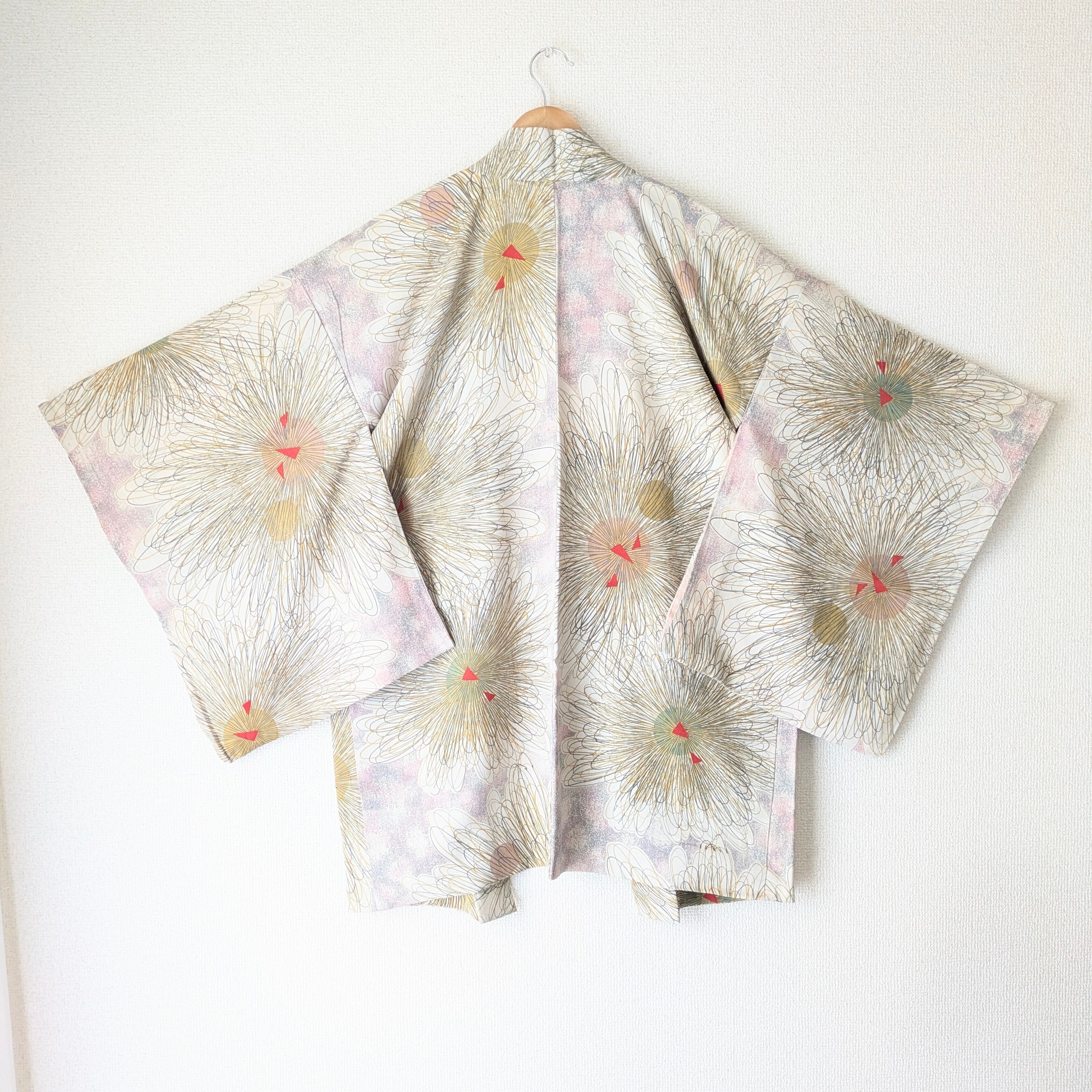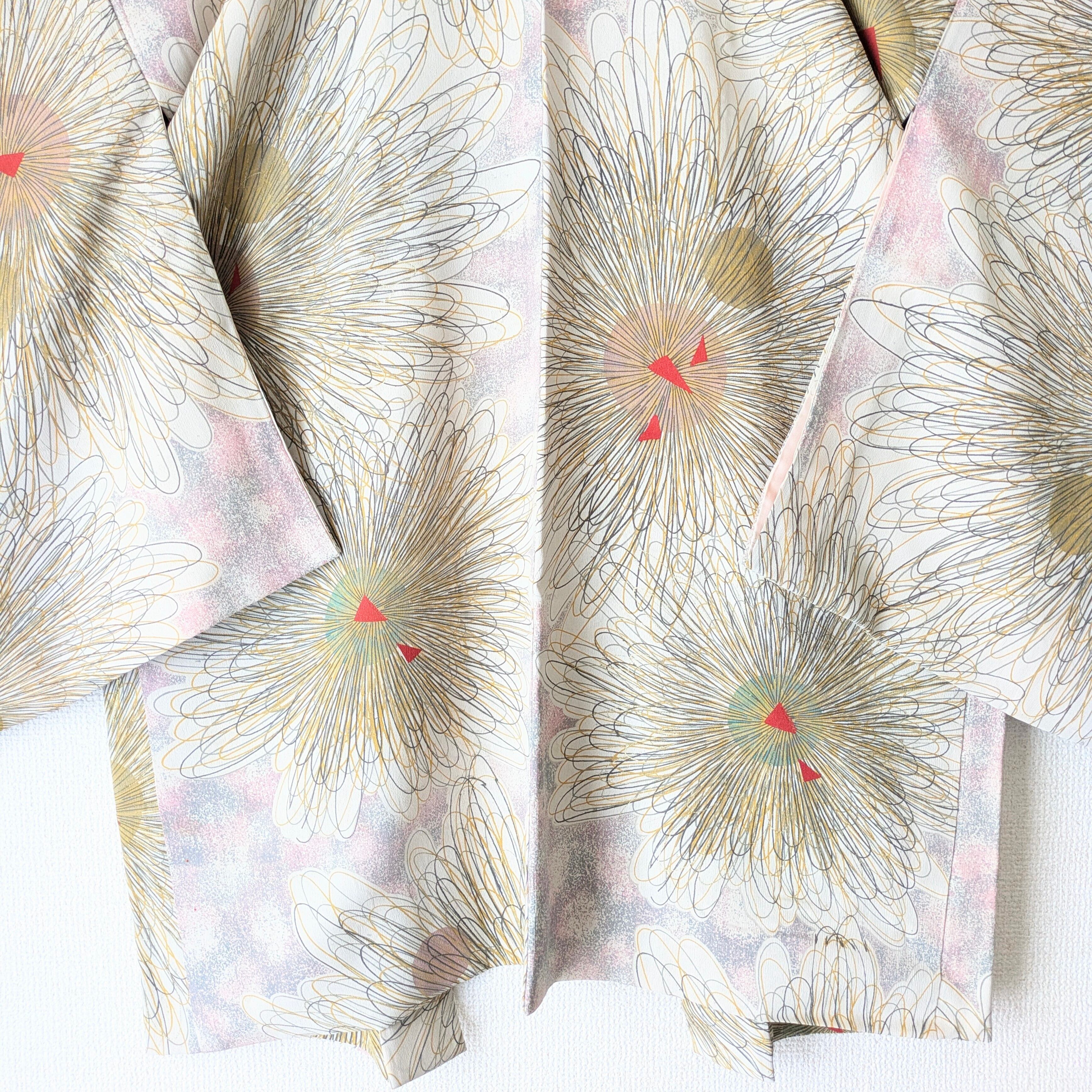 花火をモチーフに幾何学模様を合わせたモダンな柄の羽織です。