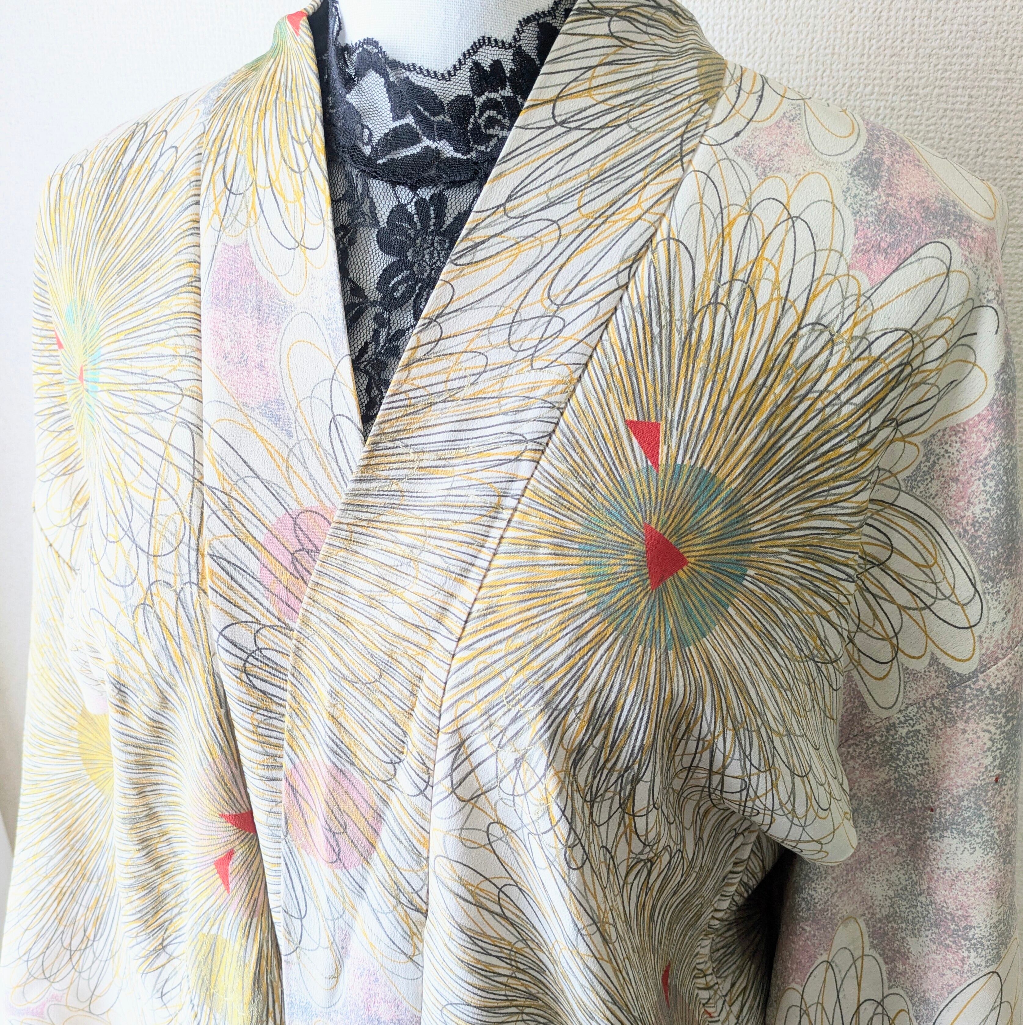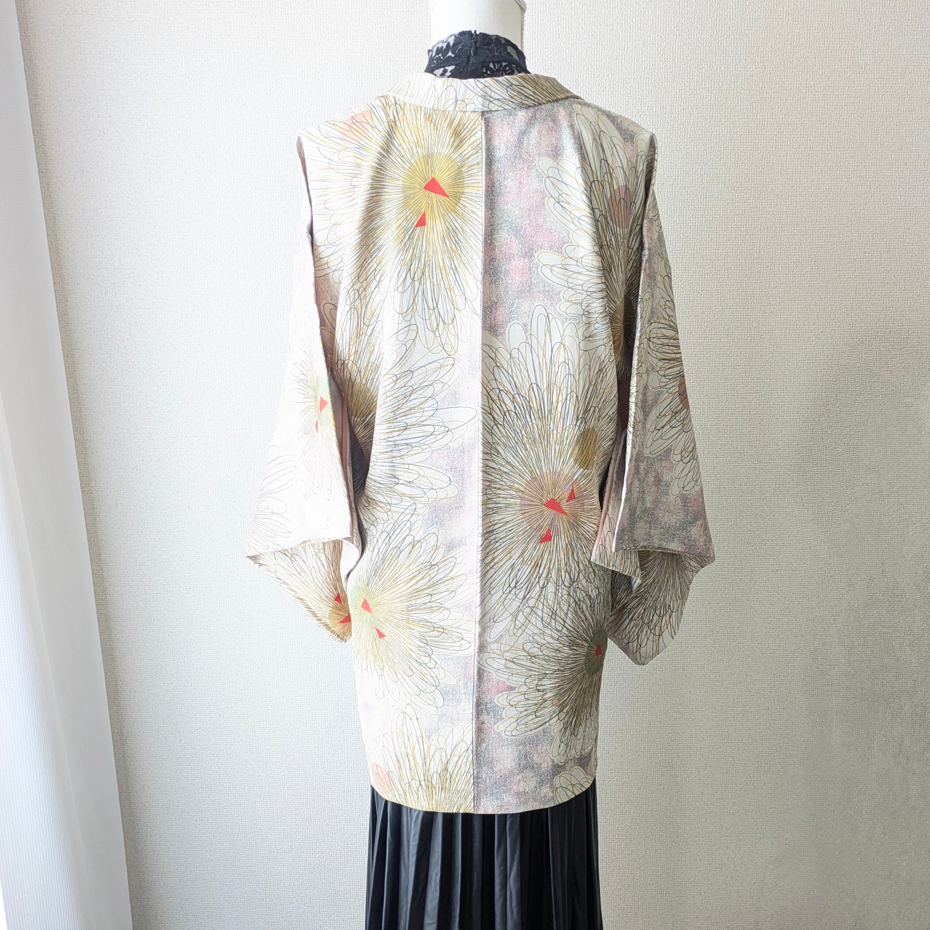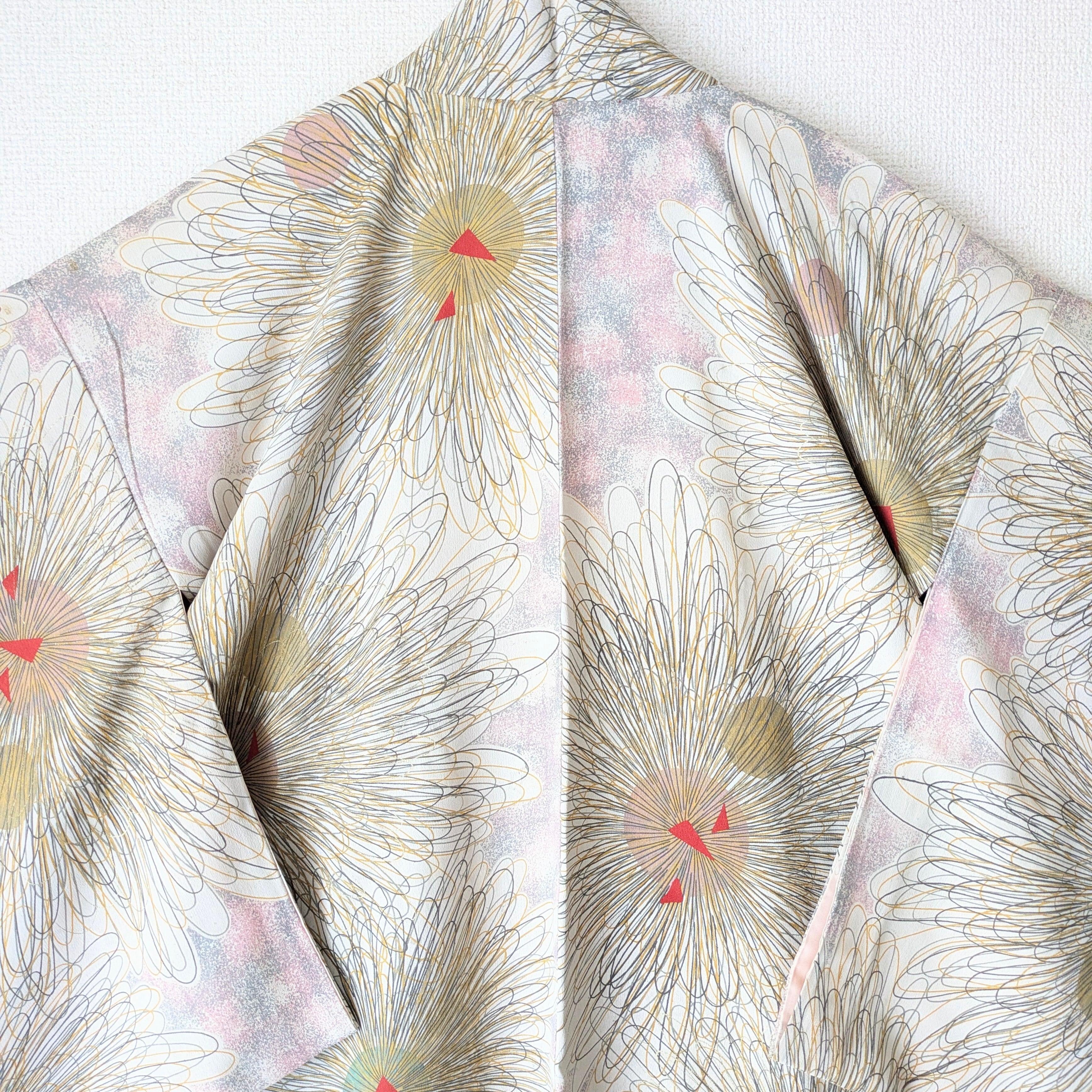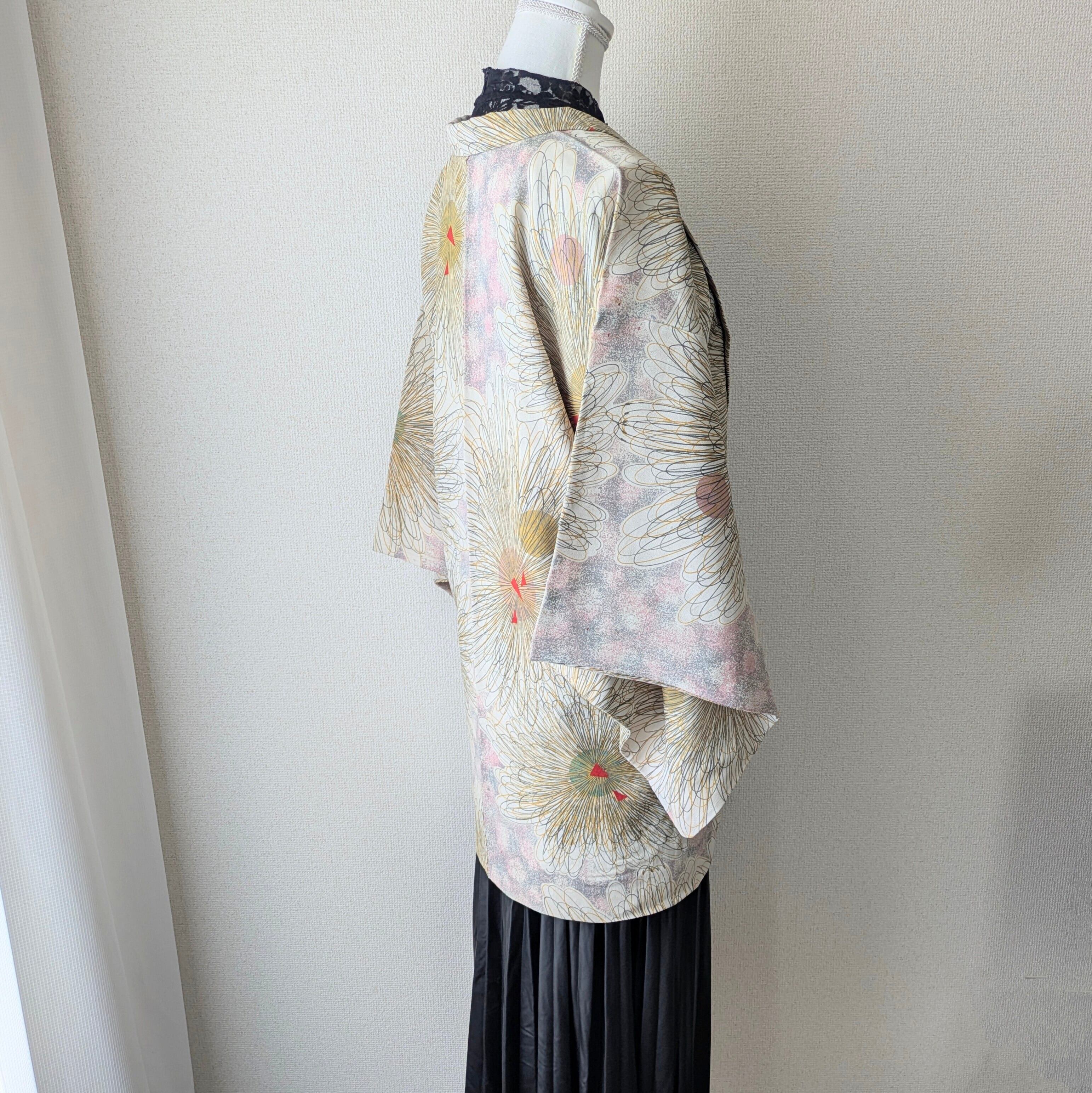 花火をモチーフに幾何学模様を合わせたモダンな柄の羽織です。