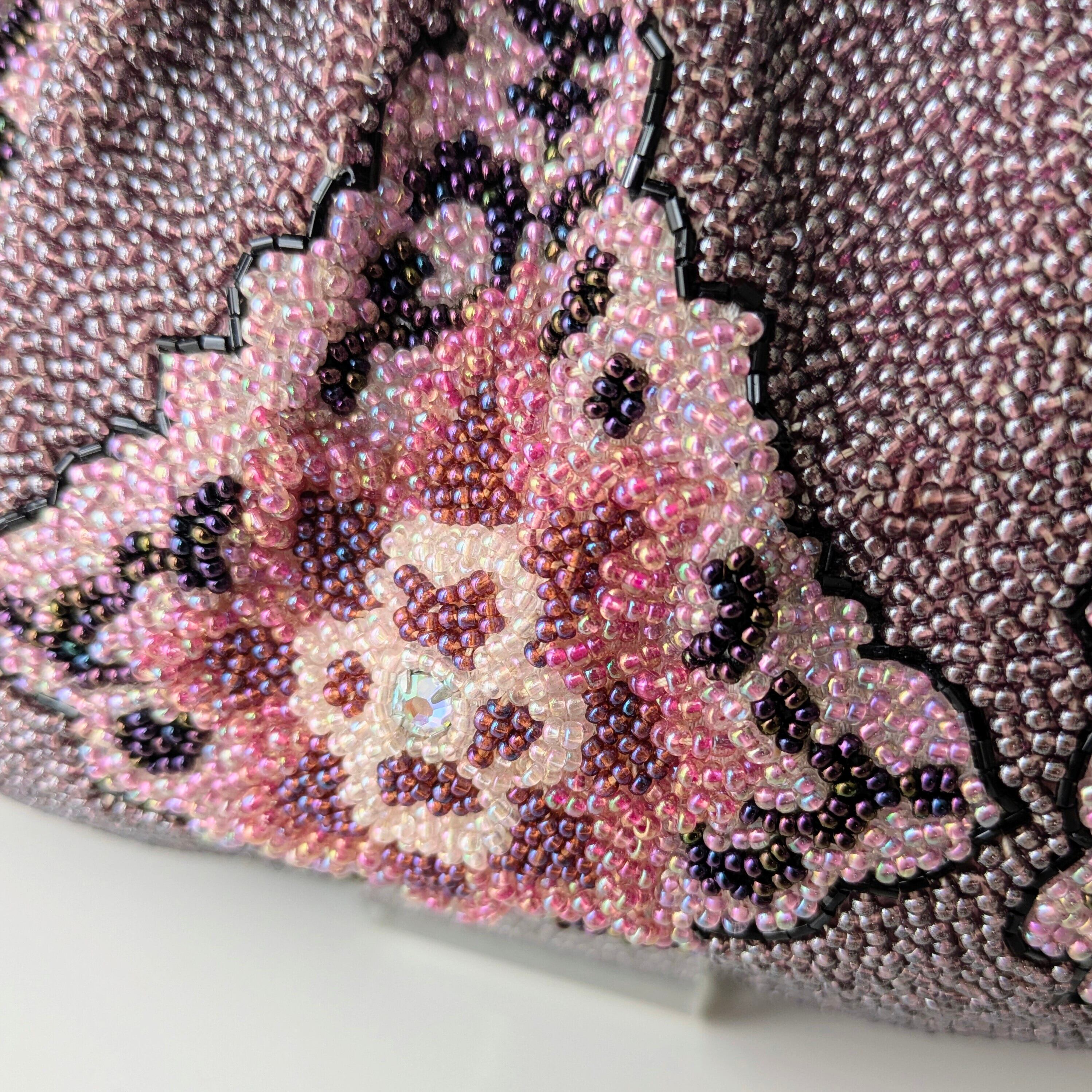 ビーズバッグの楽しみは、何と言っても手編みのビーズ刺繍。職人が一つ一つ丁寧に手作業で編み上げた、贅沢で美しいディテールです。