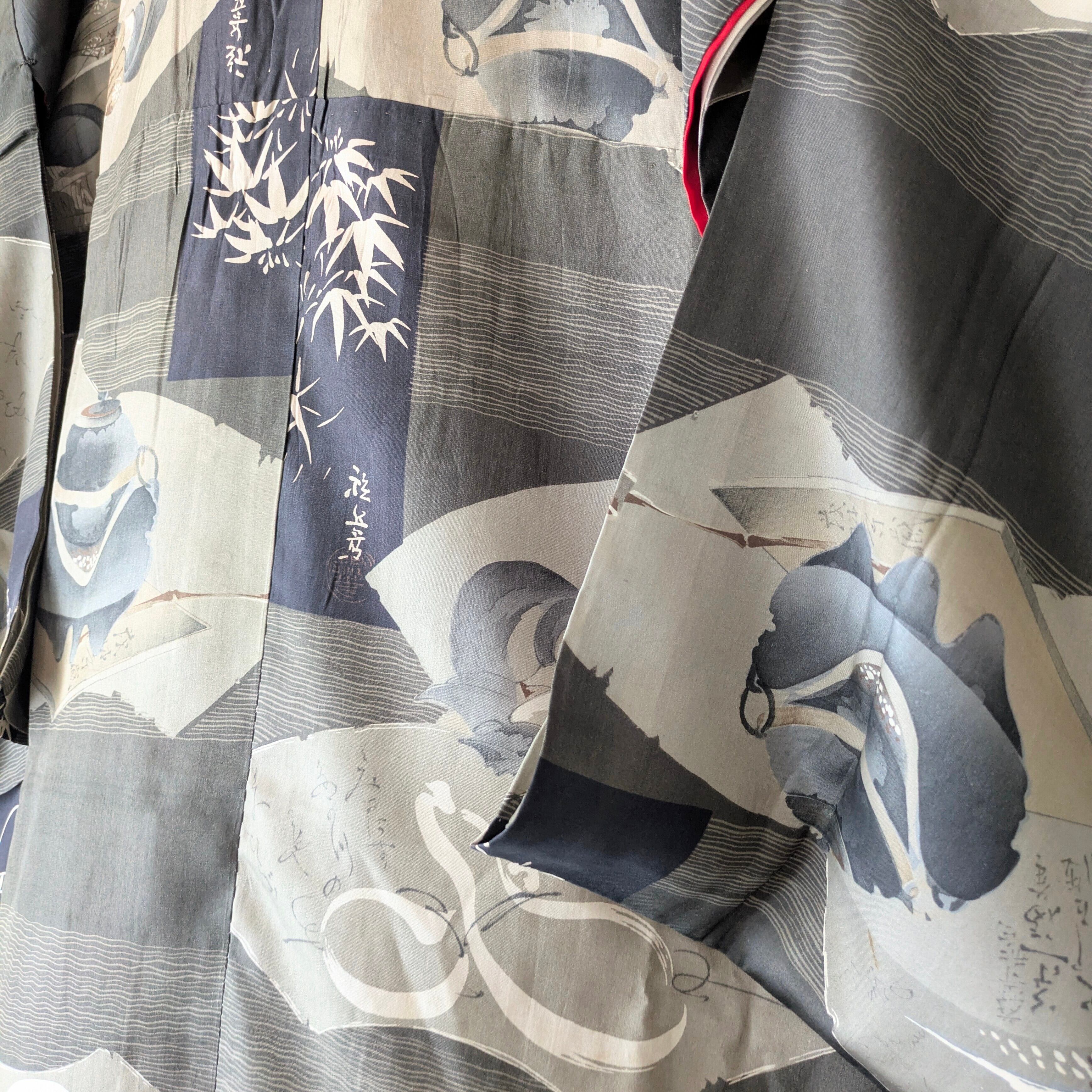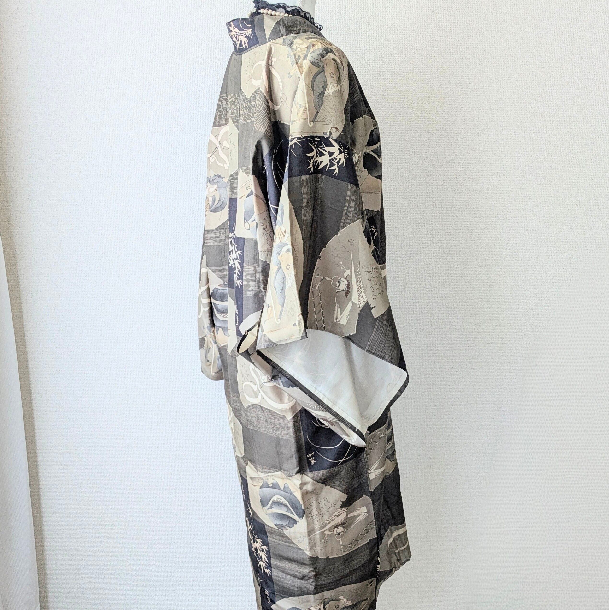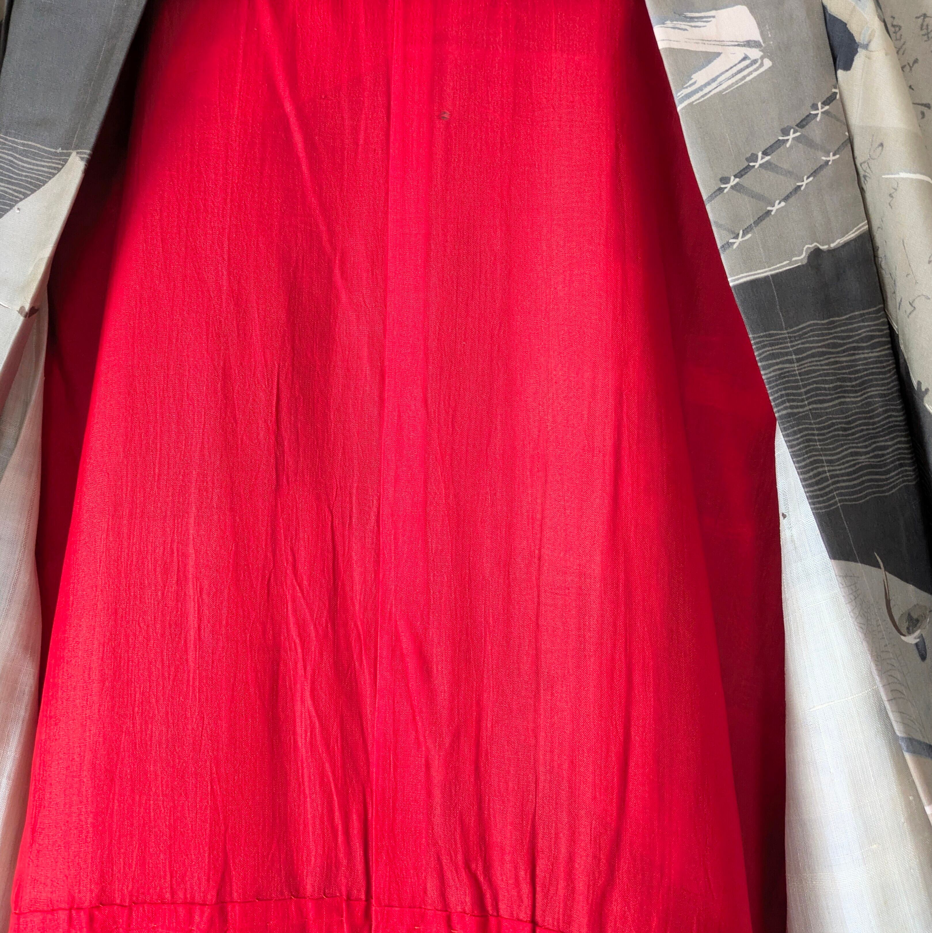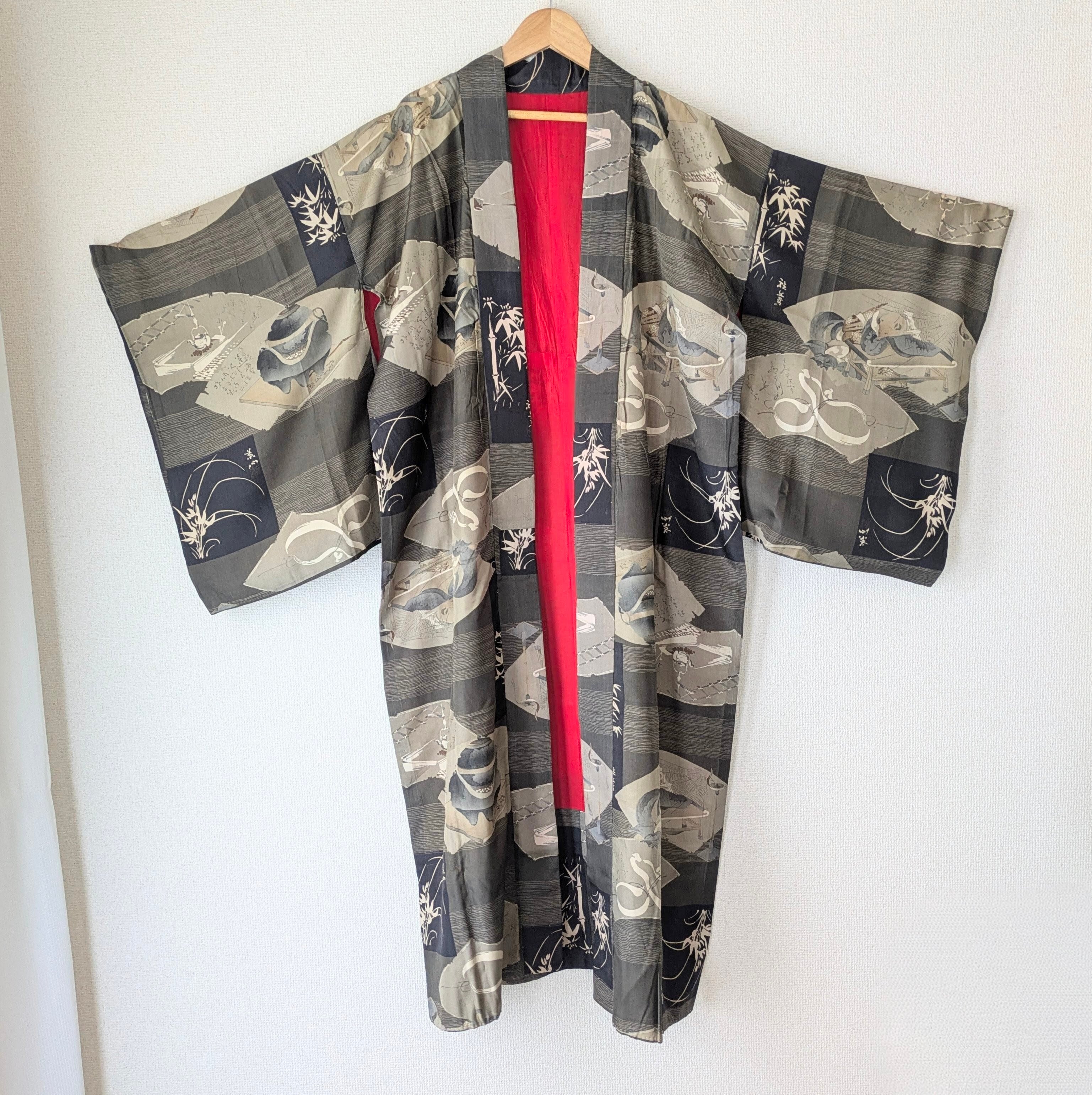 男性用のヴィンテージの長襦袢を女性用の羽織にリメイクされたと思われる長羽織です。
