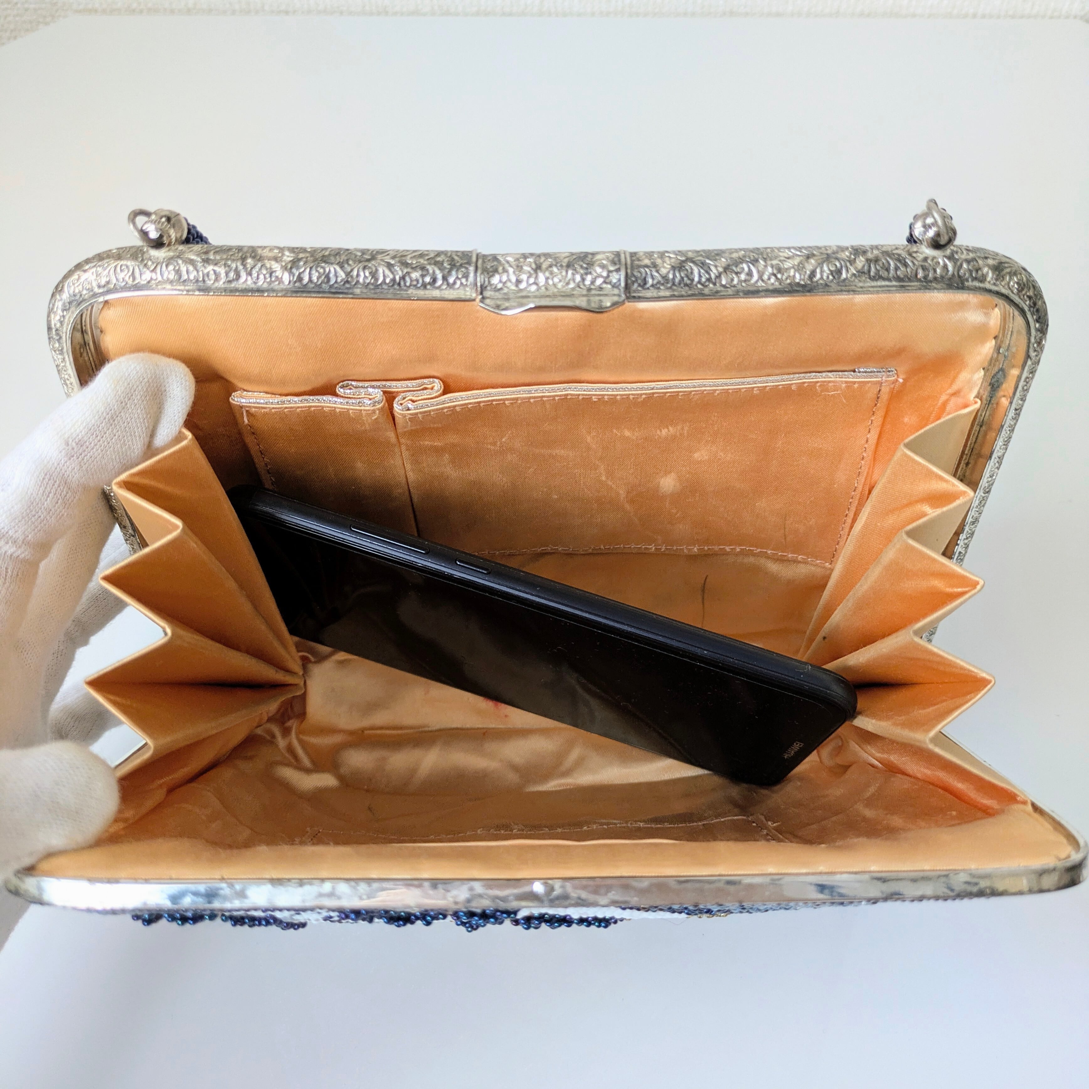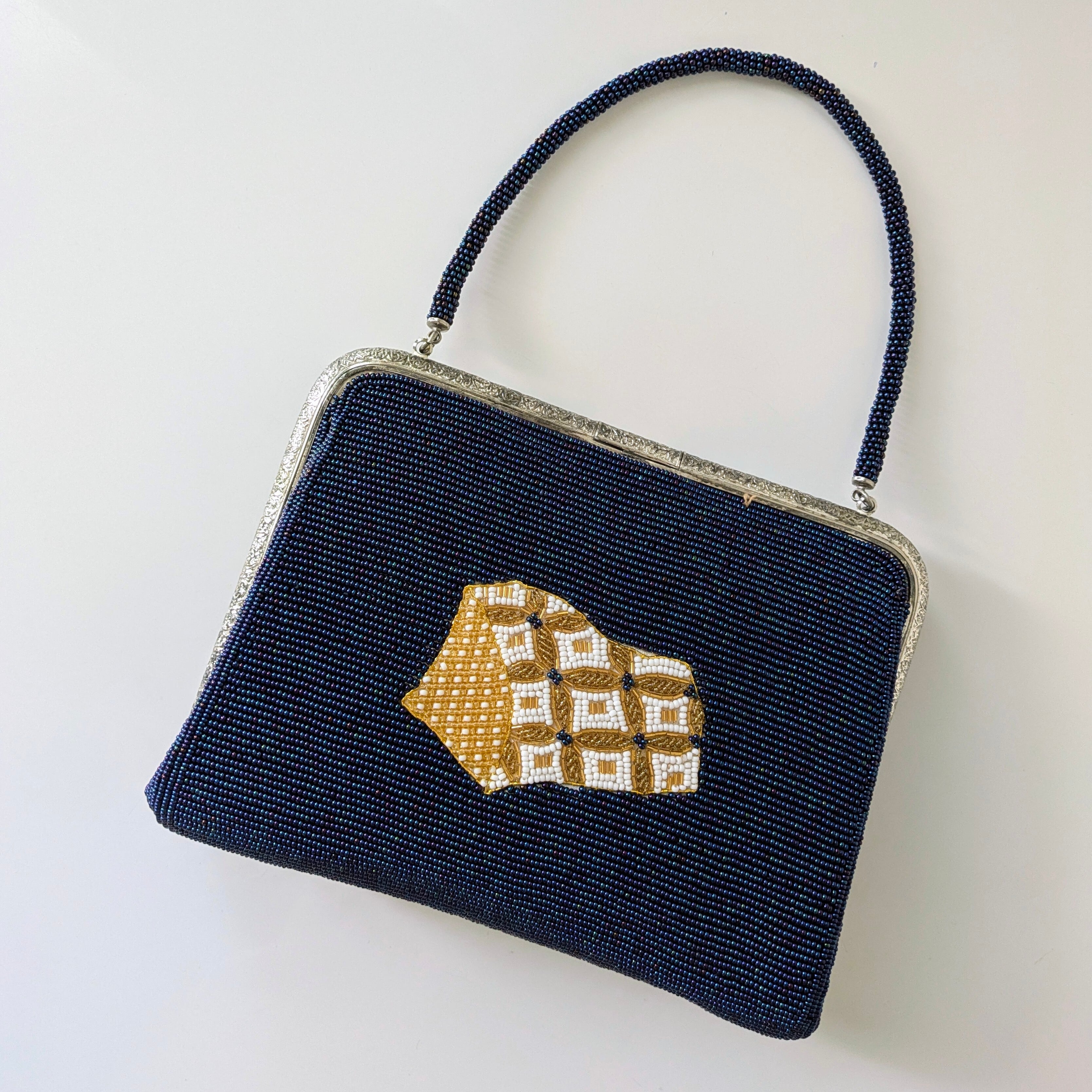 光を受けて美しく輝くヴィンテージビーズバッグ。