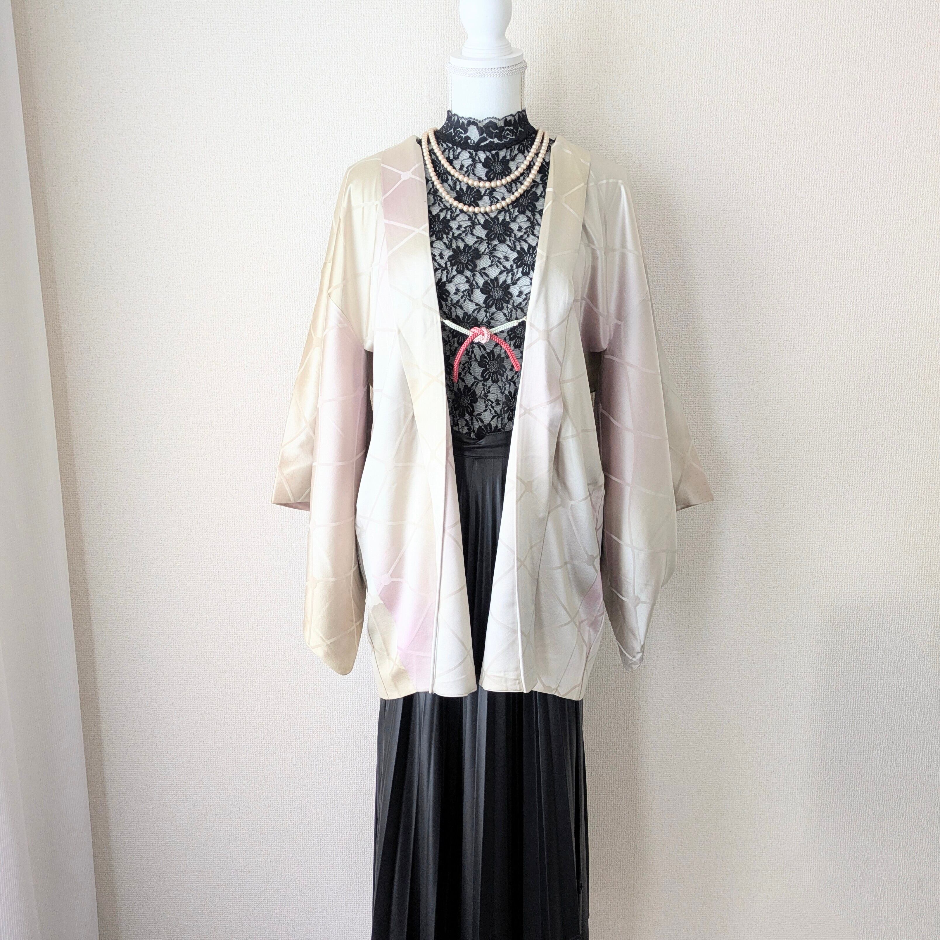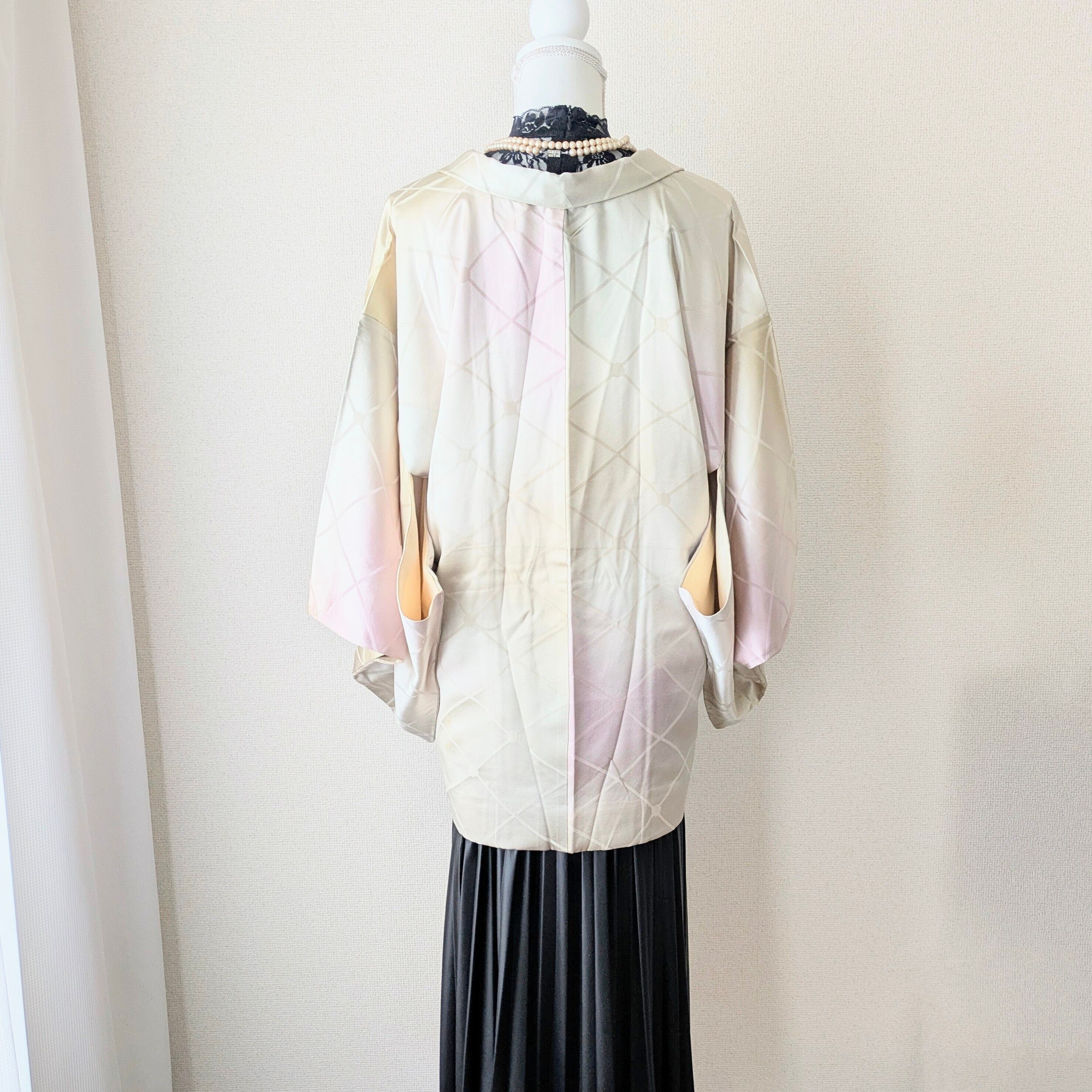 艶やかなグラデーションカラーの羽織です。淡い色彩が織りなす絹の風合いが美しい逸品。