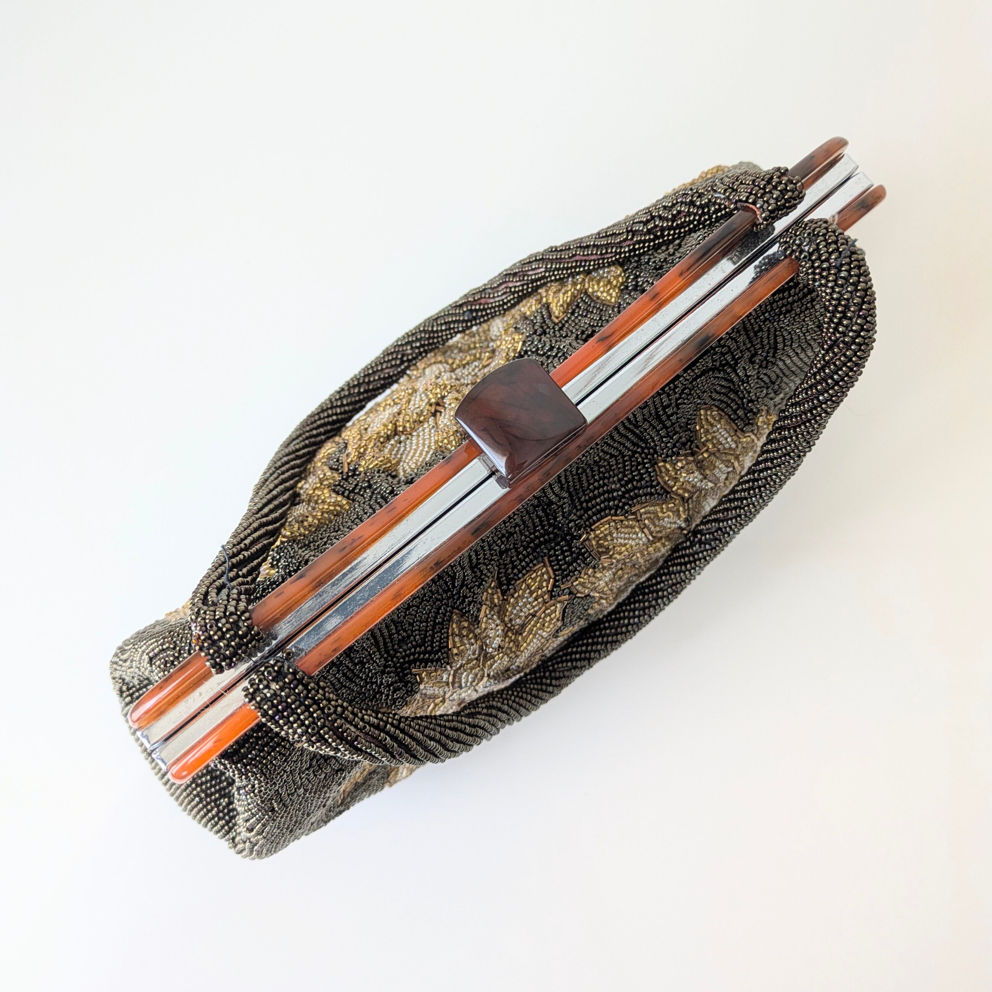 光を受けて美しく輝くヴィンテージビーズバッグ。