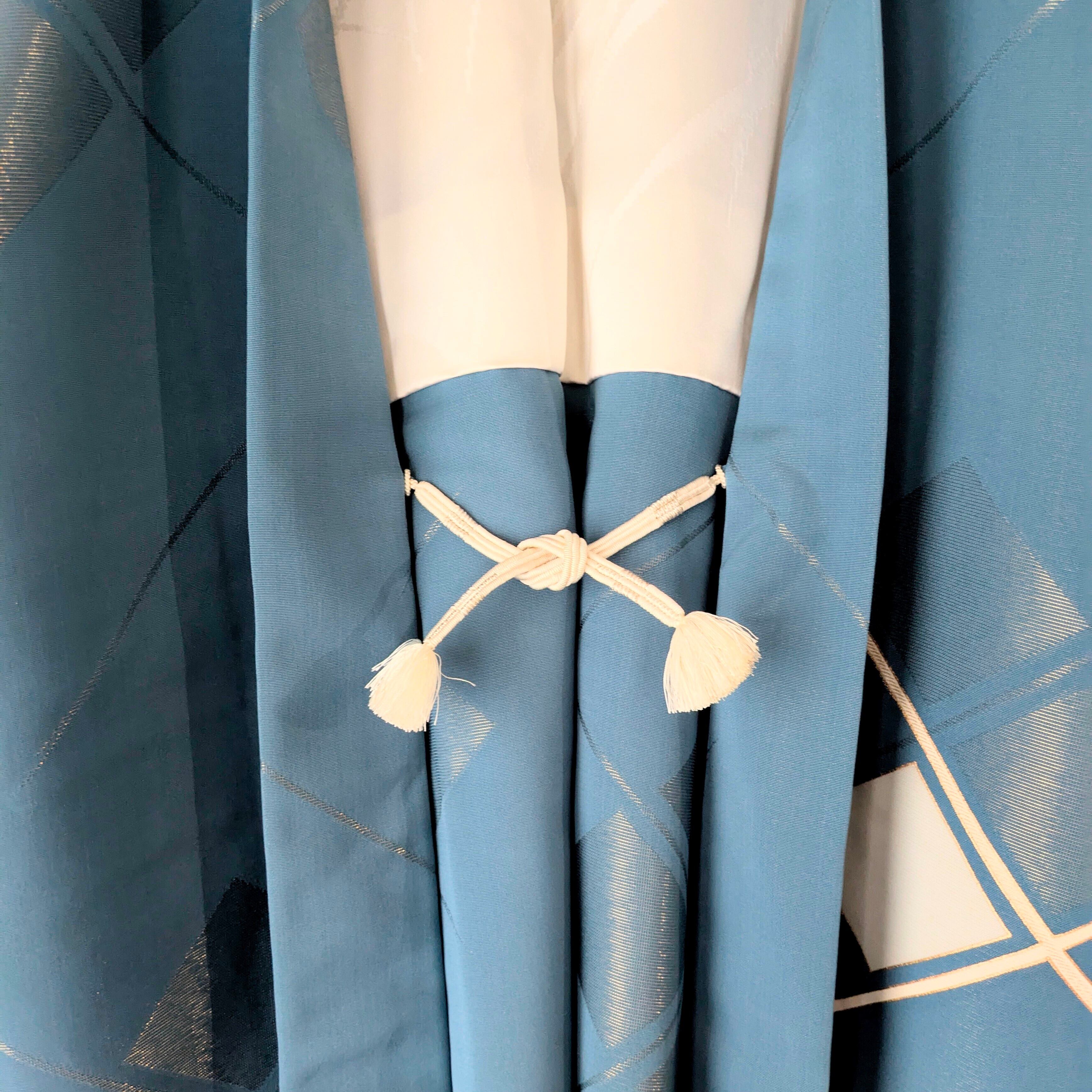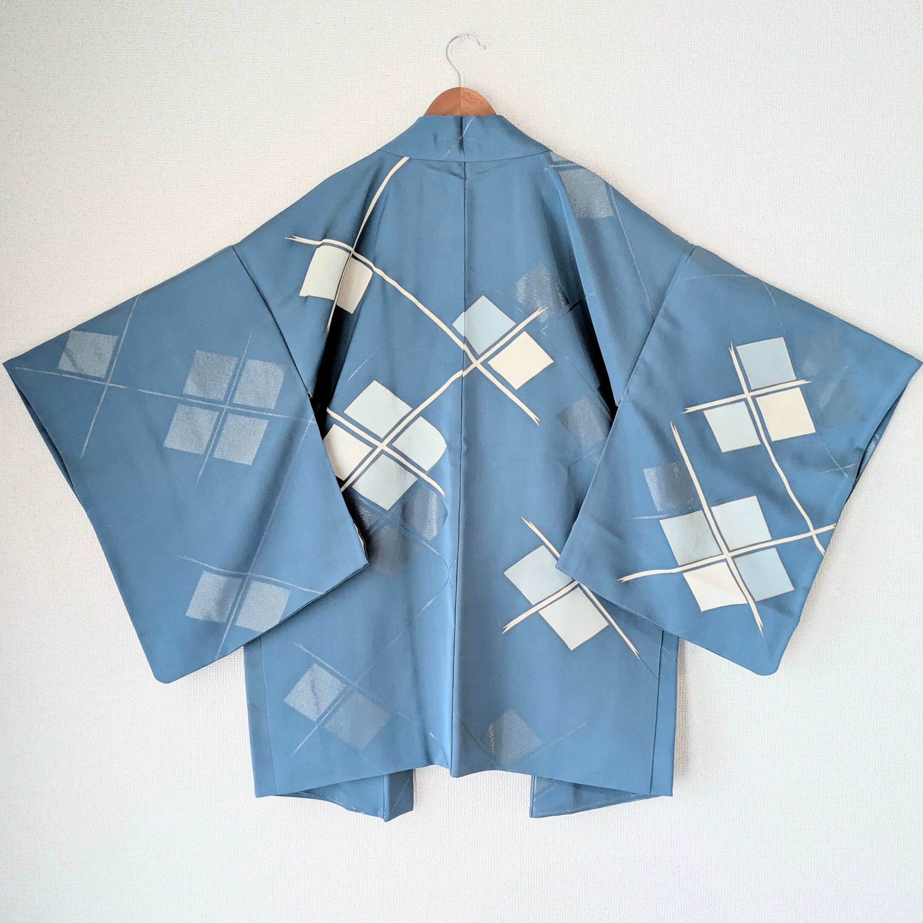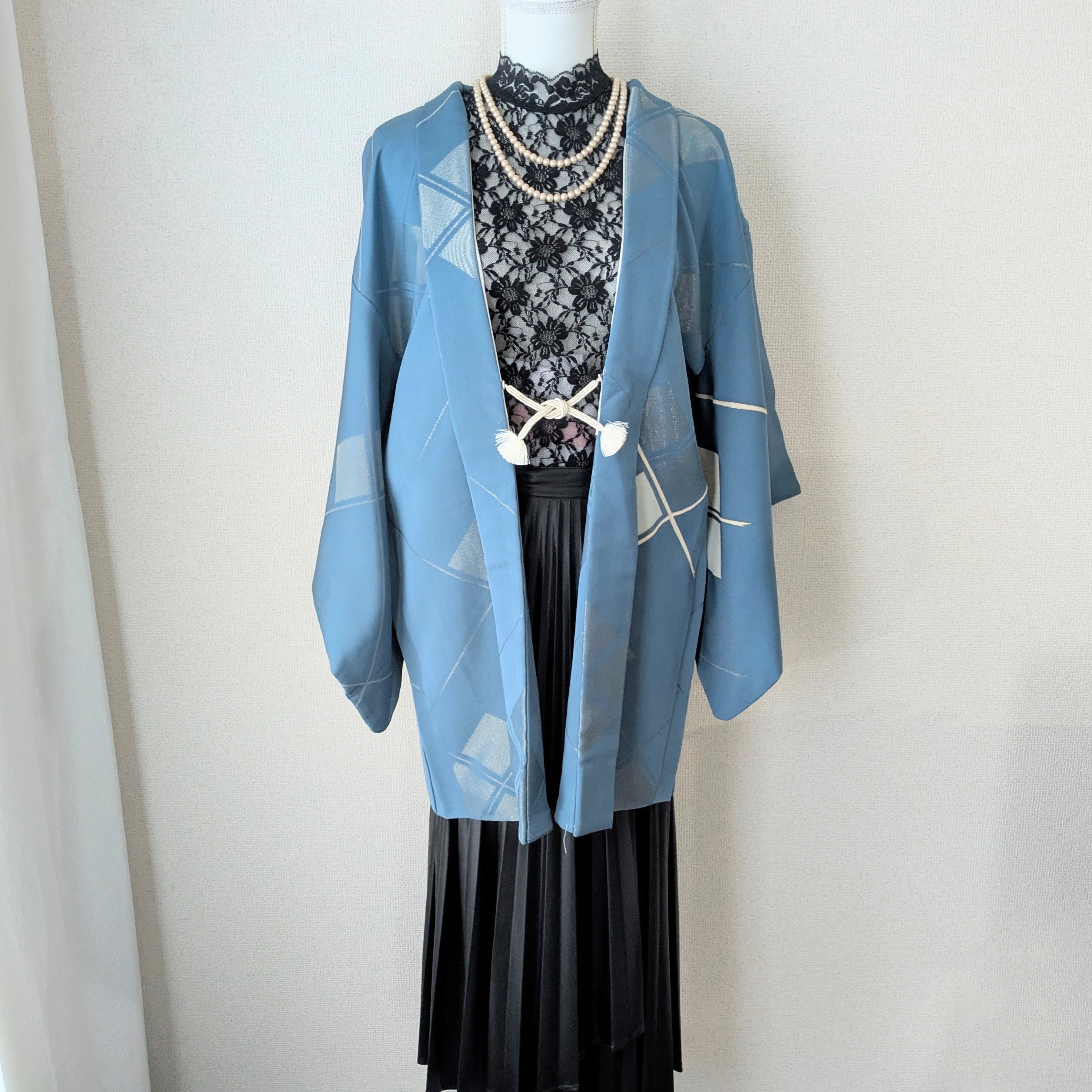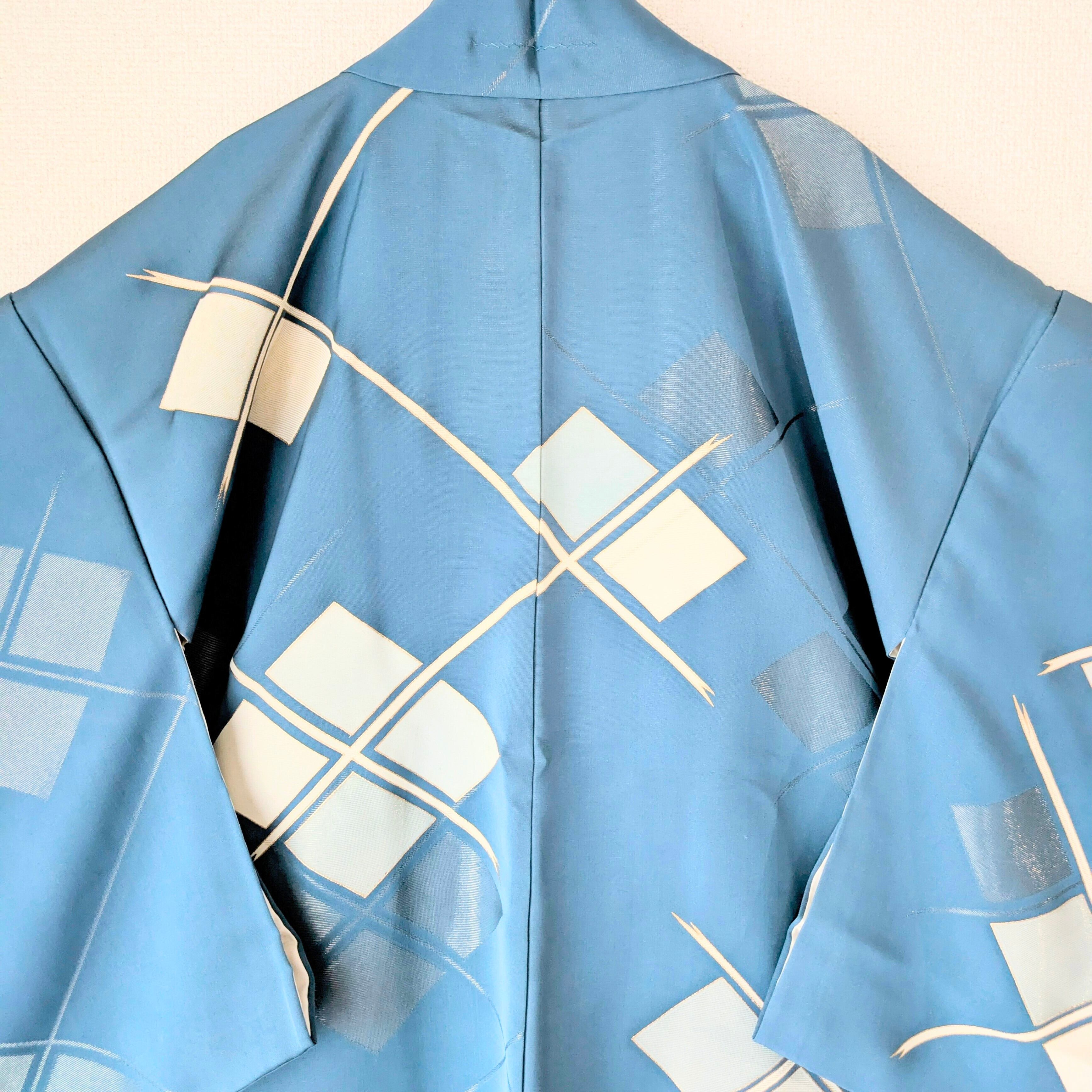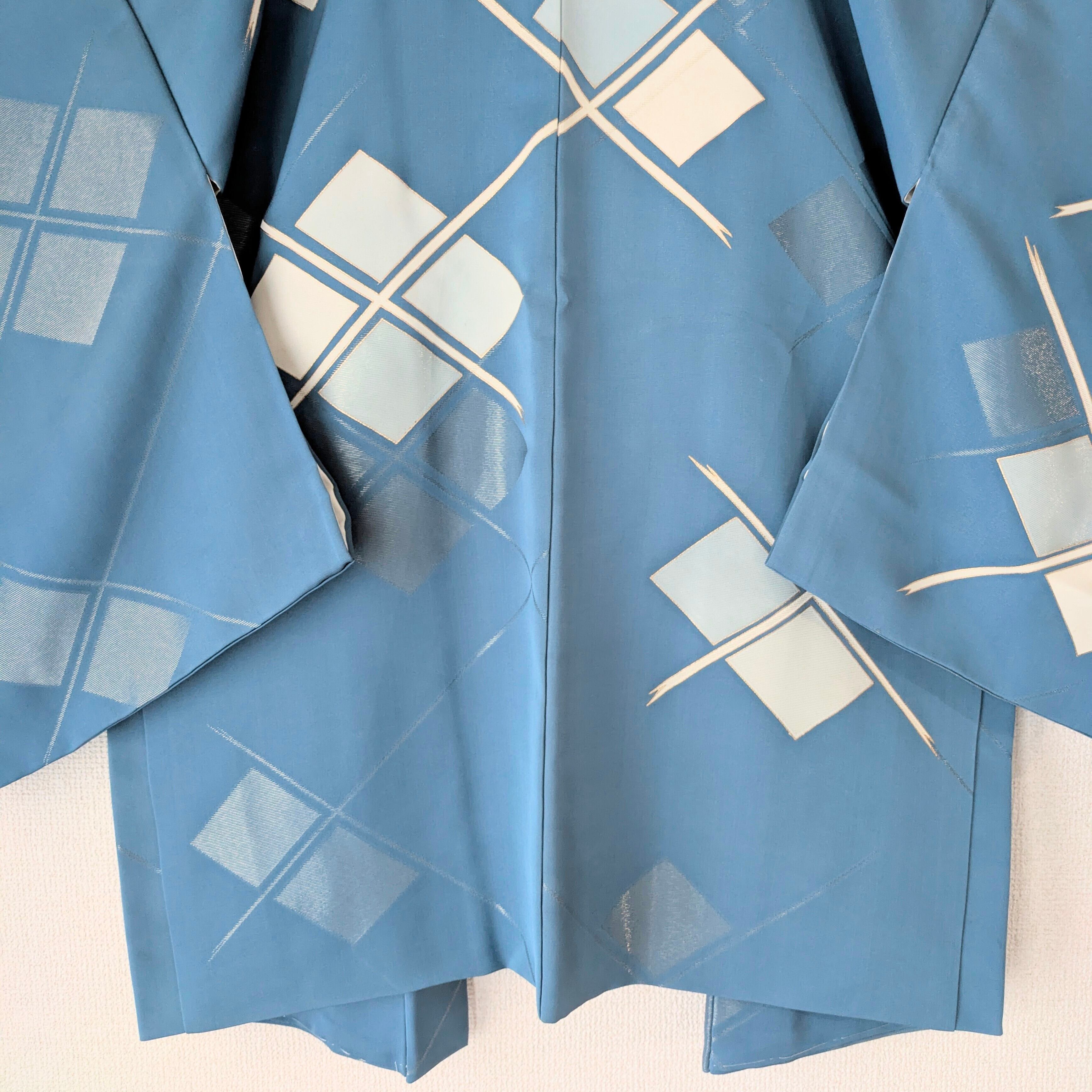 ターコイズブルーのお色にアーガイル模様(算盤柄)があしらわれた長羽織です。