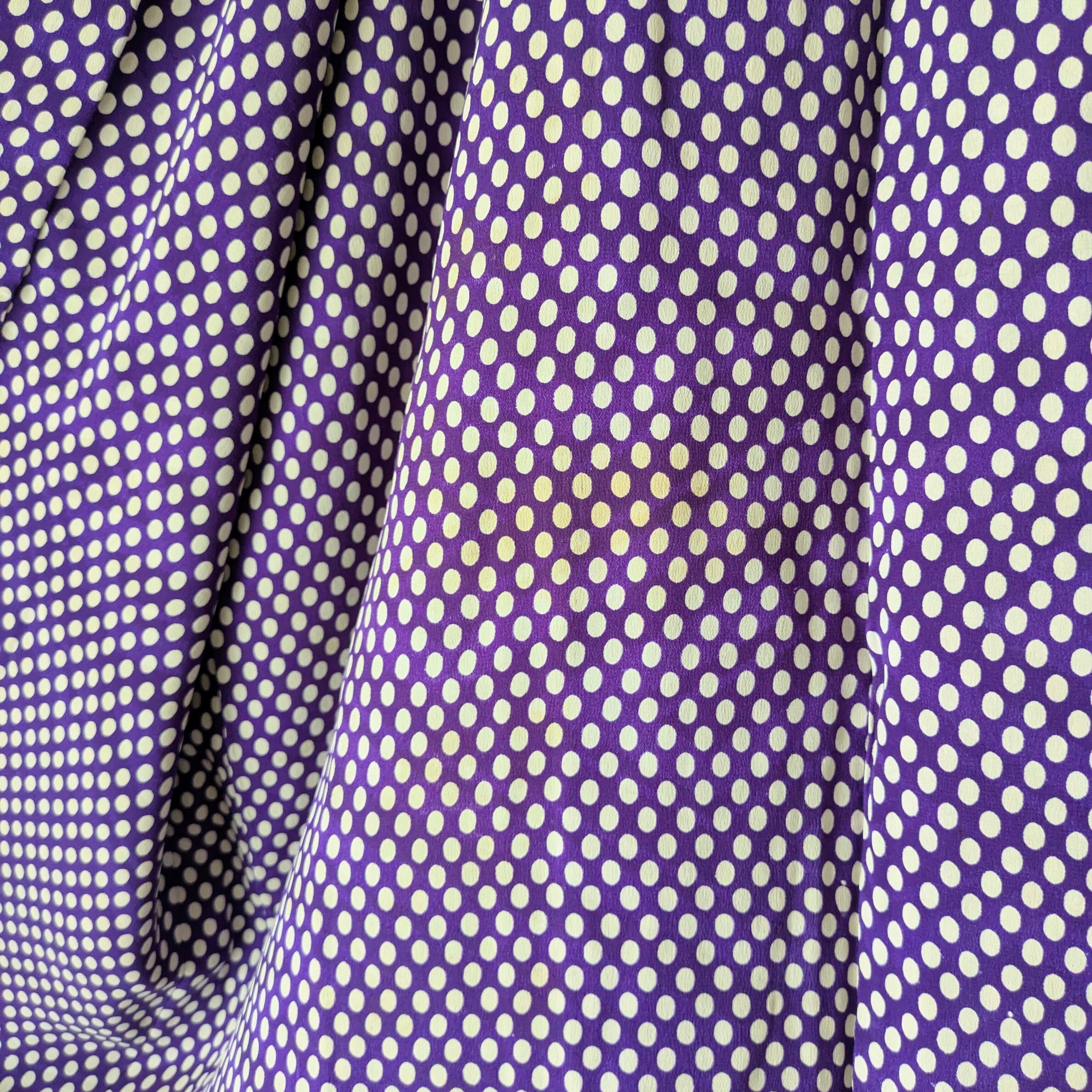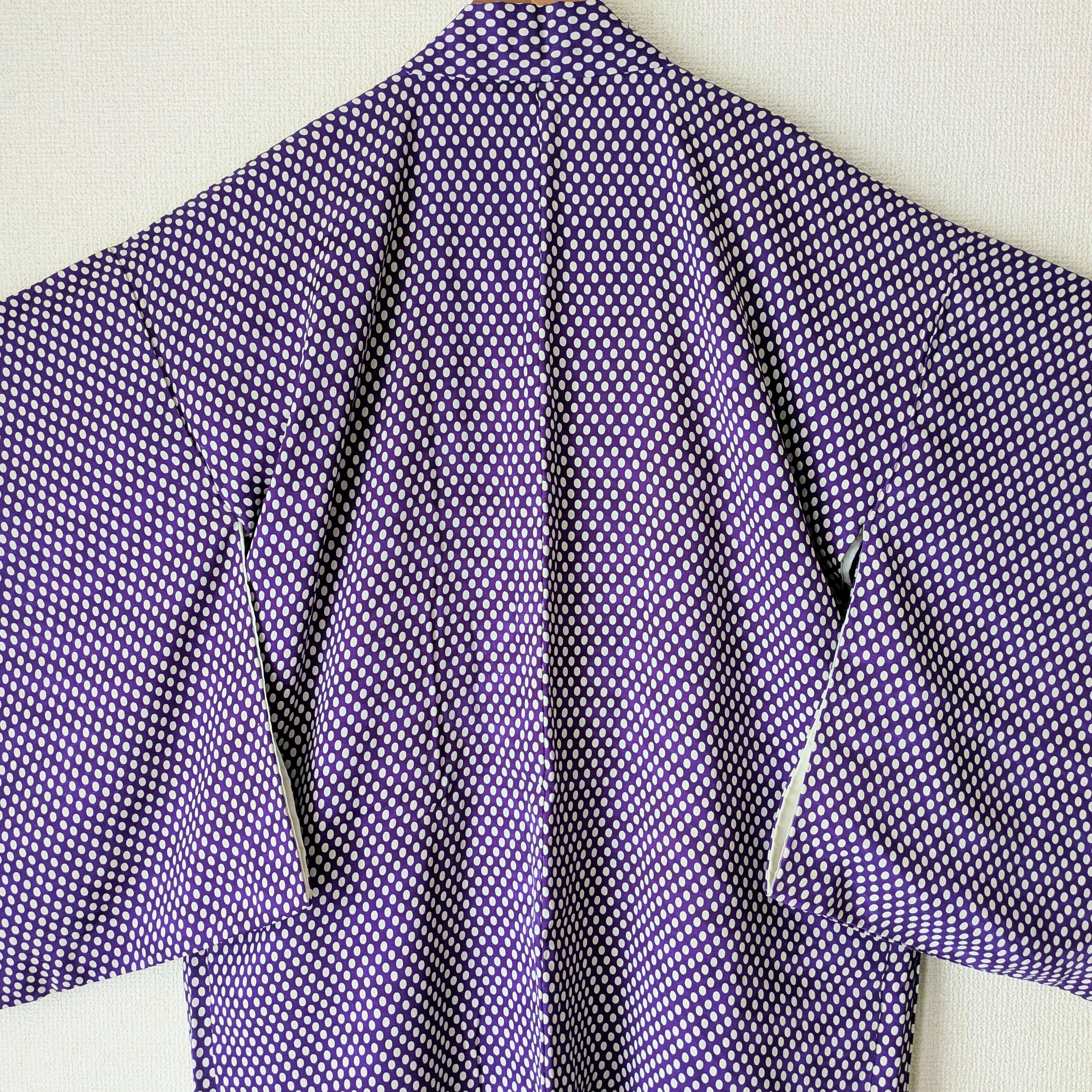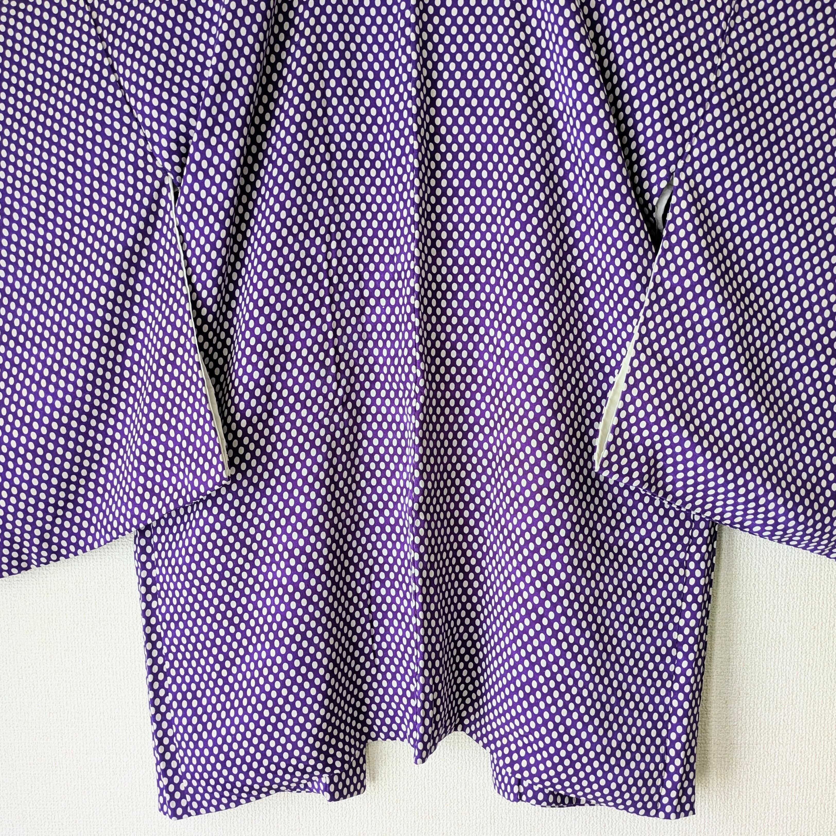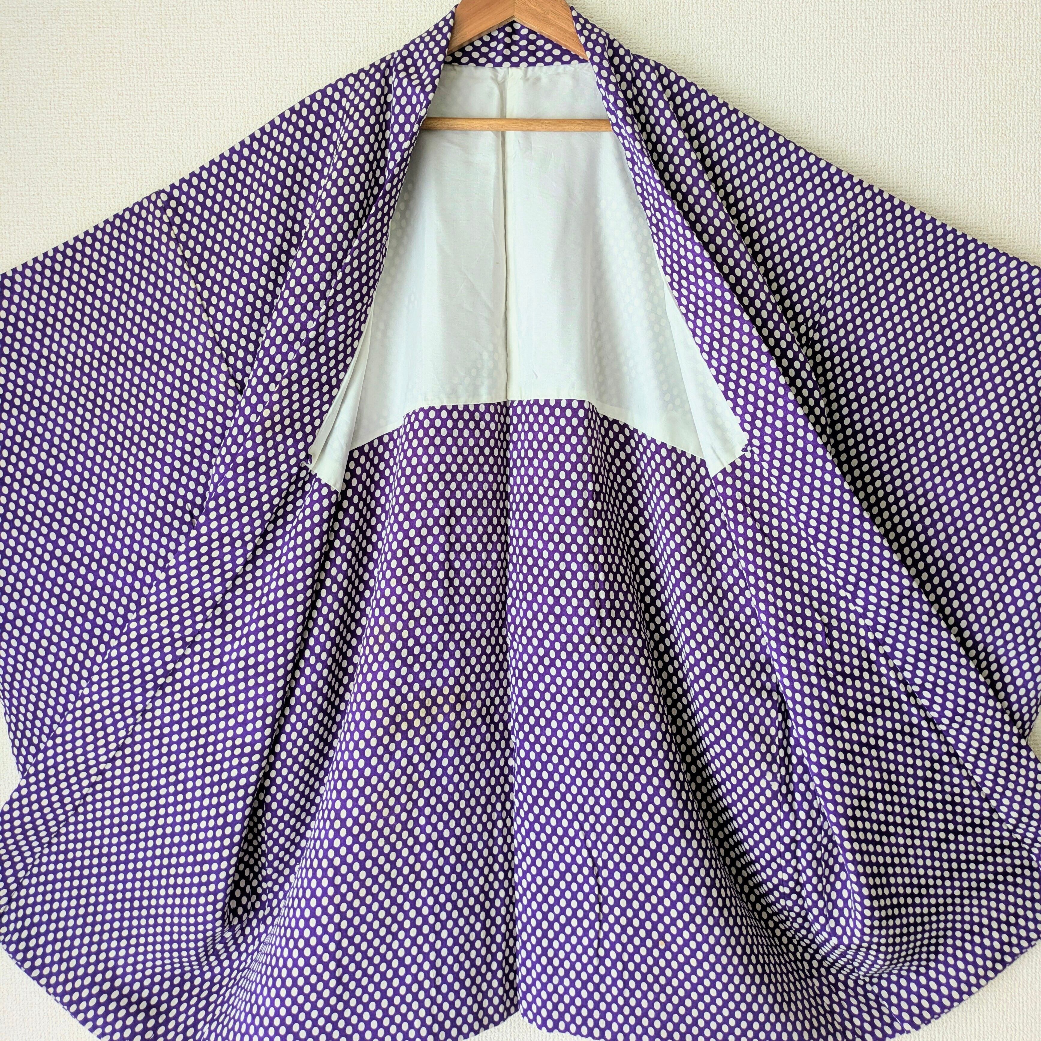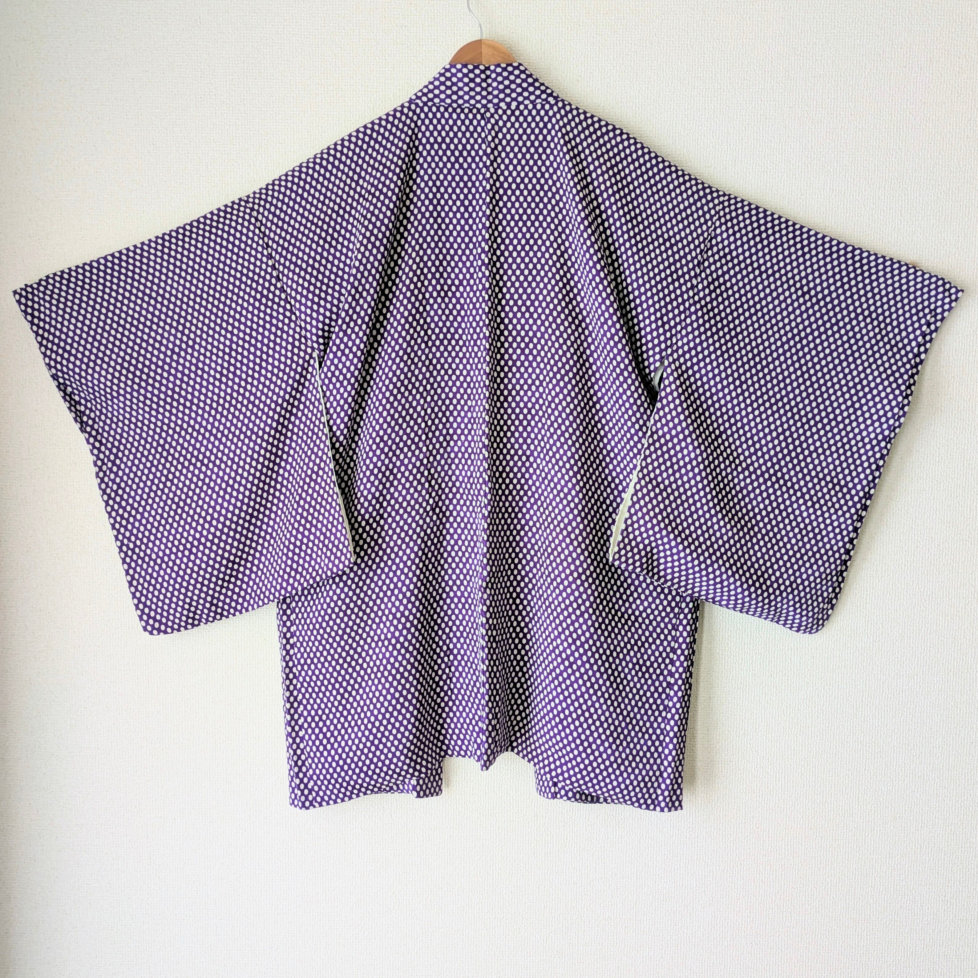 紫地に白の水玉模様があしらわれた羽織です。