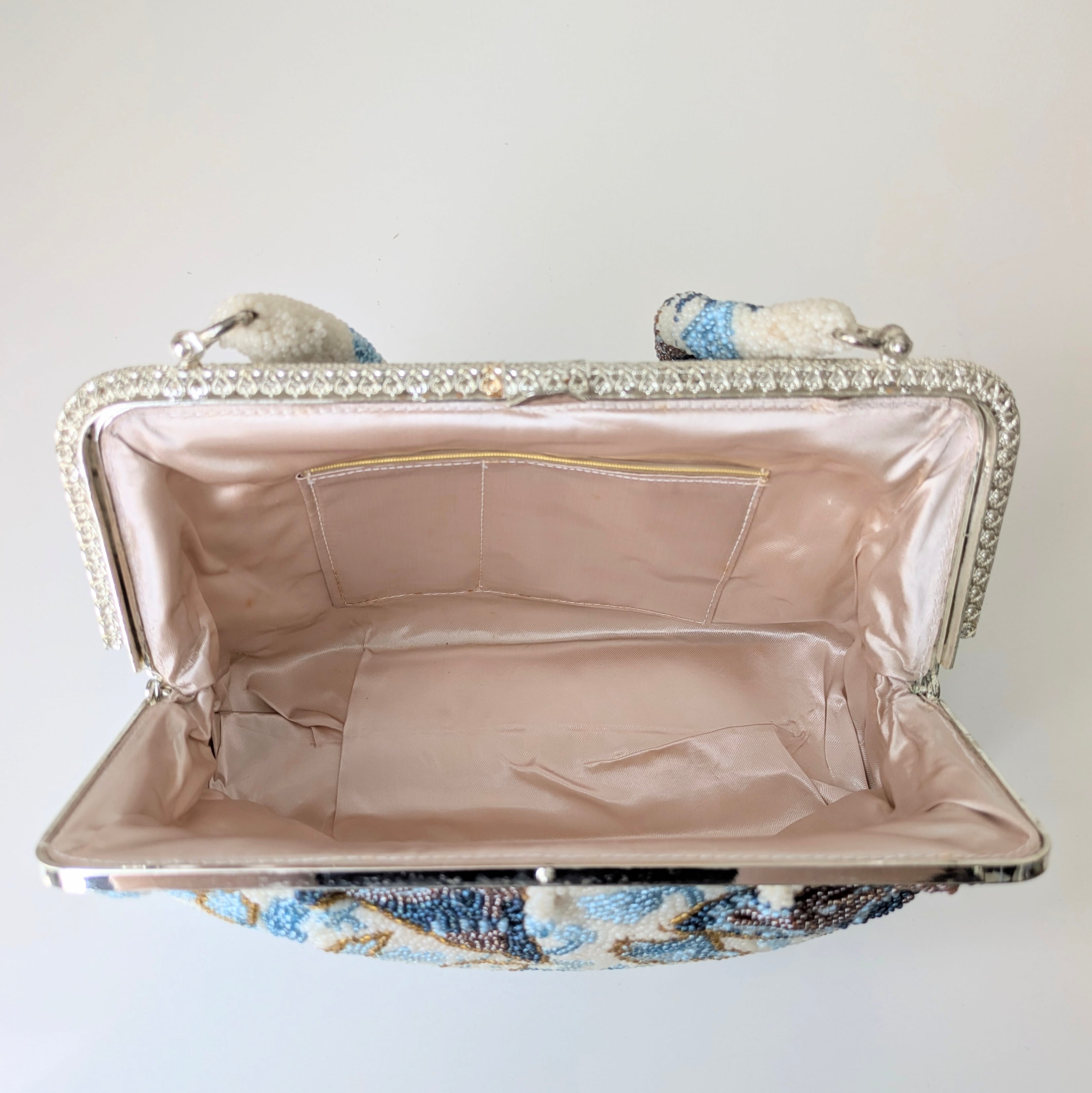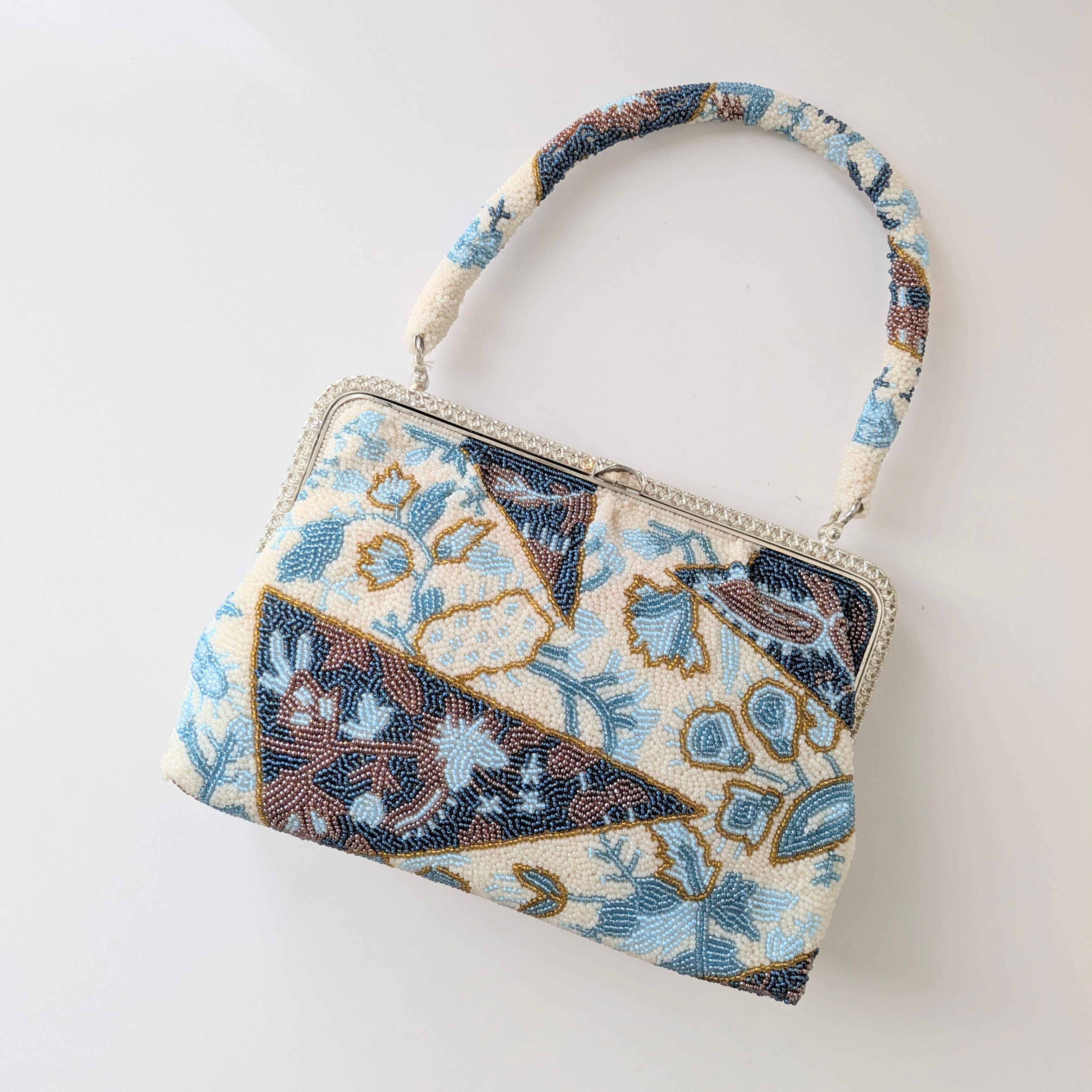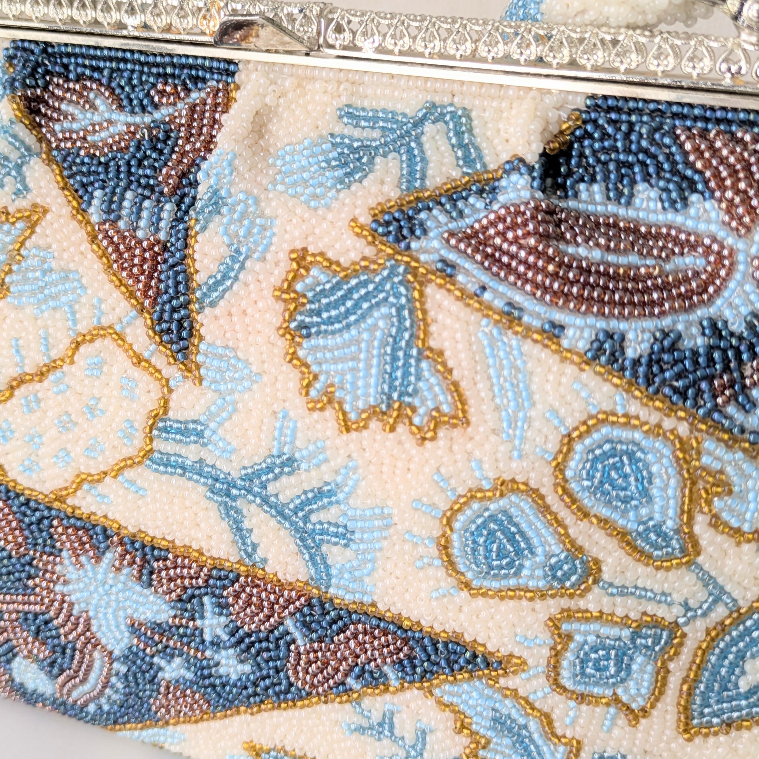 光を受けて美しく輝くヴィンテージビーズバッグ。