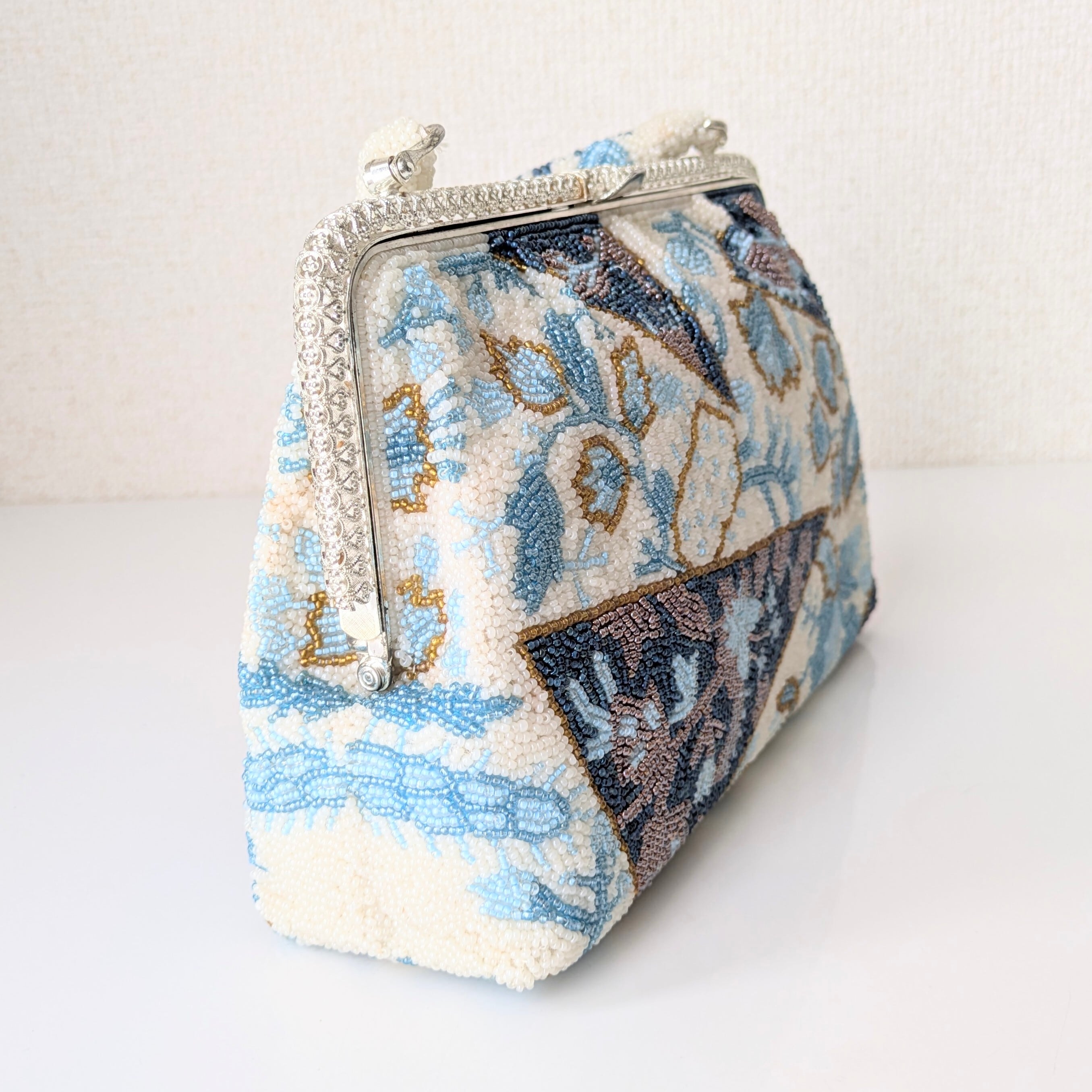 ビーズバッグの楽しみは、何と言っても手編みのビーズ刺繍。職人が一つ一つ丁寧に手作業で編み上げた、贅沢で美しいディテールです。