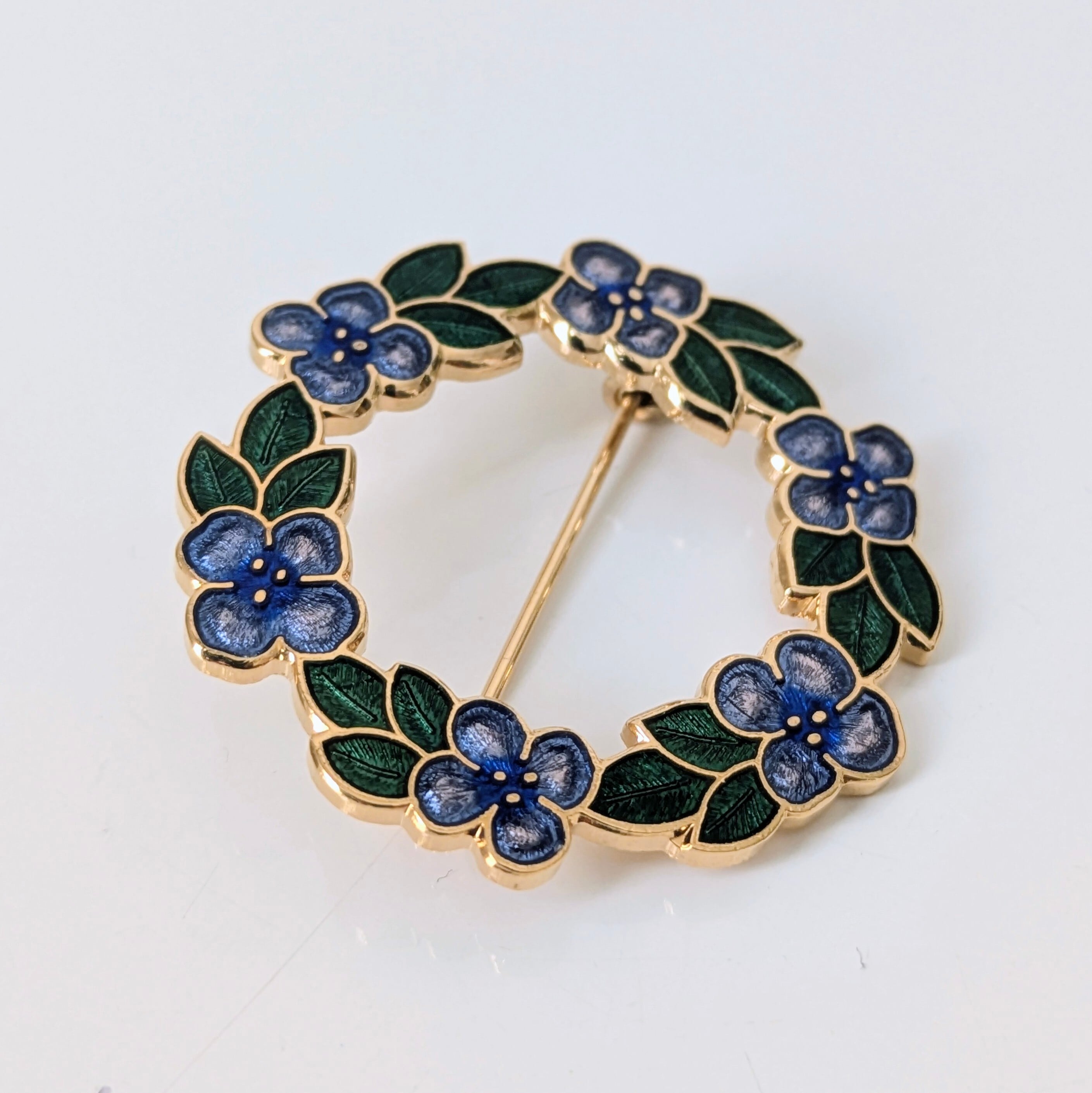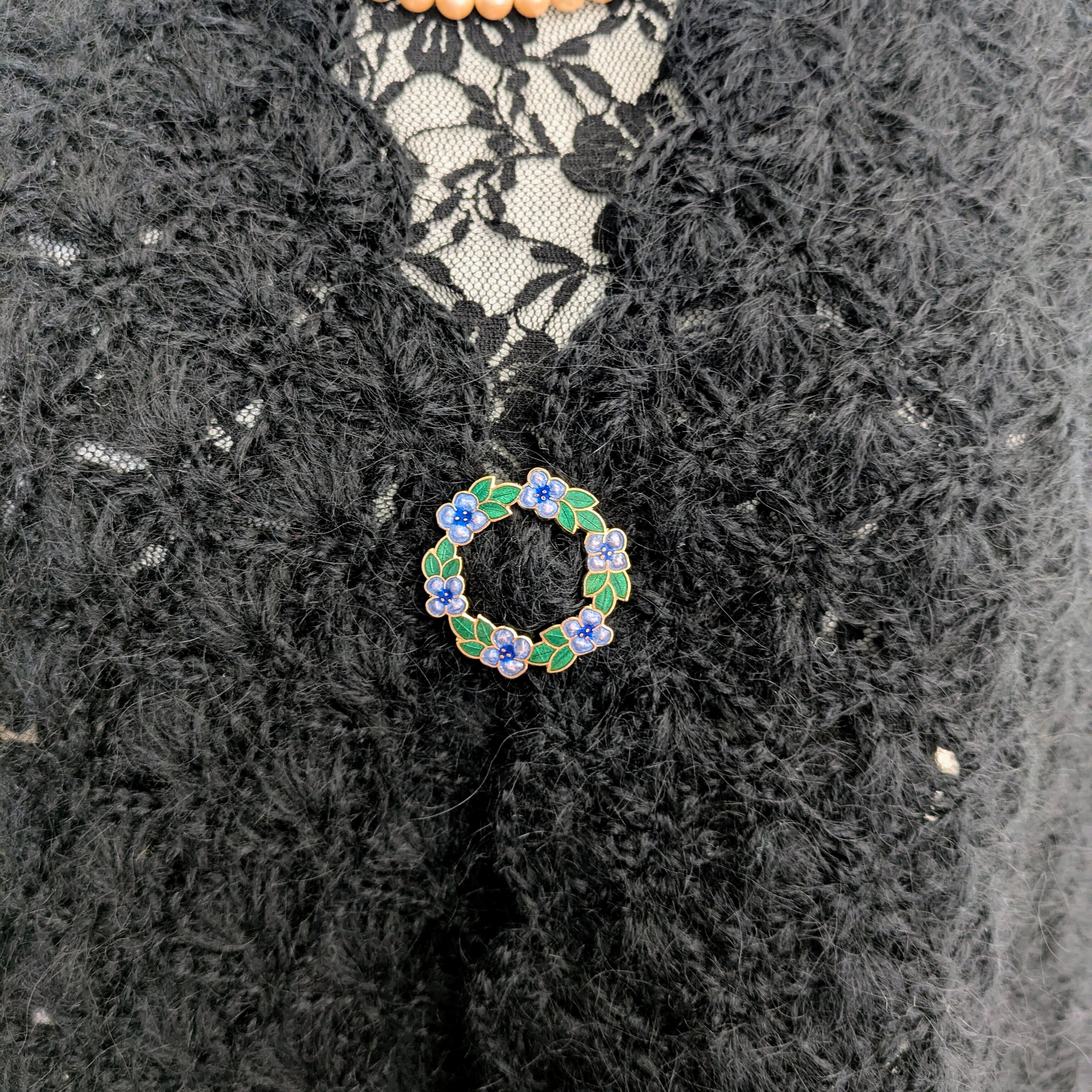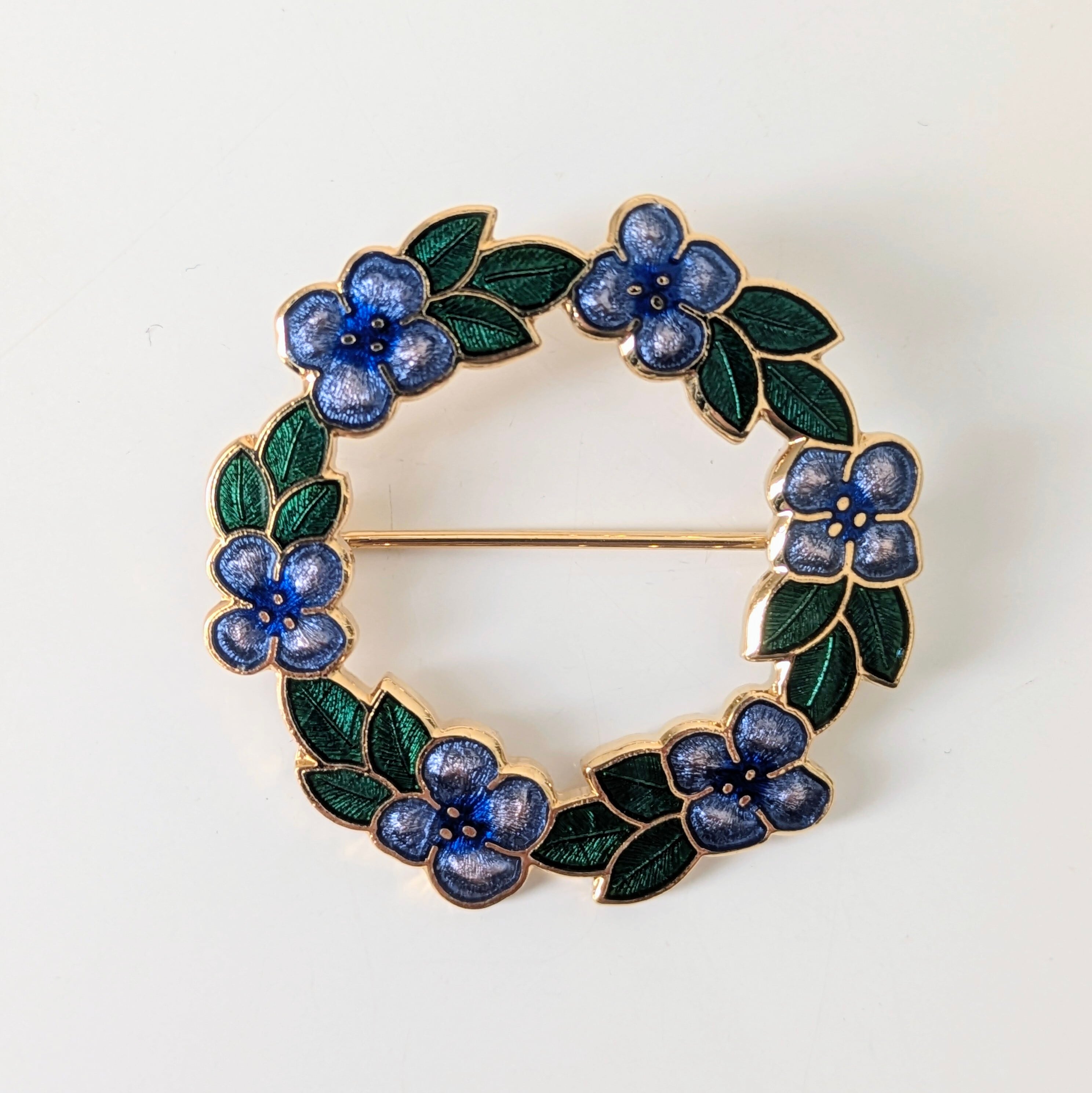 パンジーの花飾りがモチーフのエナメルペイントが施されたブローチ。可憐な可愛らしさのあるお品です。