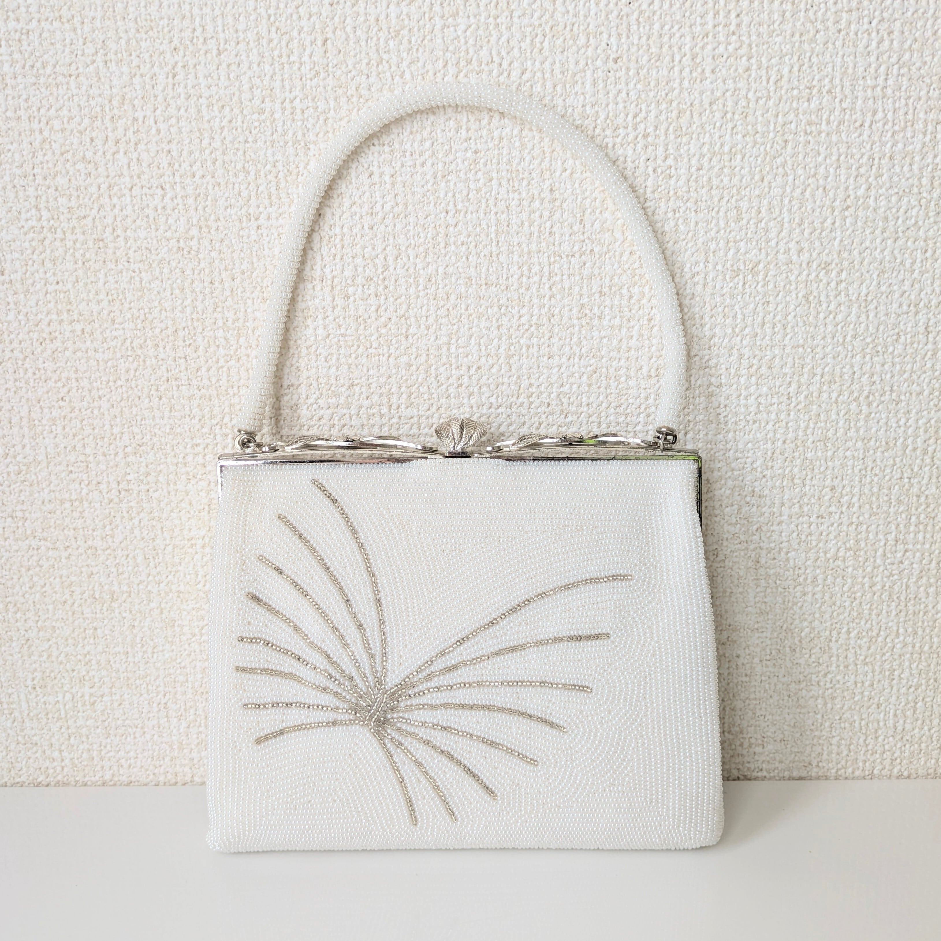 シンプルな装いにもパッと華が咲いたようなそんな存在感抜群なビーズバッグ。