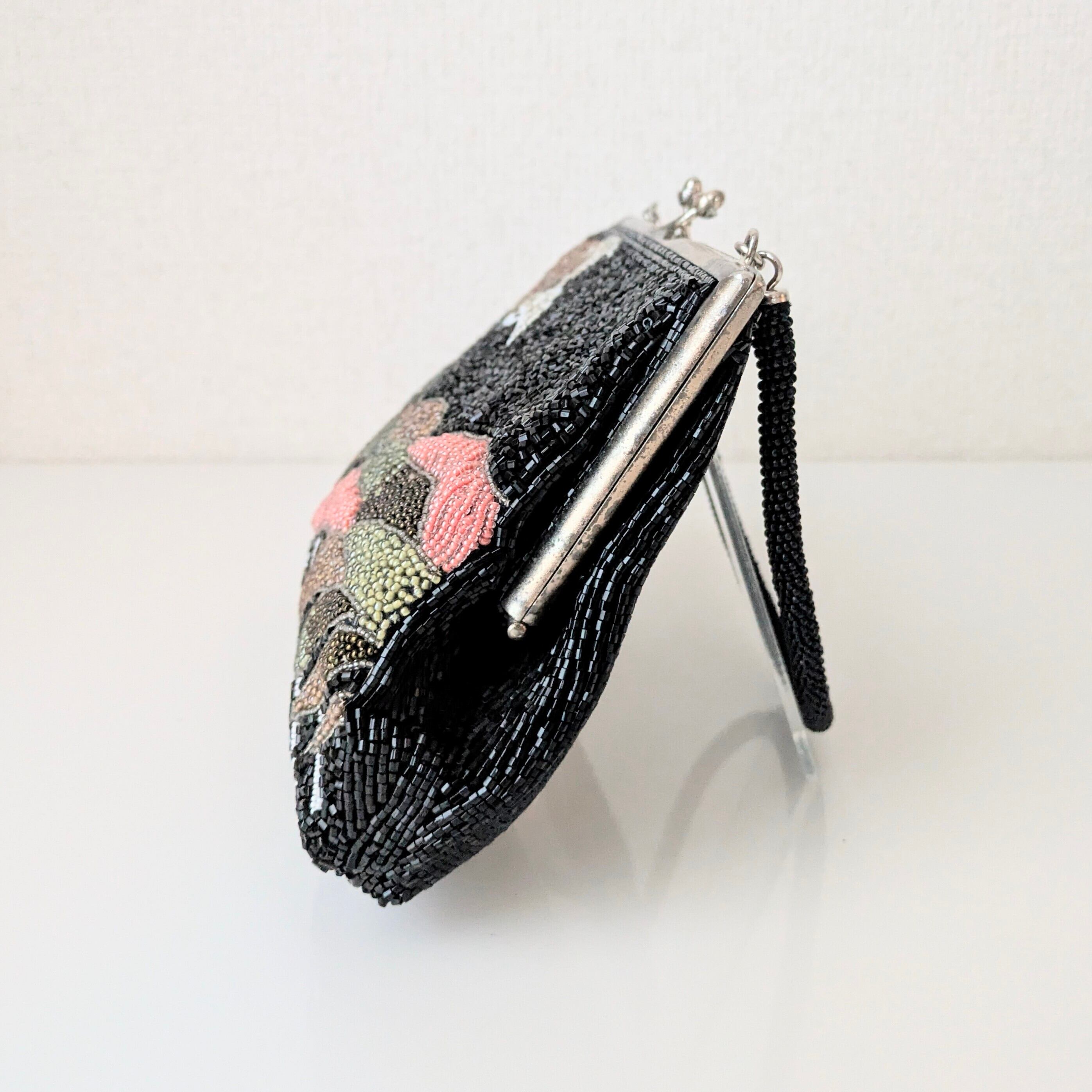 光を受けて美しく輝くヴィンテージビーズバッグ。