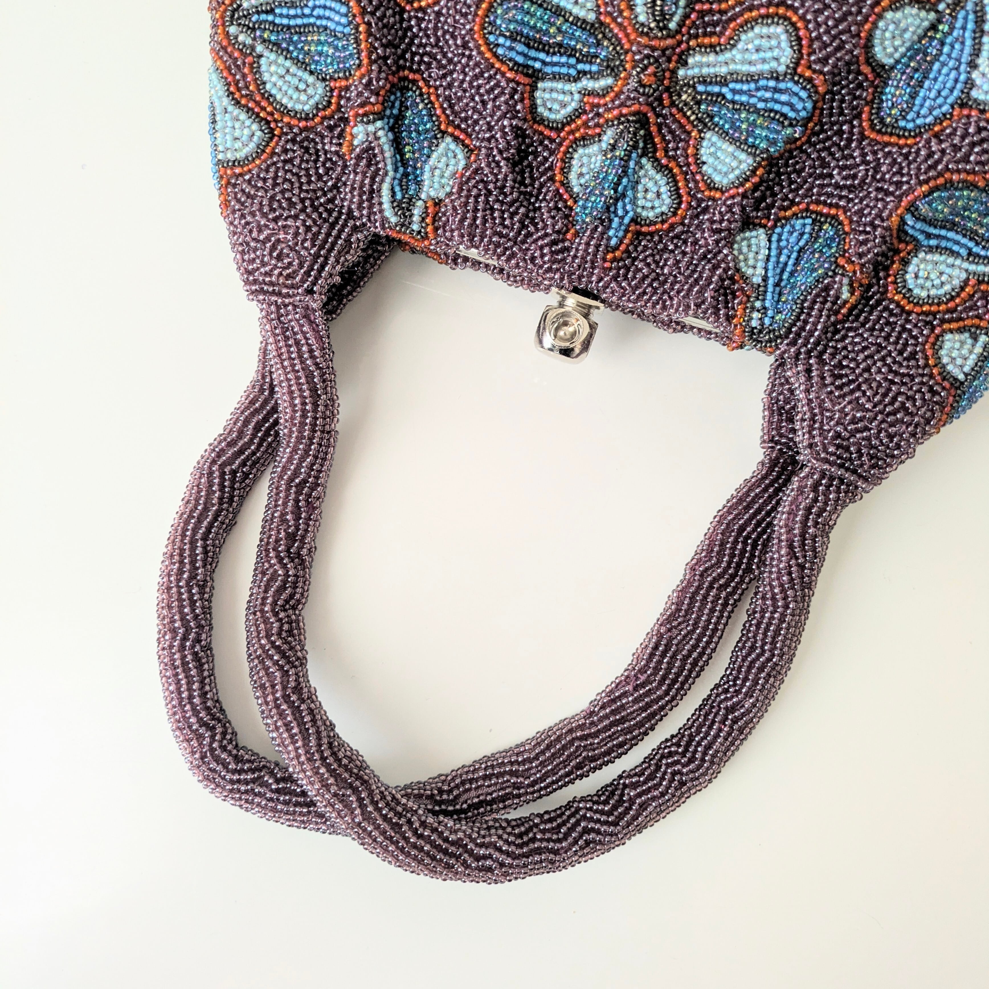 光を受けて美しく輝くヴィンテージビーズバッグ。