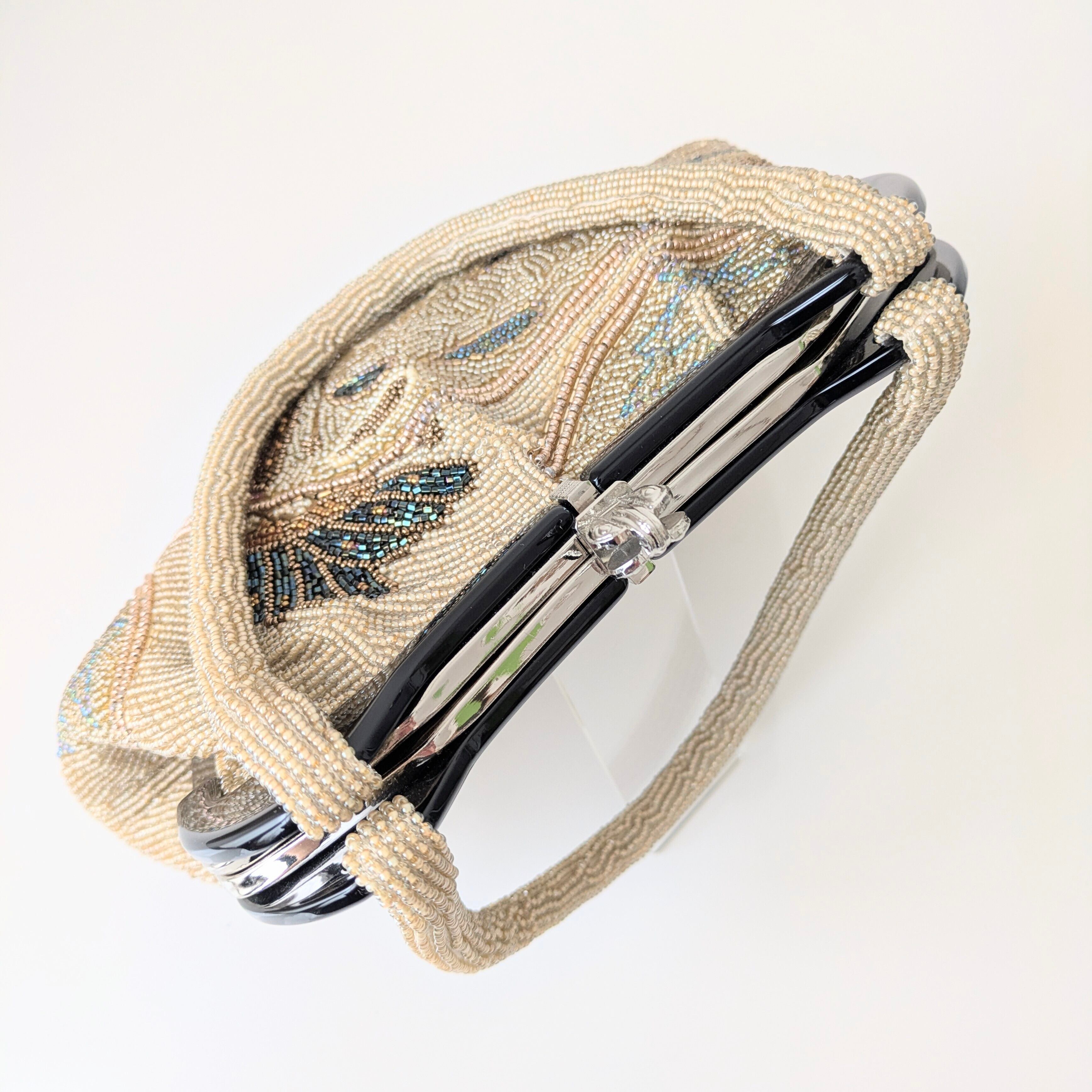 光を受けて美しく輝くヴィンテージビーズバッグ。