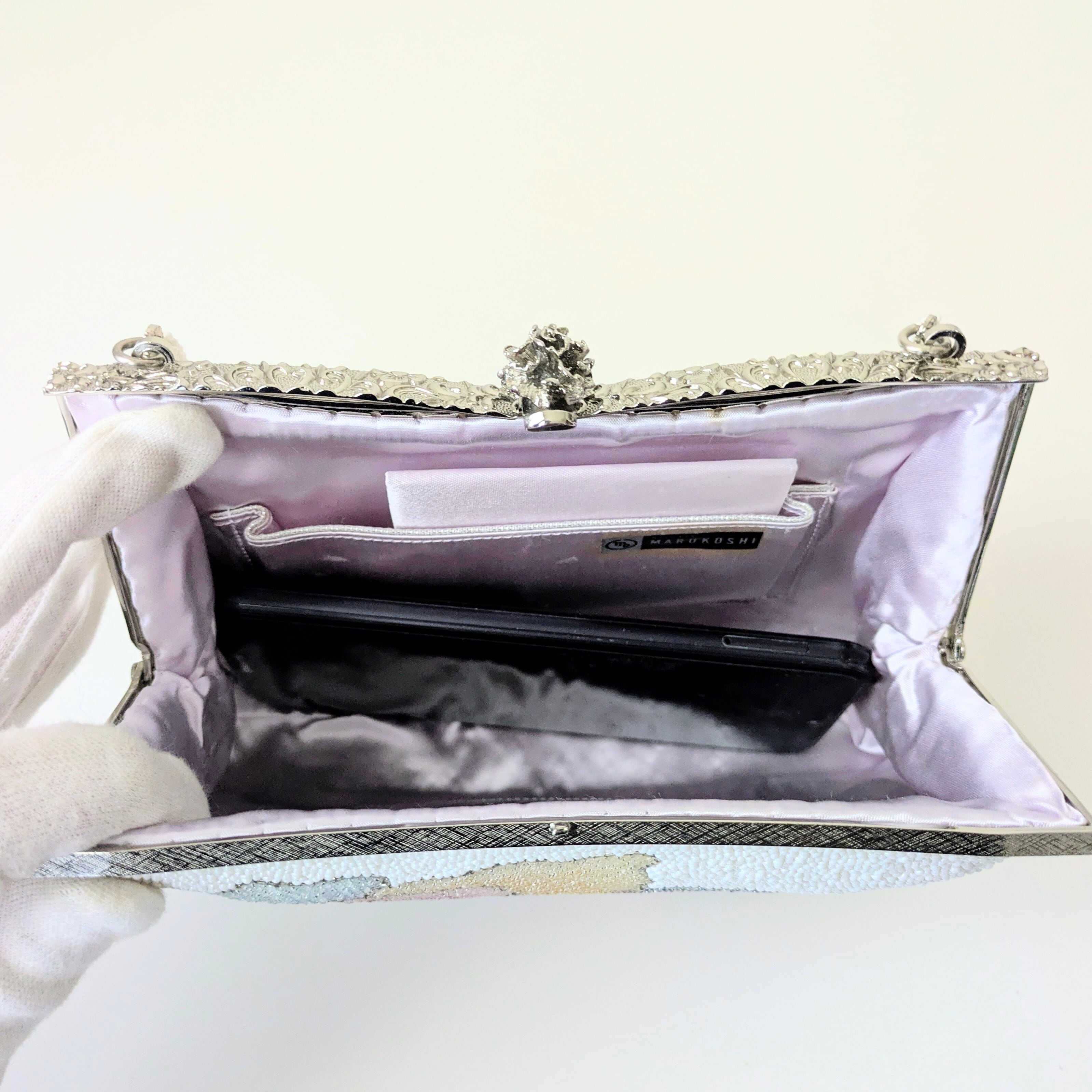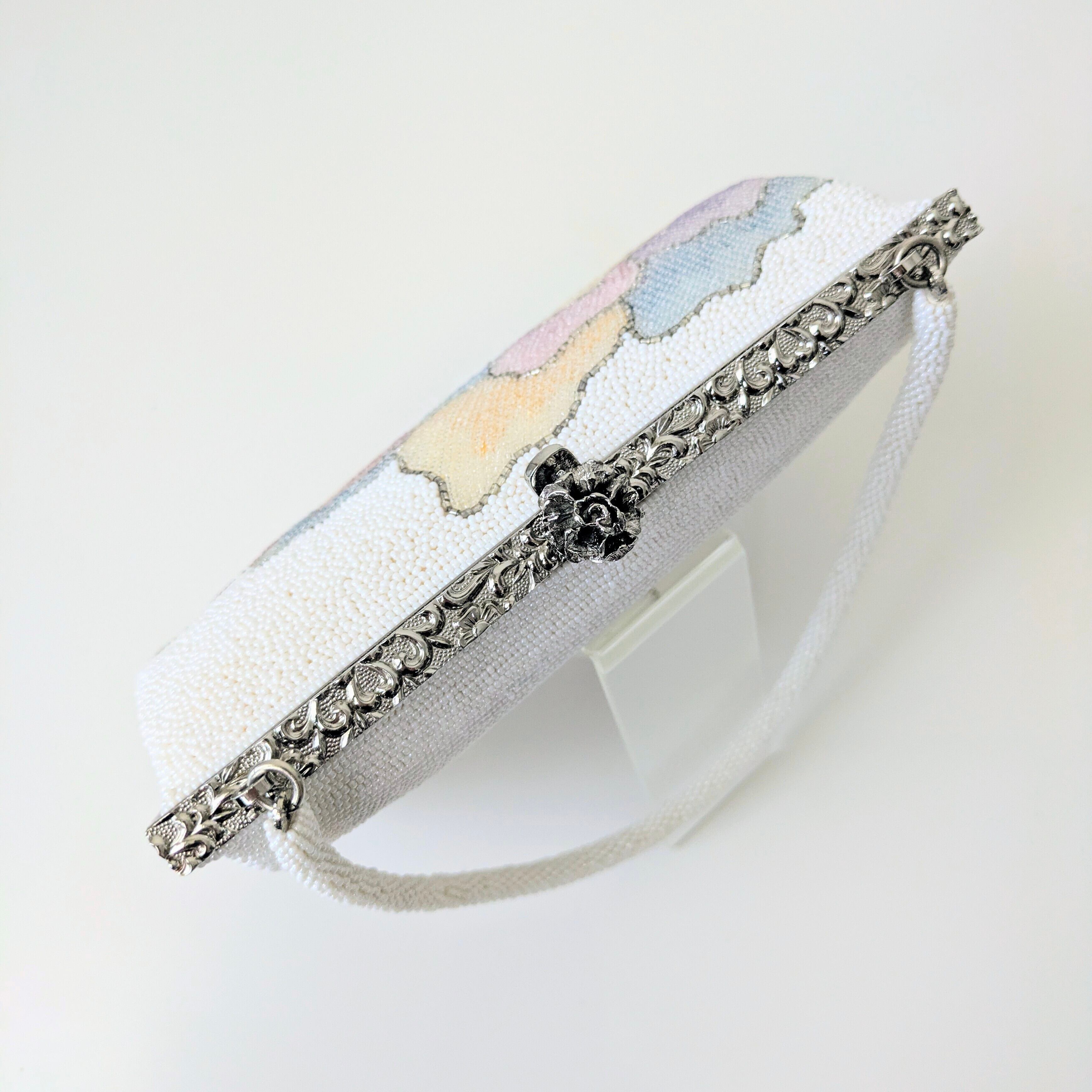 【Vintage】ビーズ刺繍バッグ 白 華やかな牡丹柄 丸越百貨店 パーティーバッグ クラッチバッグ 昭和レトロ 大正浪漫 フォーマルバッグ