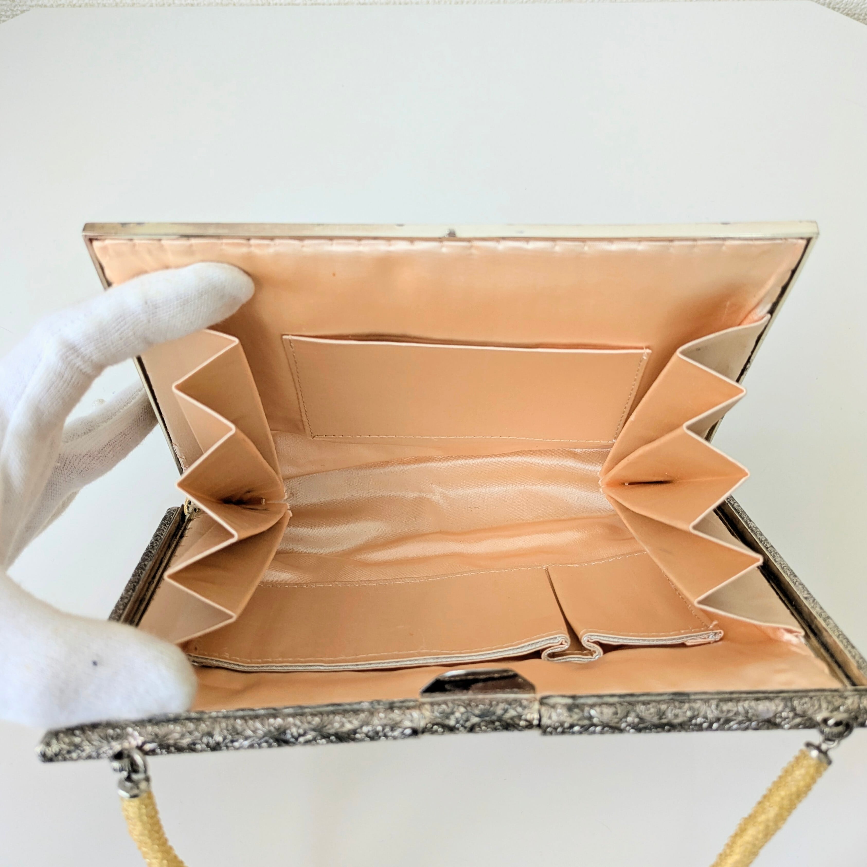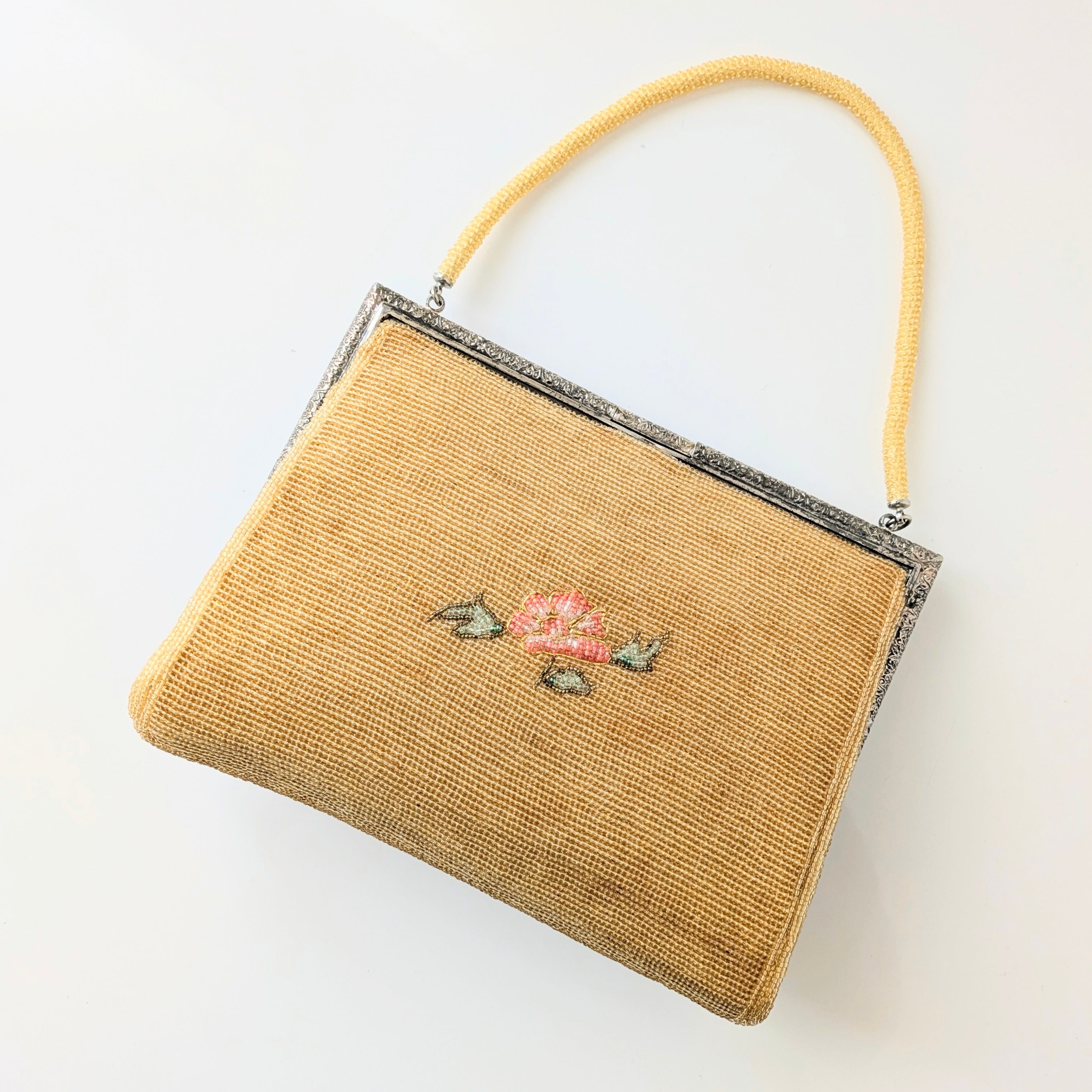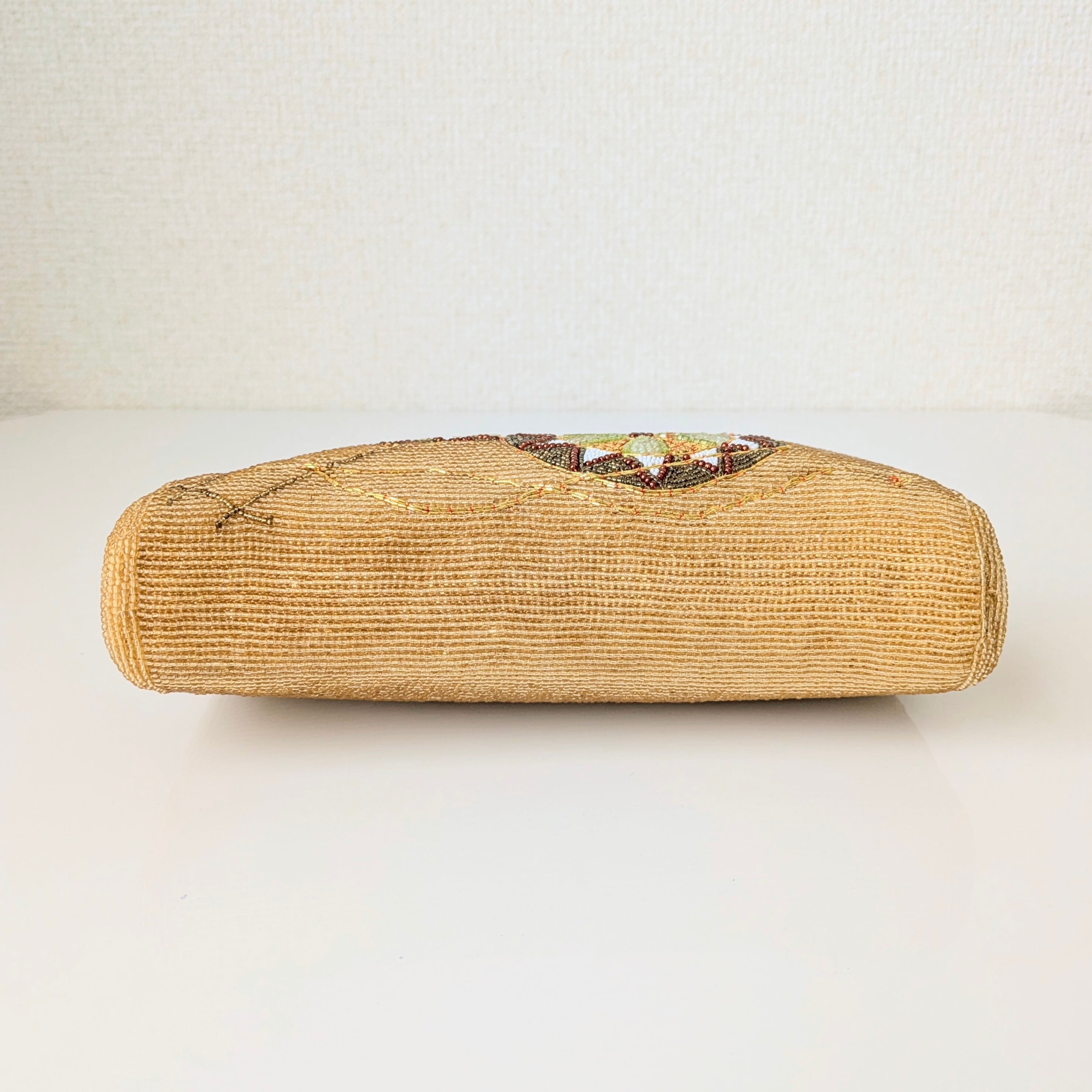 光を受けて美しく輝くヴィンテージビーズバッグ。