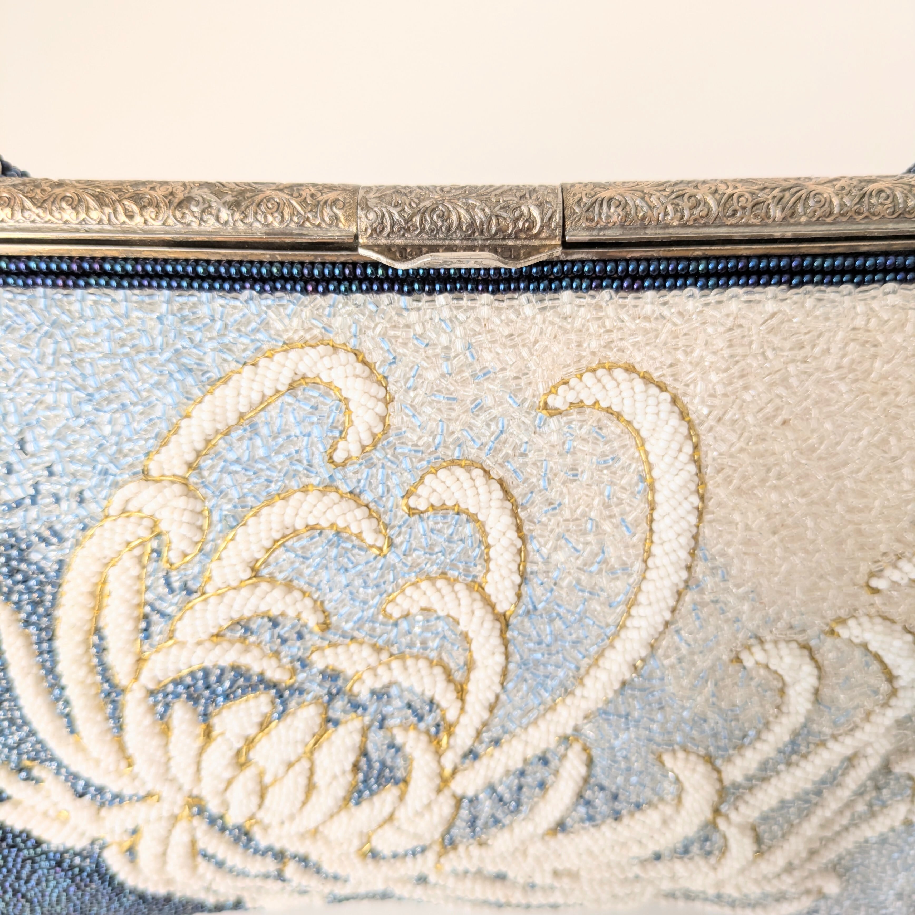 光を受けて美しく輝くヴィンテージビーズバッグ。