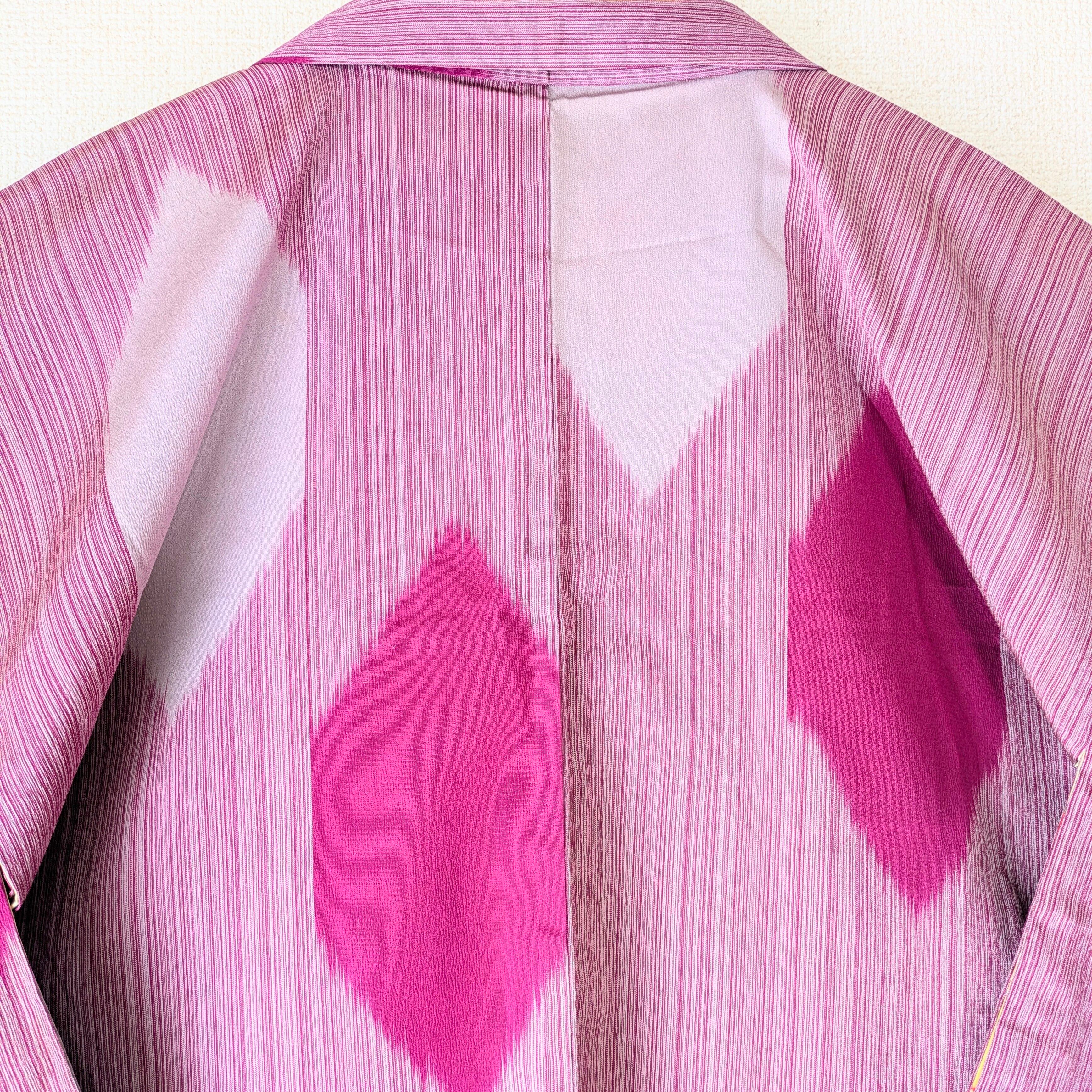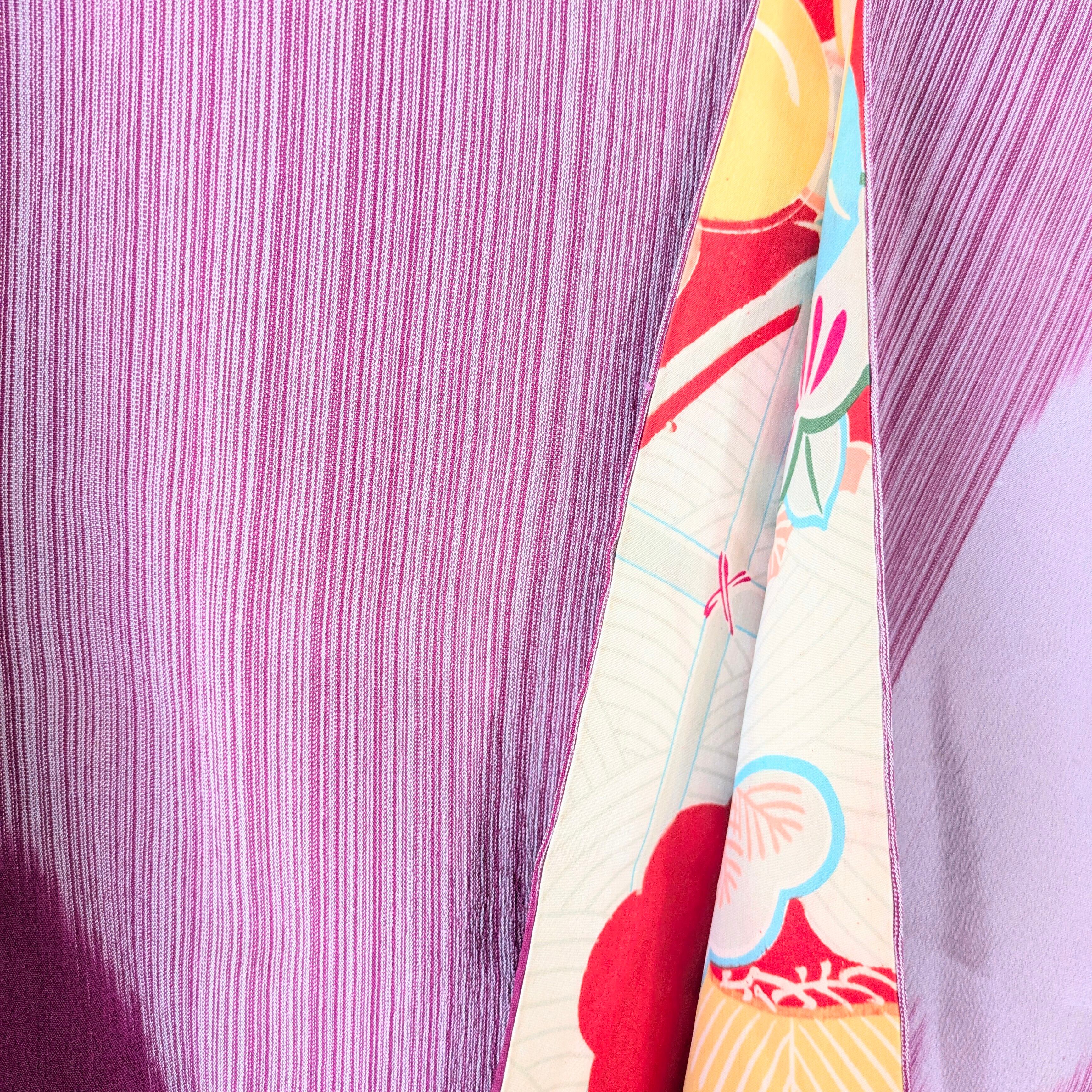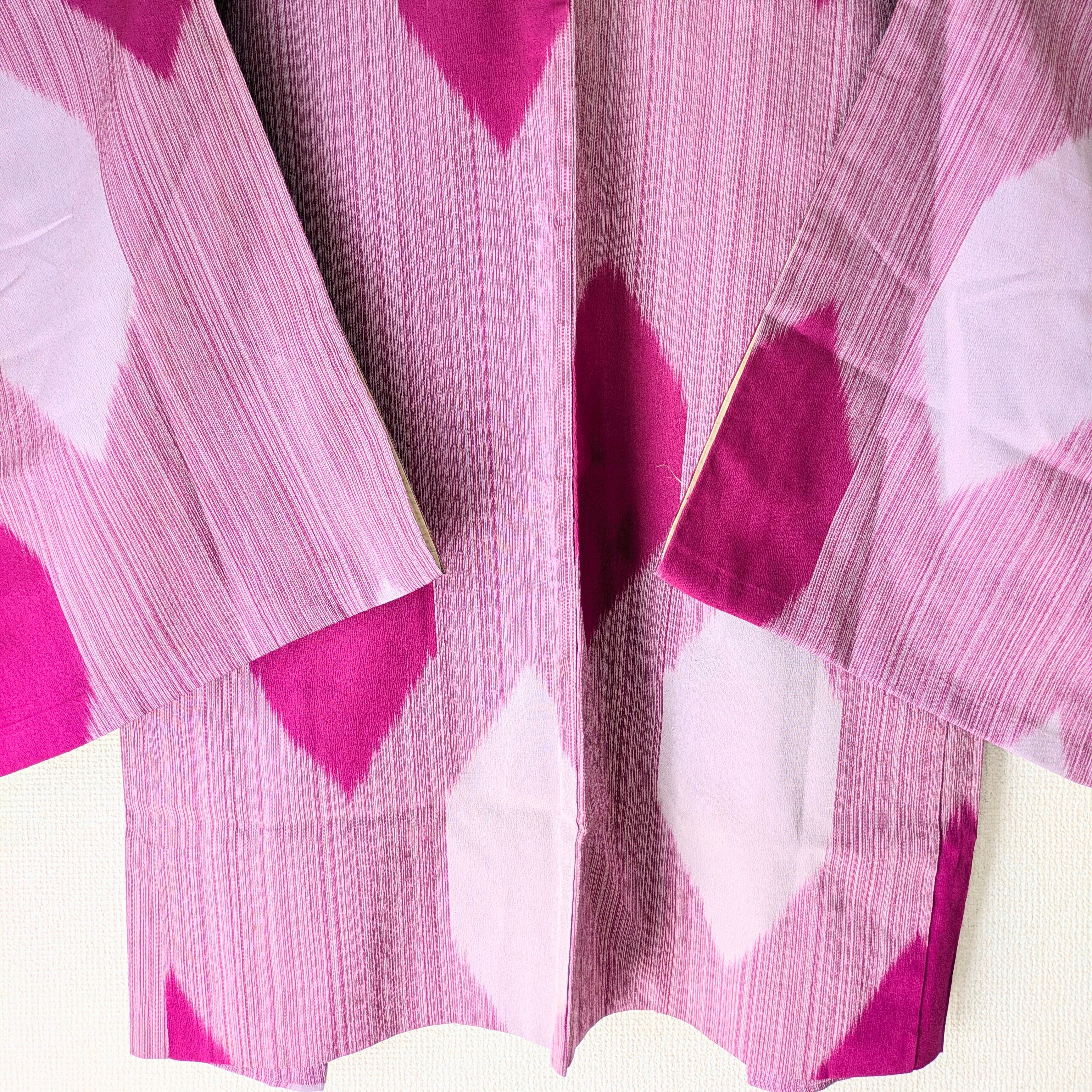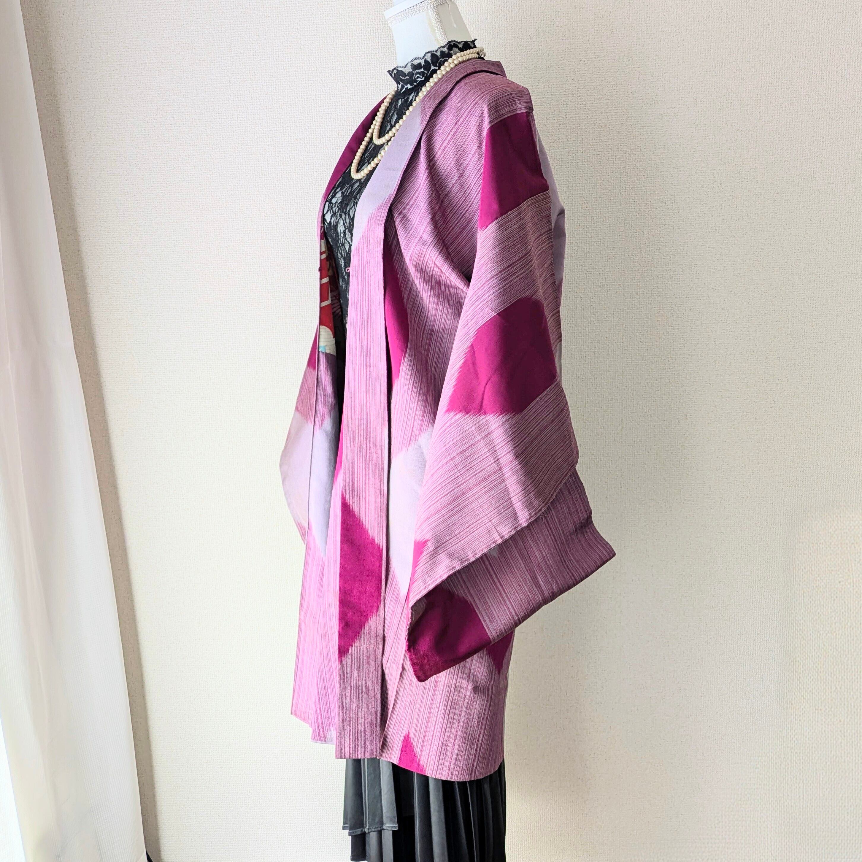 【Vintage】HAORI 羽織 正絹 銘仙 赤紫 大正浪漫 古布 時代布 和洋折衷