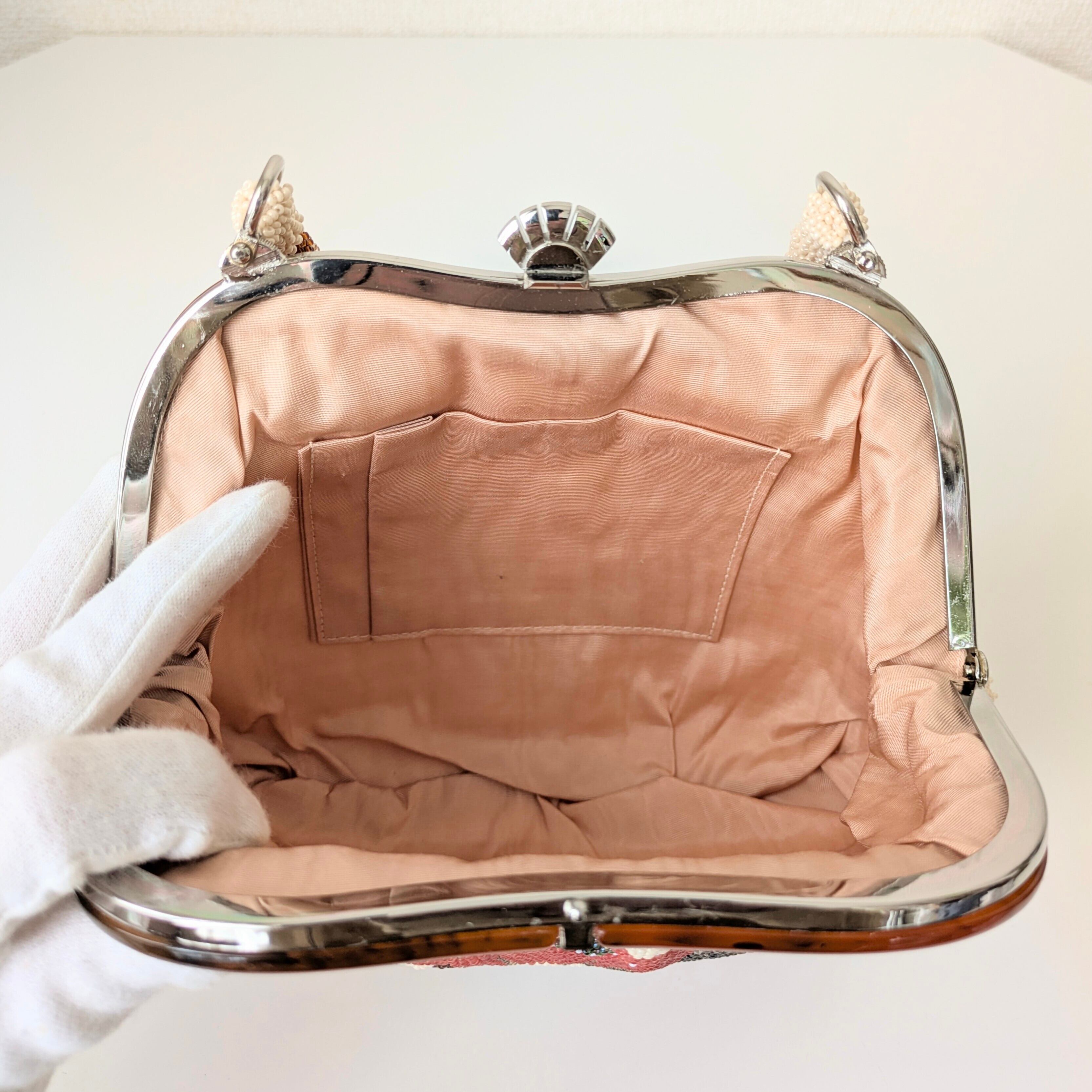 【Vintage】ビーズ刺繍バッグ ベージュ 芥子の花 ポピー パーティーバッグ クラッチバッグ 昭和レトロ 大正浪漫 フォーマルバッグ