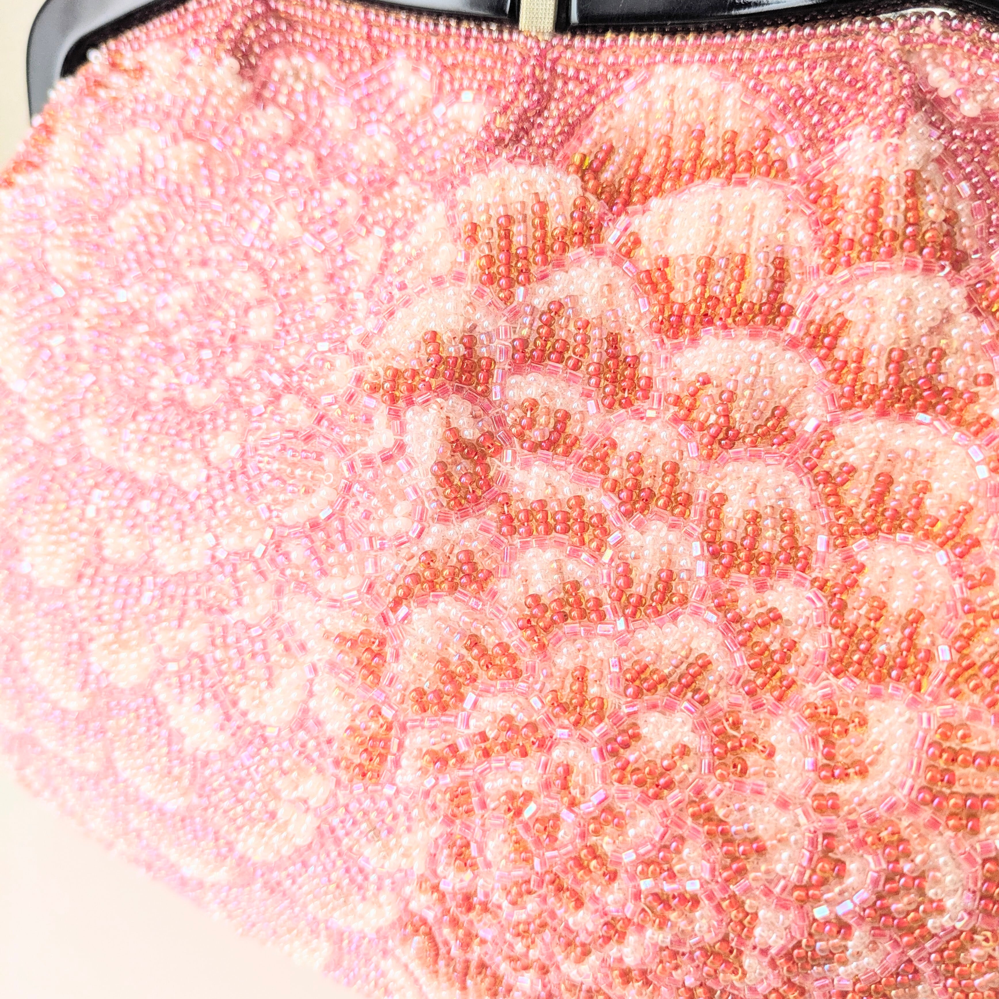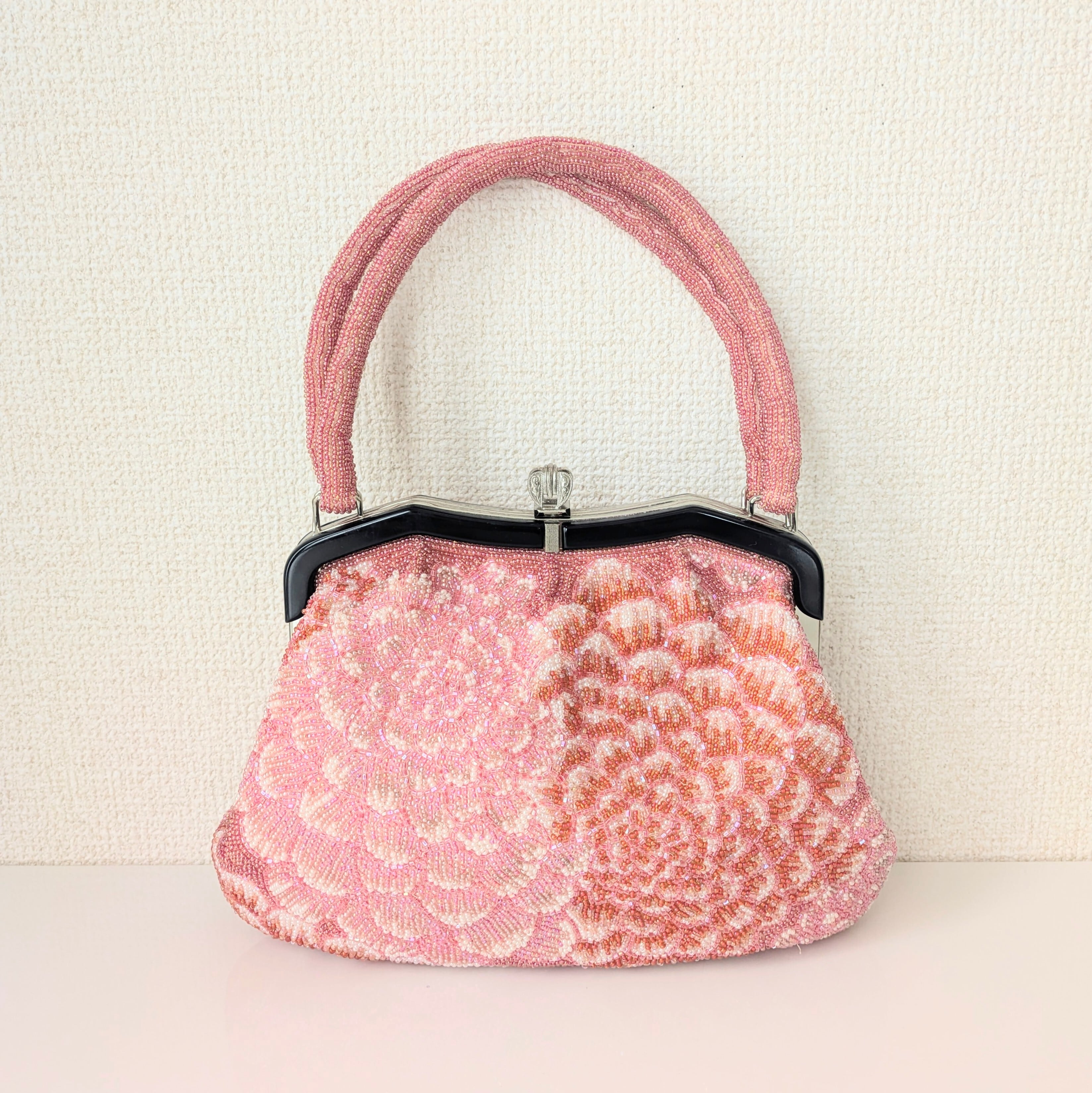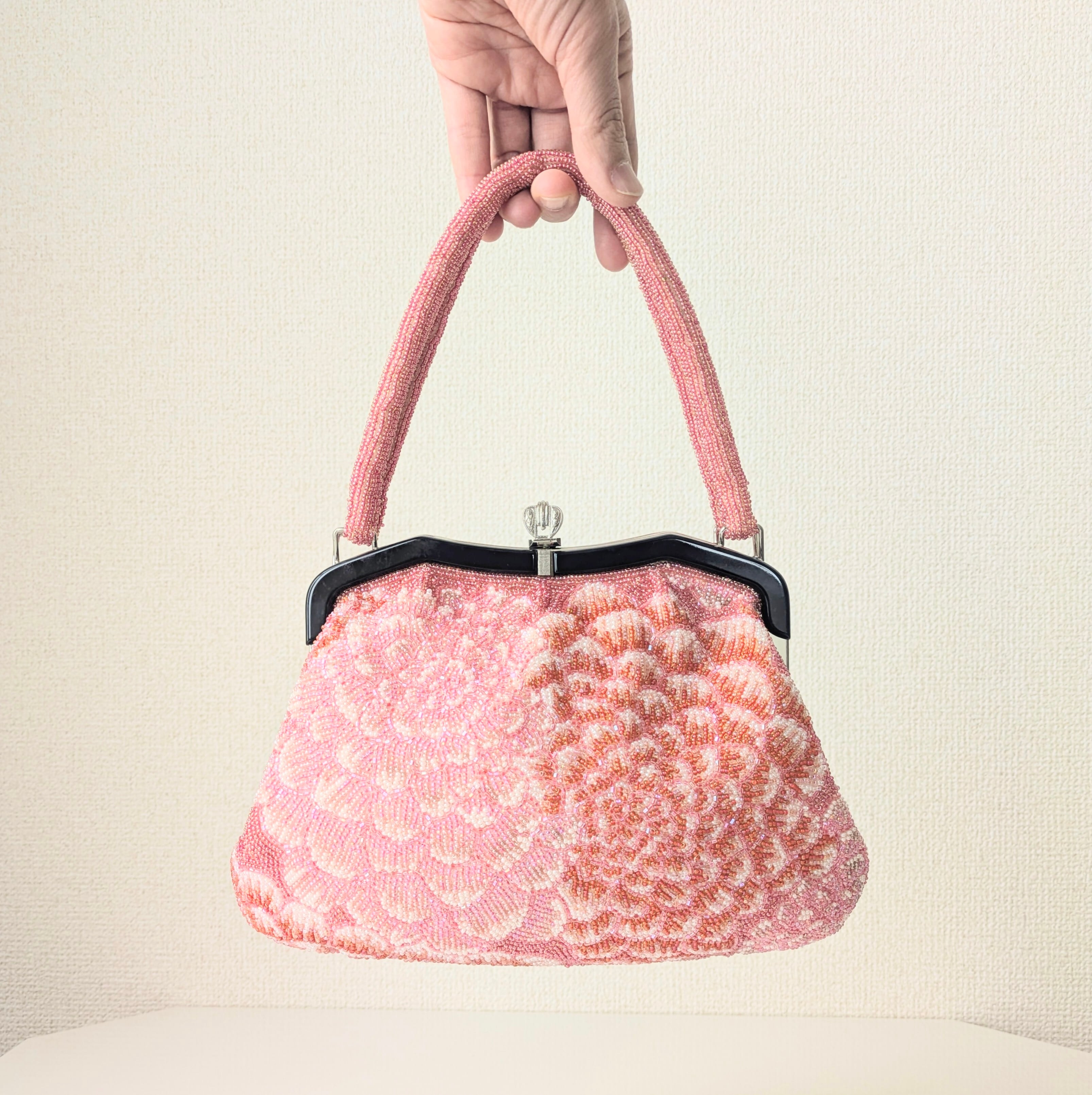 光を受けて美しく輝くヴィンテージビーズバッグ。