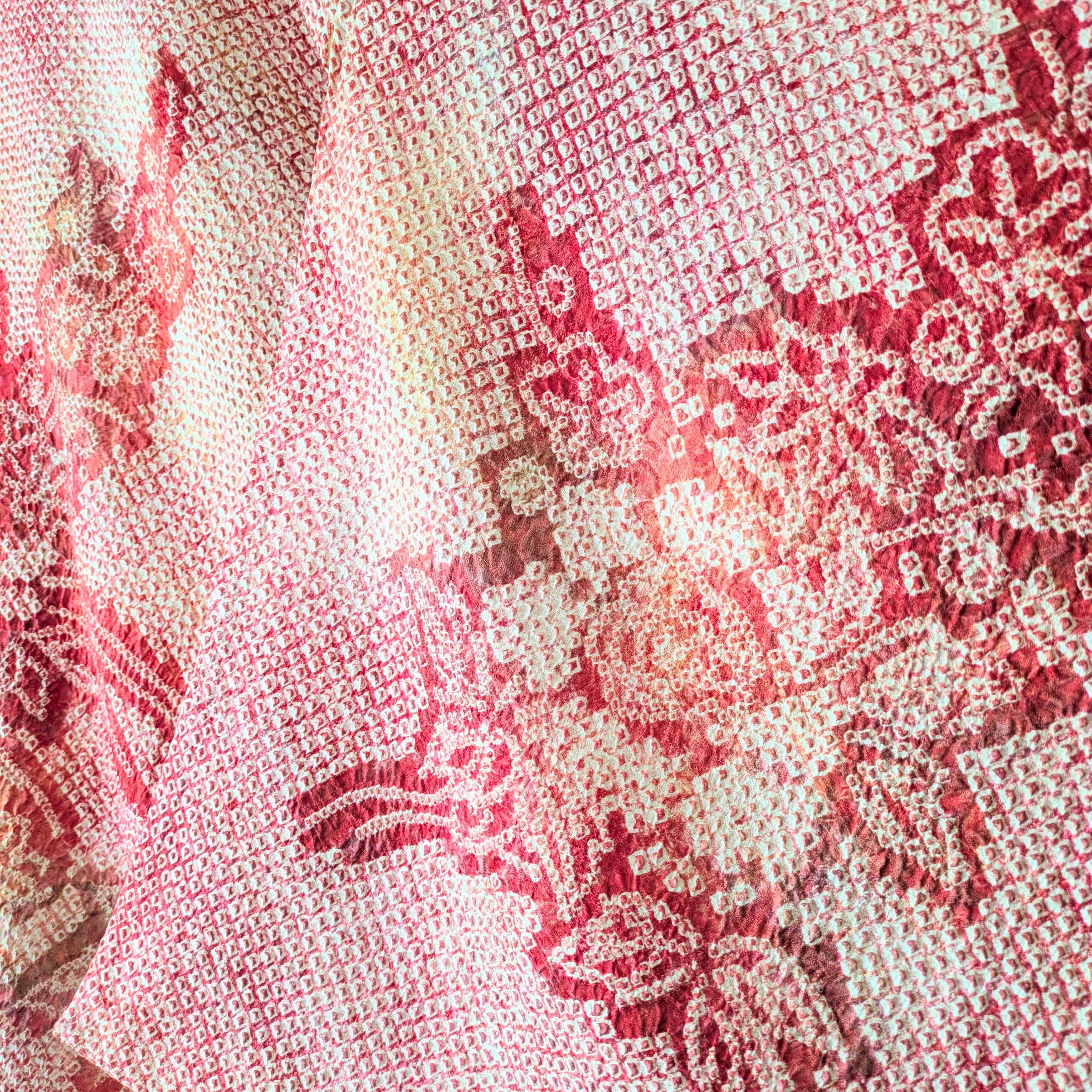 【Vintage】HAORI 羽織 正絹 総絞り 赤系 暈し 草花文 大正浪漫 古布 時代布 和洋折衷
