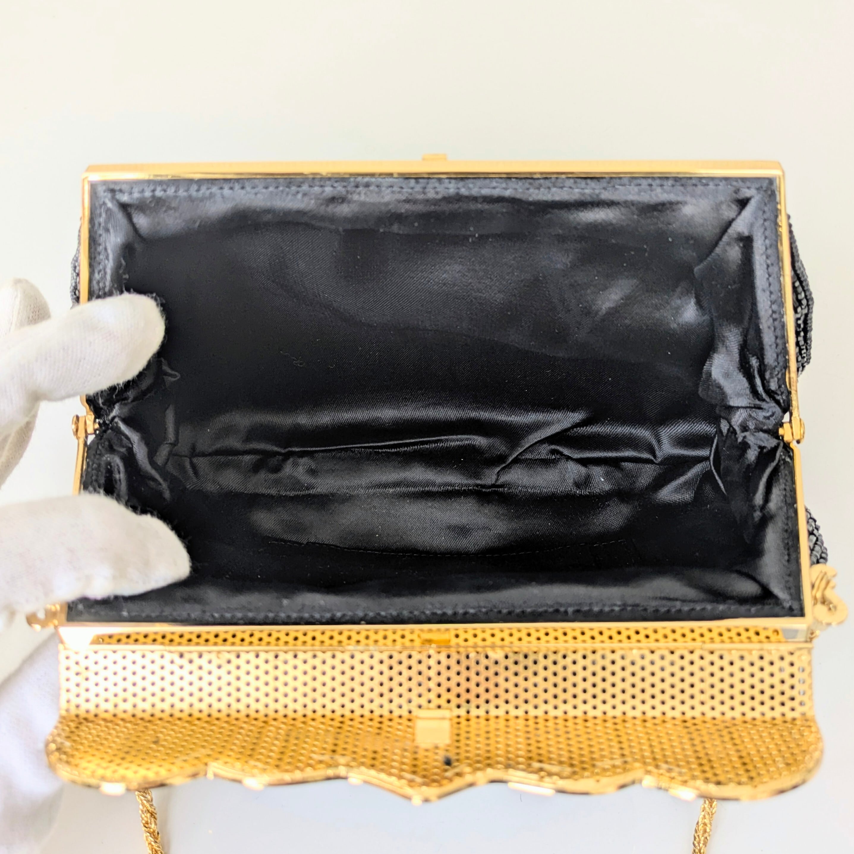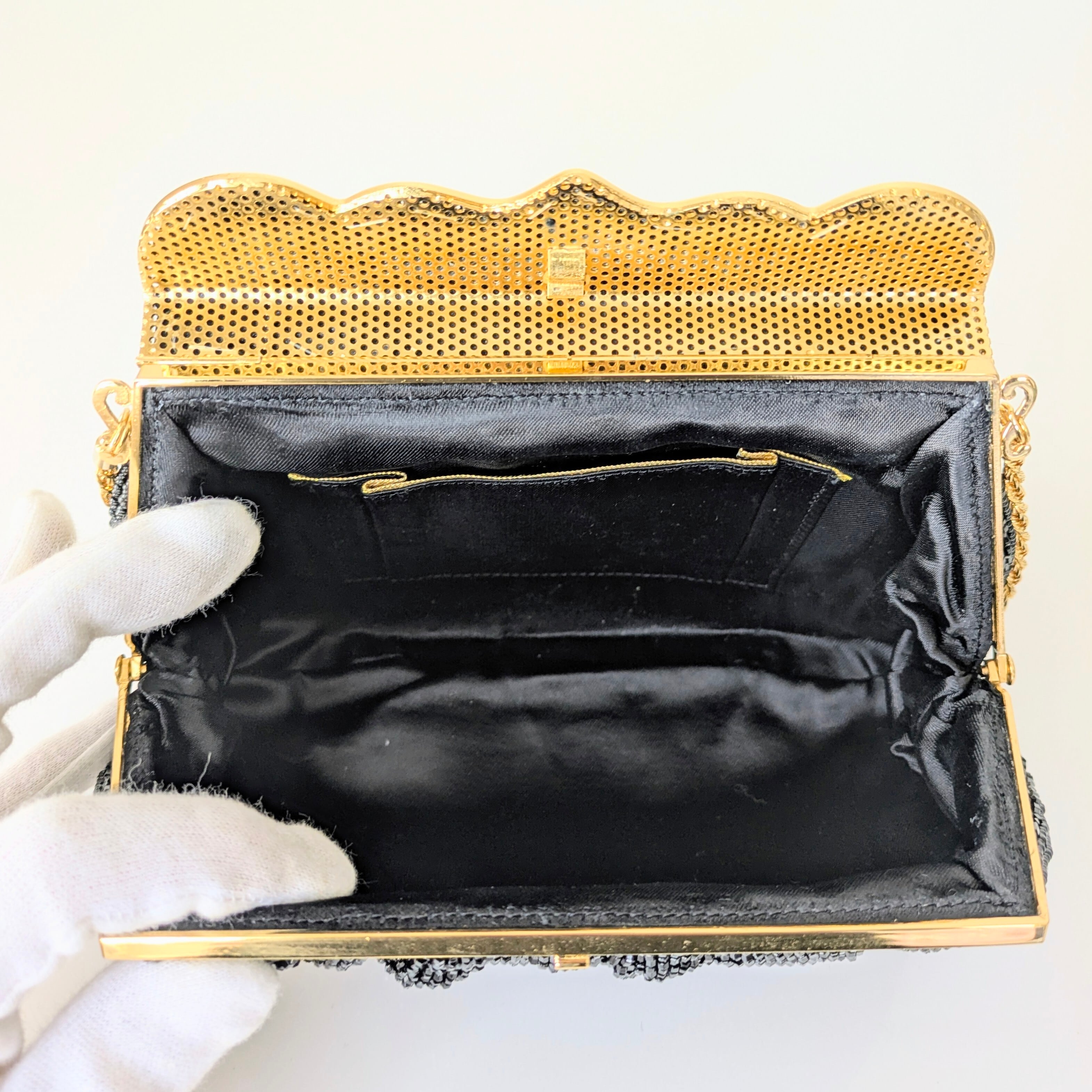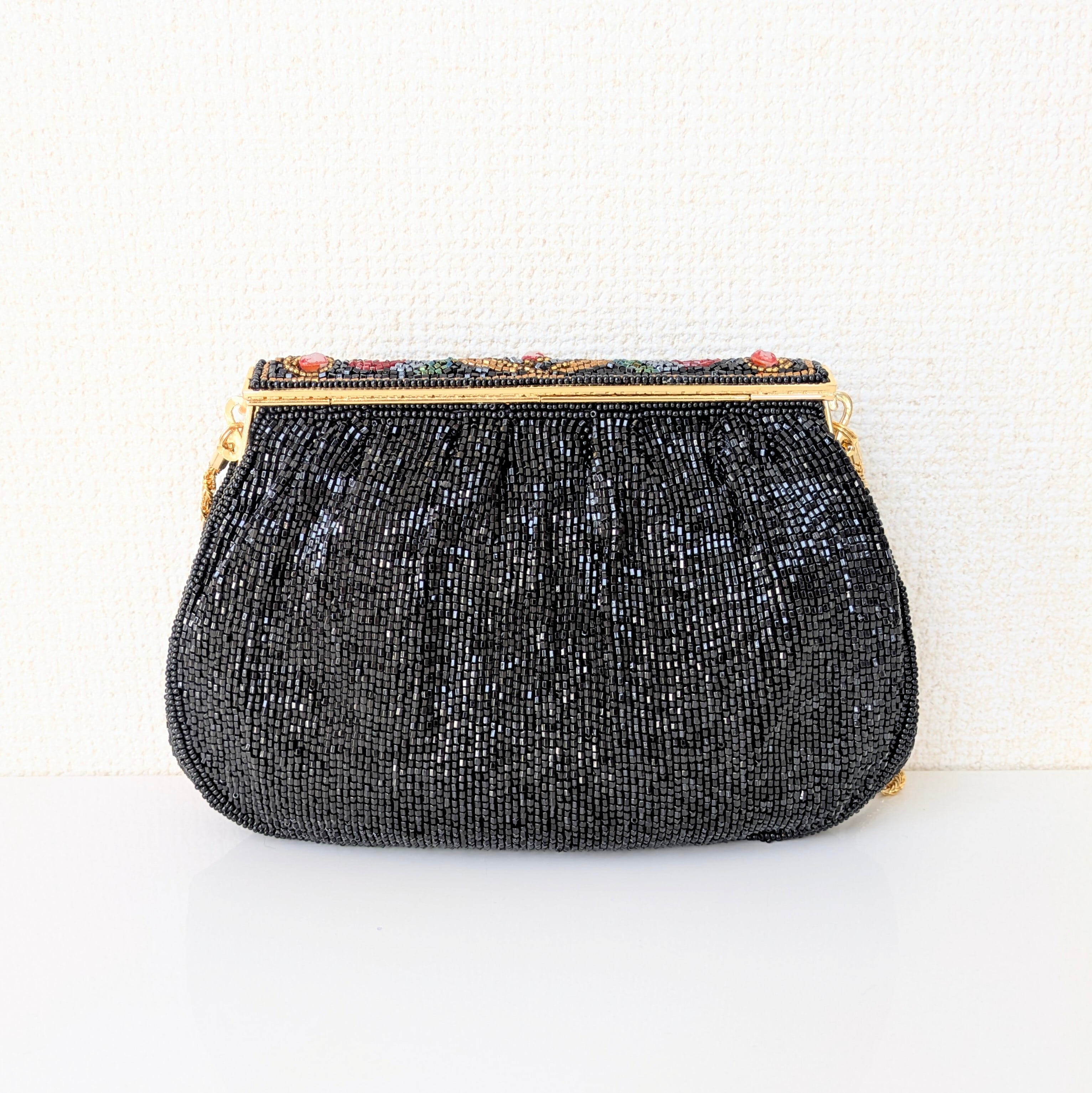 【Vintage】ビーズ刺繍バッグ 黒 フラップ式 カボション パーティーバッグ クラッチバッグ 昭和レトロ 大正浪漫 フォーマルバッグ