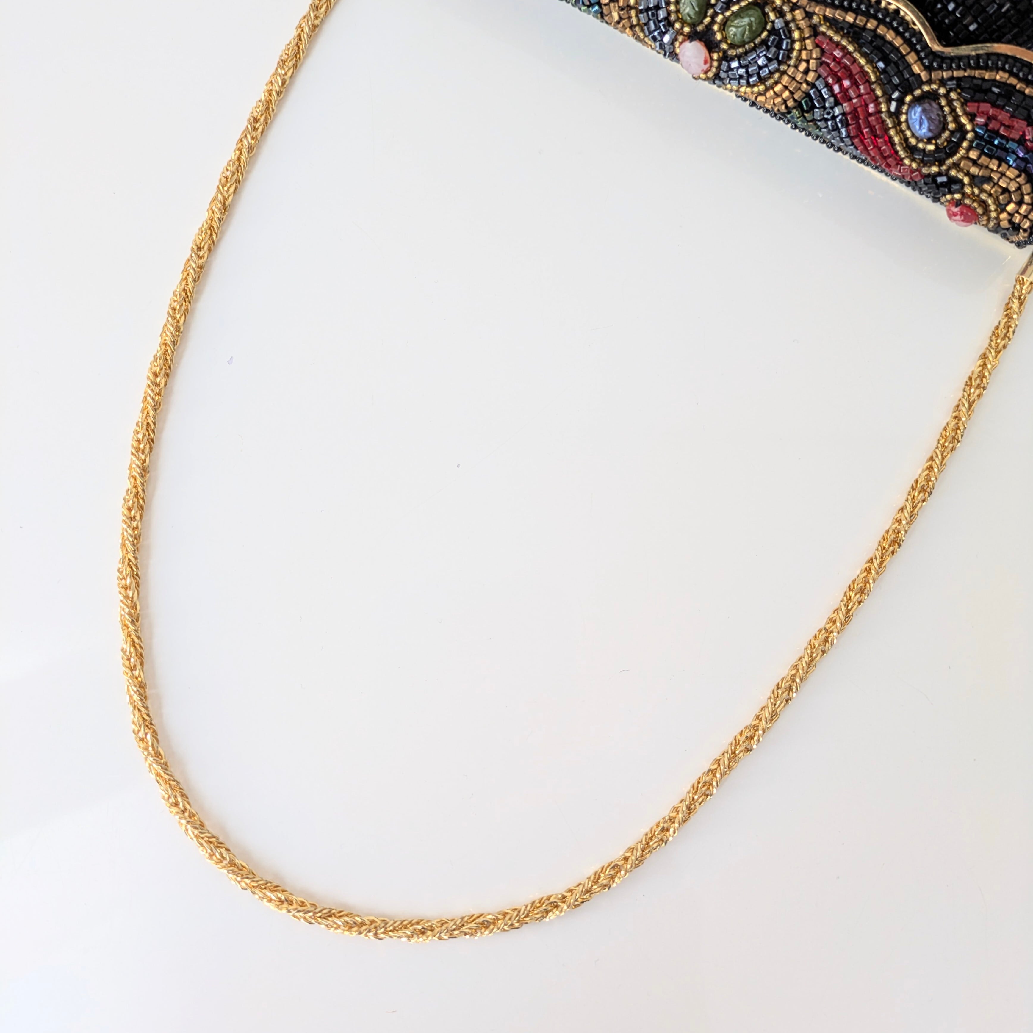 光を受けて美しく輝くヴィンテージビーズバッグ。