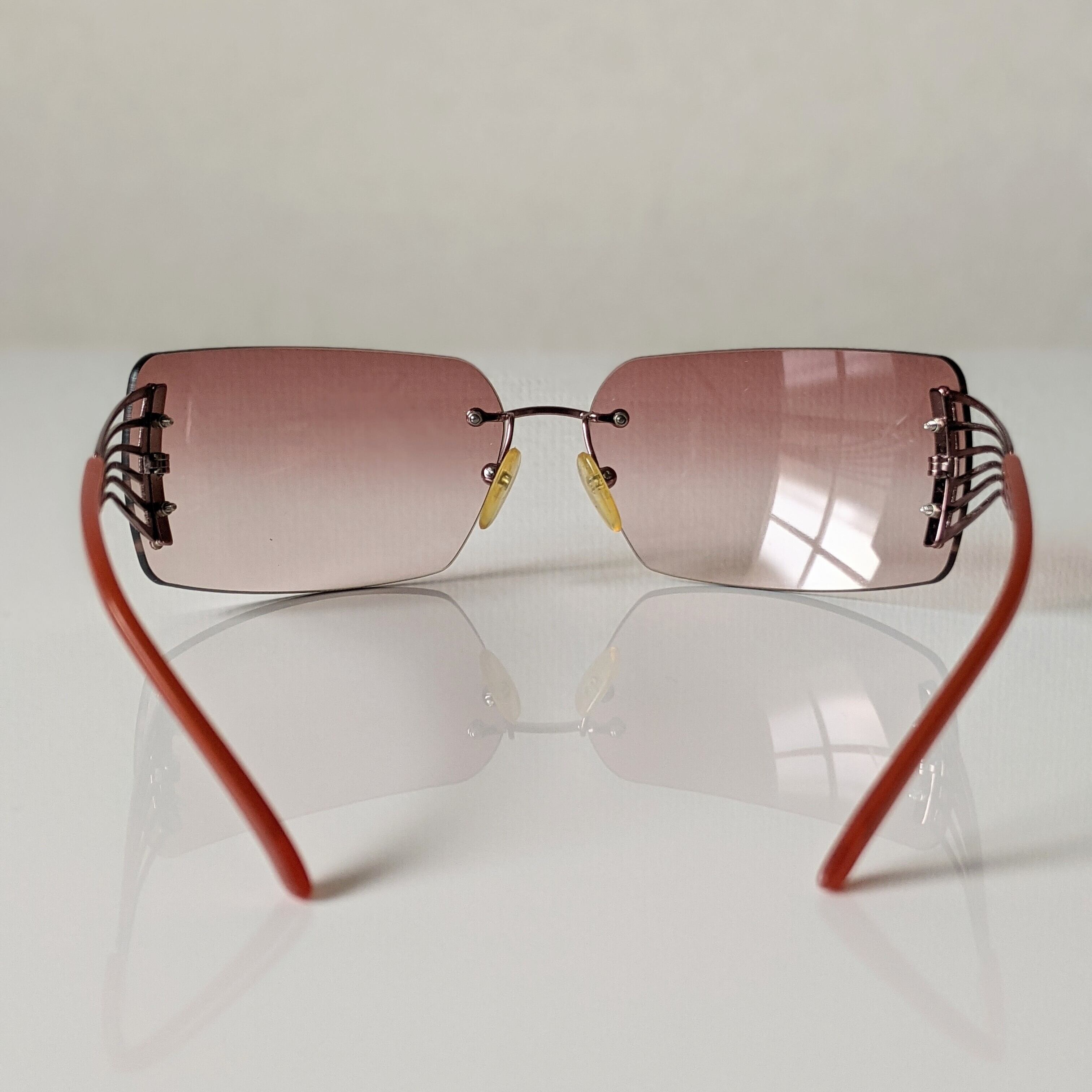 写真では分かりづらいですが、ヒンジ(レンズとテンプルを繋ぐ部分)の6つの留め具にはそれぞれ、縦読みに‹C› ‹E› ‹L› ‹I› ‹N› ‹E›の刻印が入っていて、その細部へのこだわりは、まるで芸術作品を見ているようで、うっとりと魅入ってしまいます。