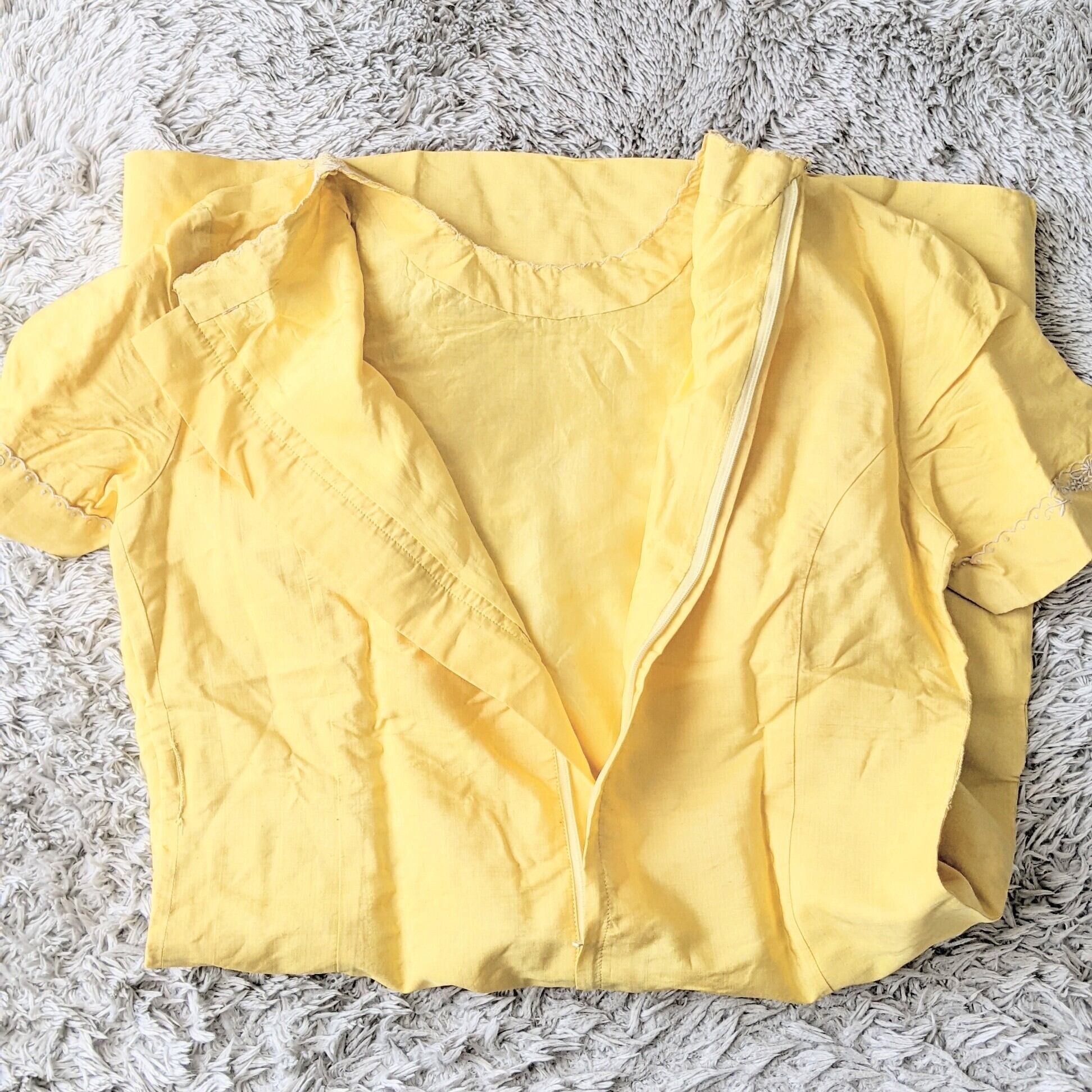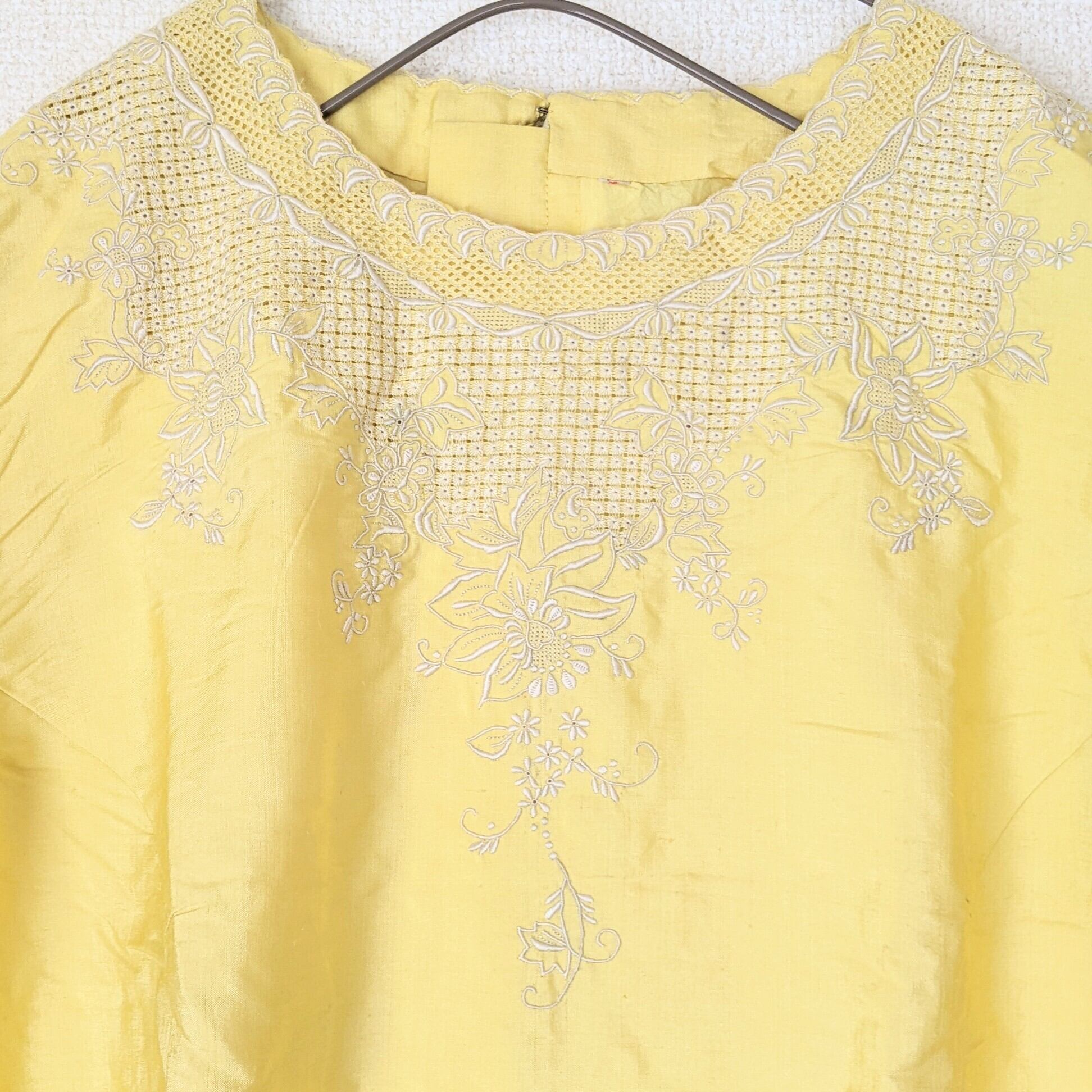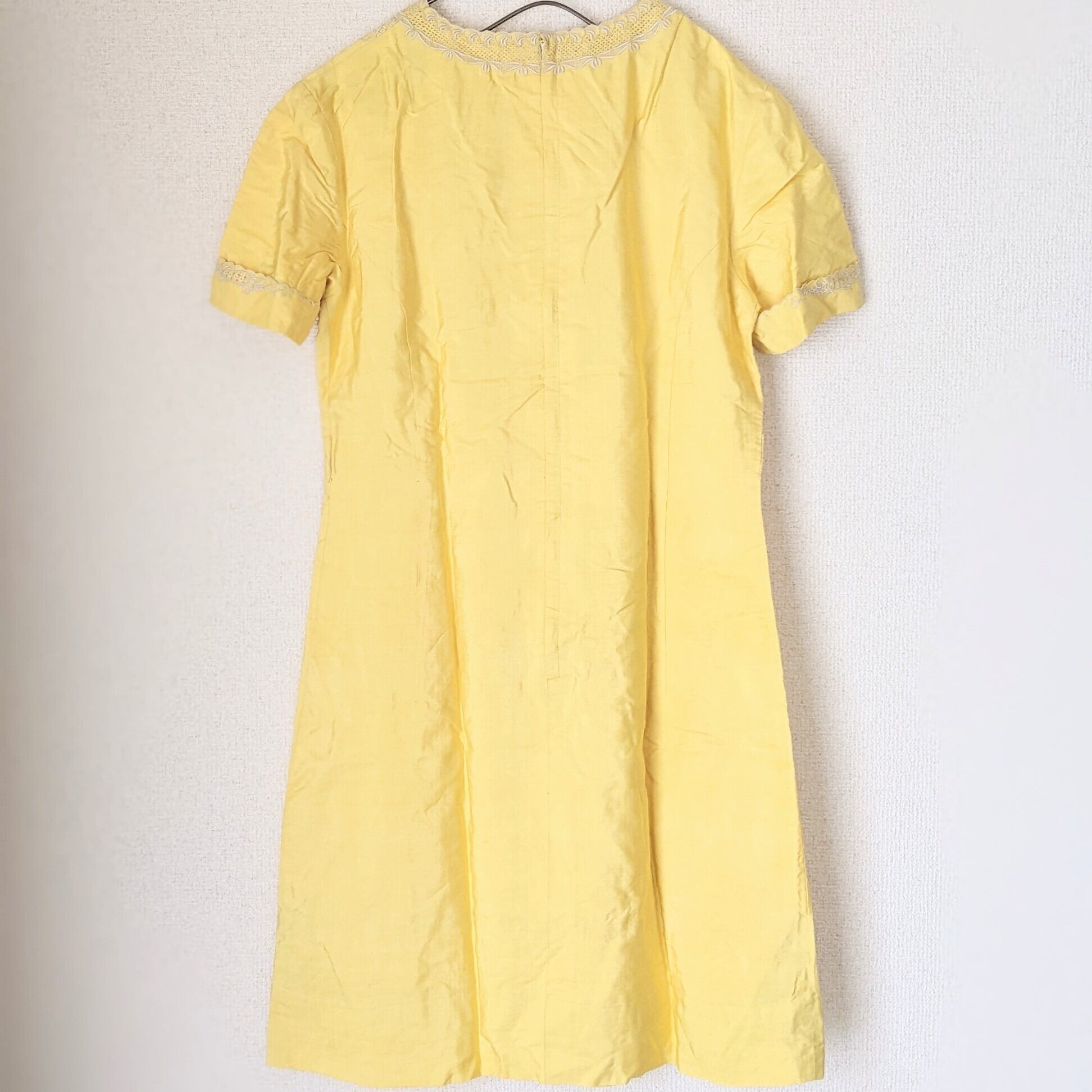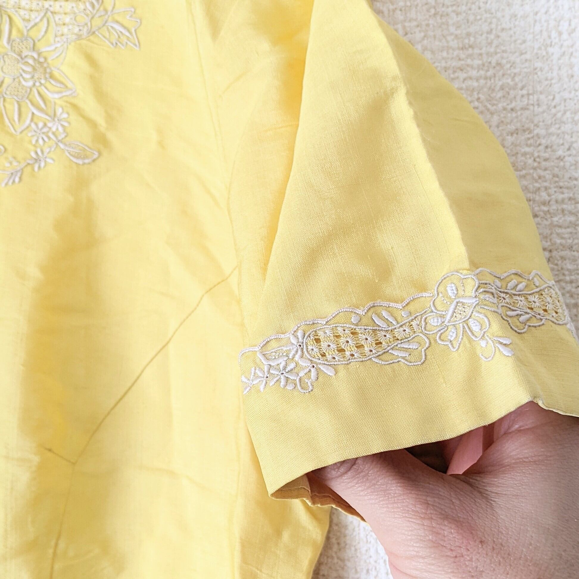 【vintage】レモンイエロー レトロワンピース エンブロイダリー