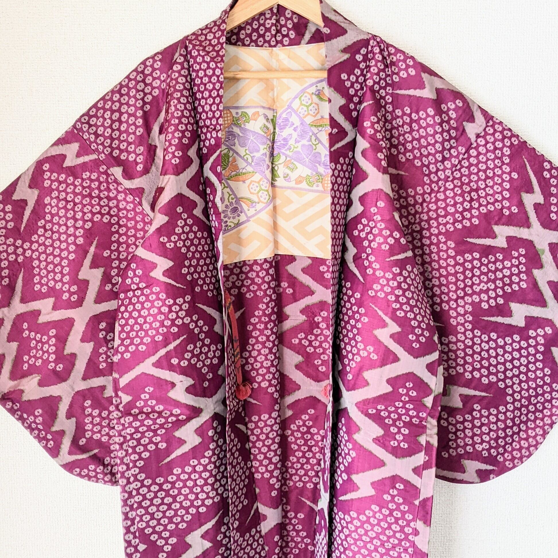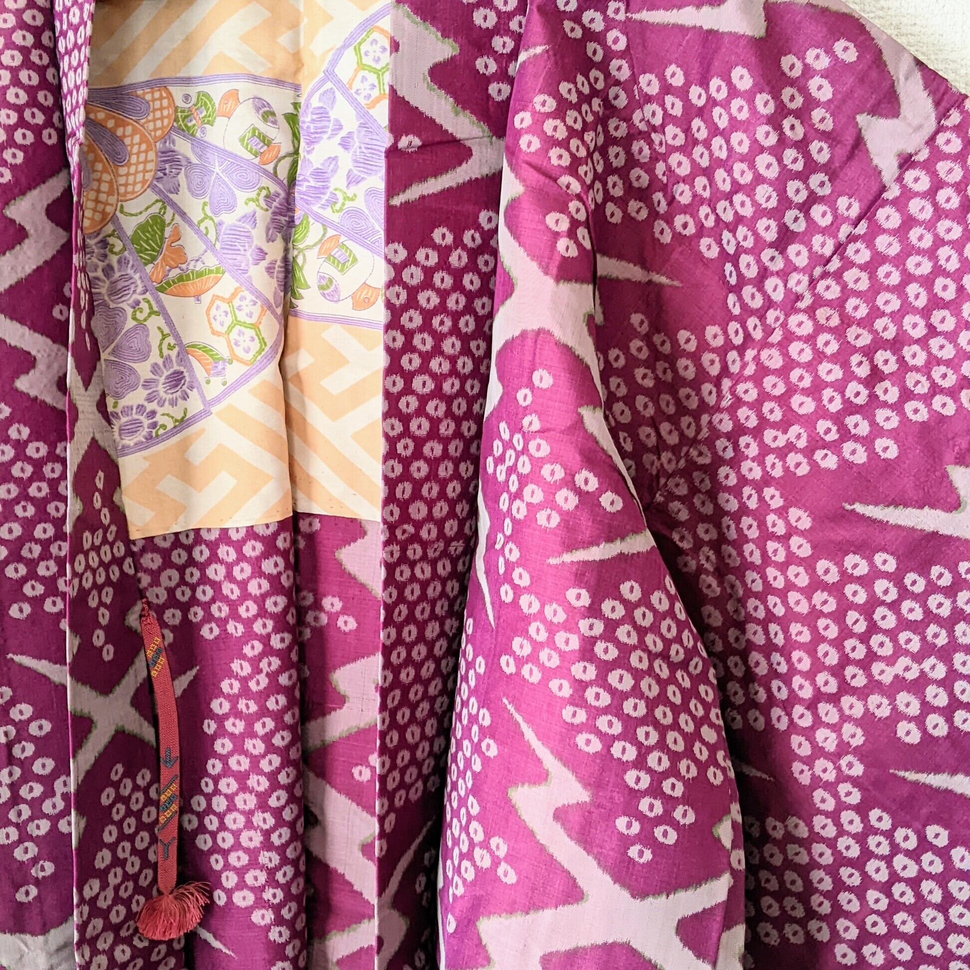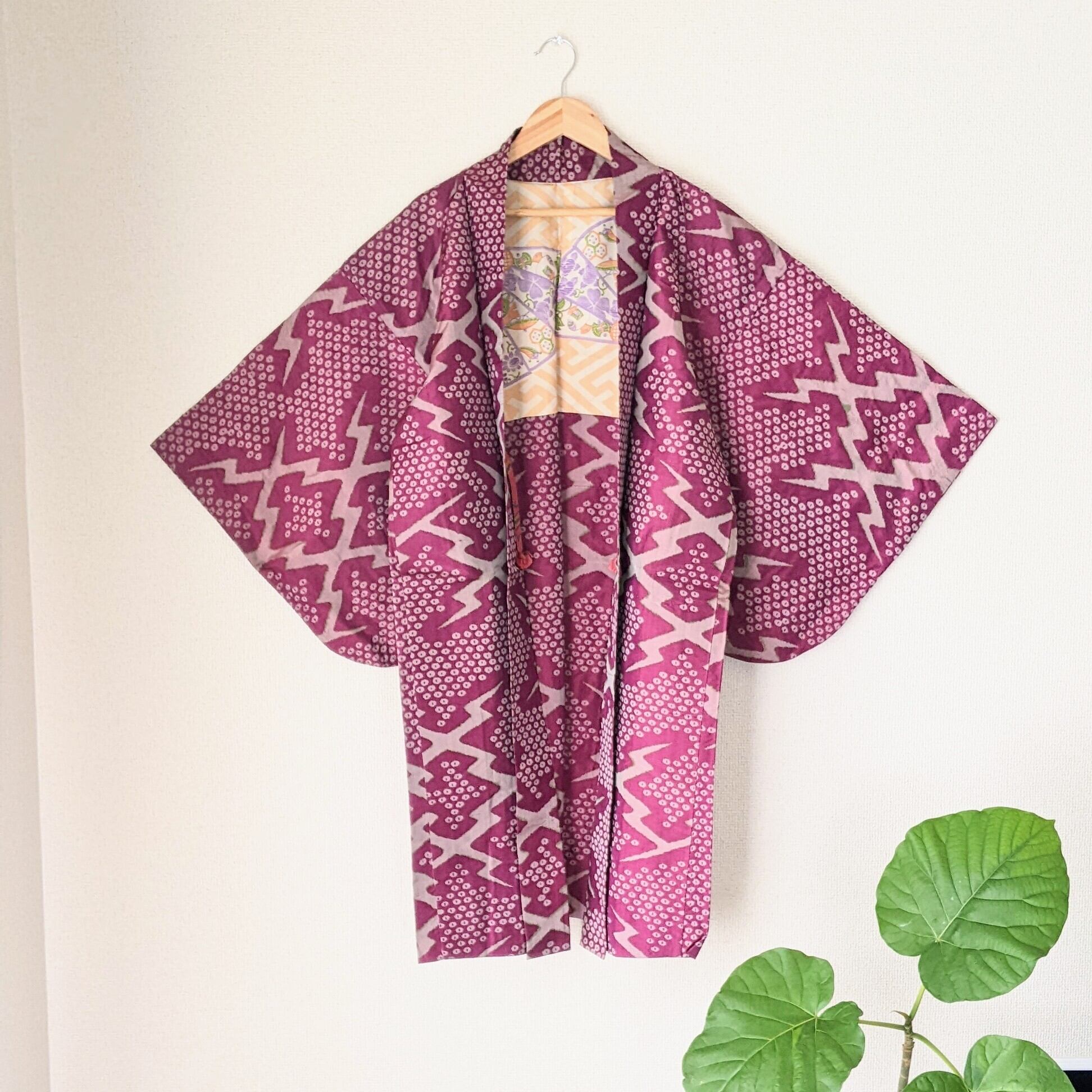 【vintage】羽織り 美品 銘仙 紫 正絹 シルク