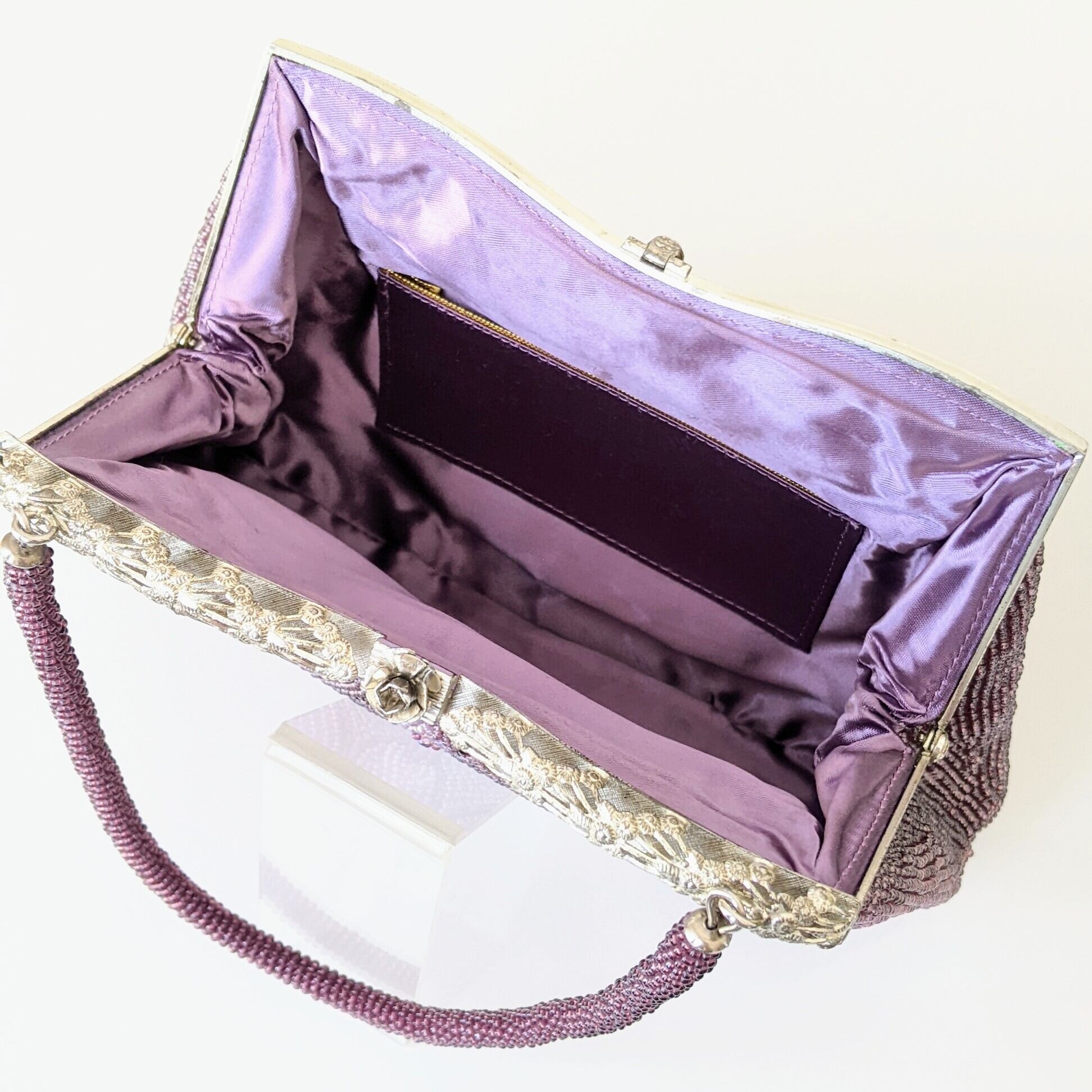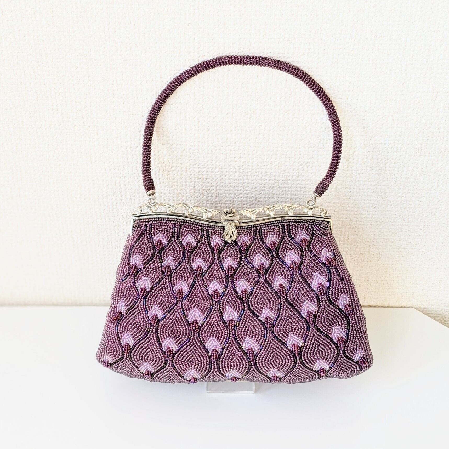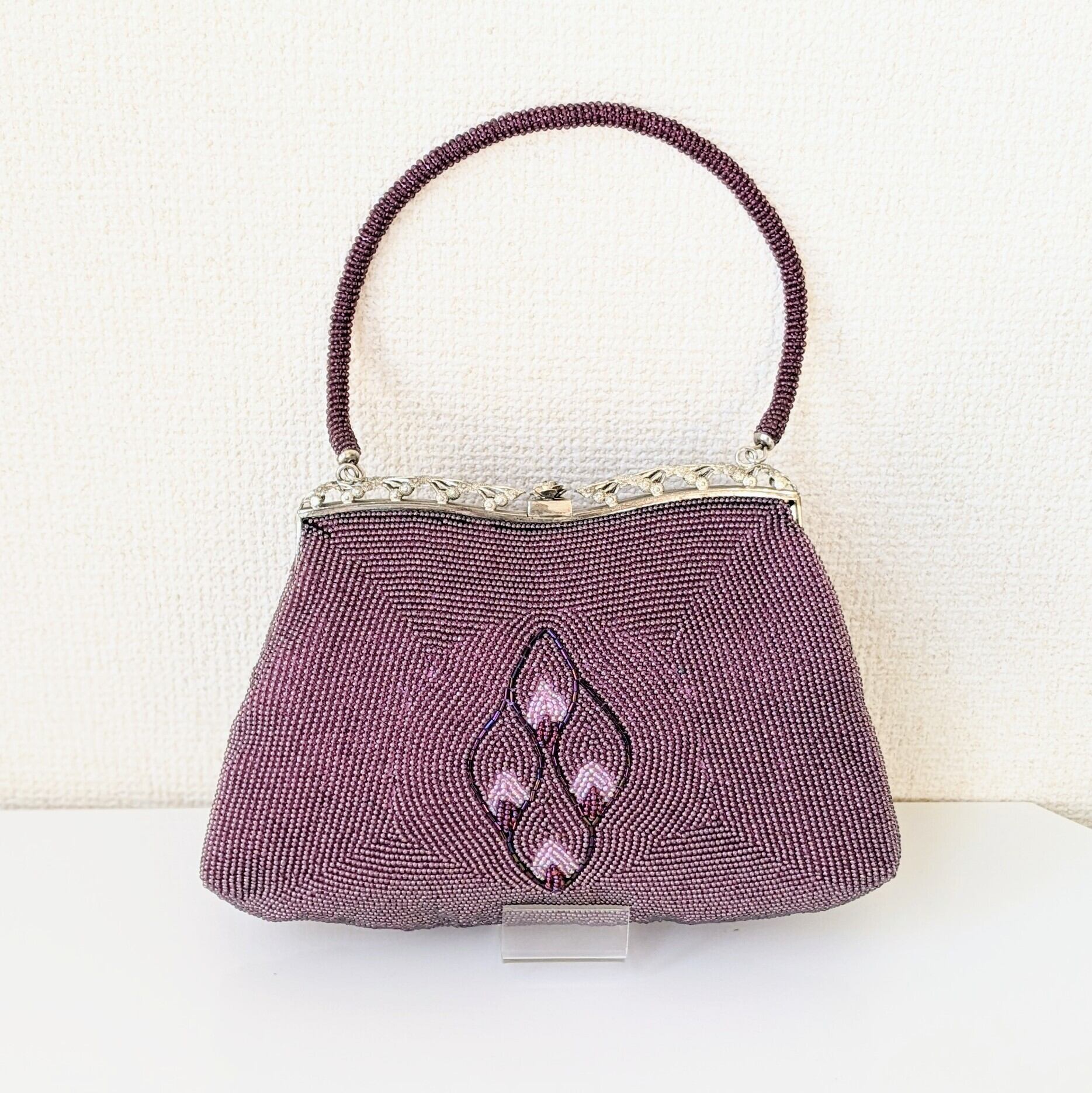 【vintage】ビーズ刺繍バッグ 紫×シルバー 立体刺繍 昭和ヴィンテージ