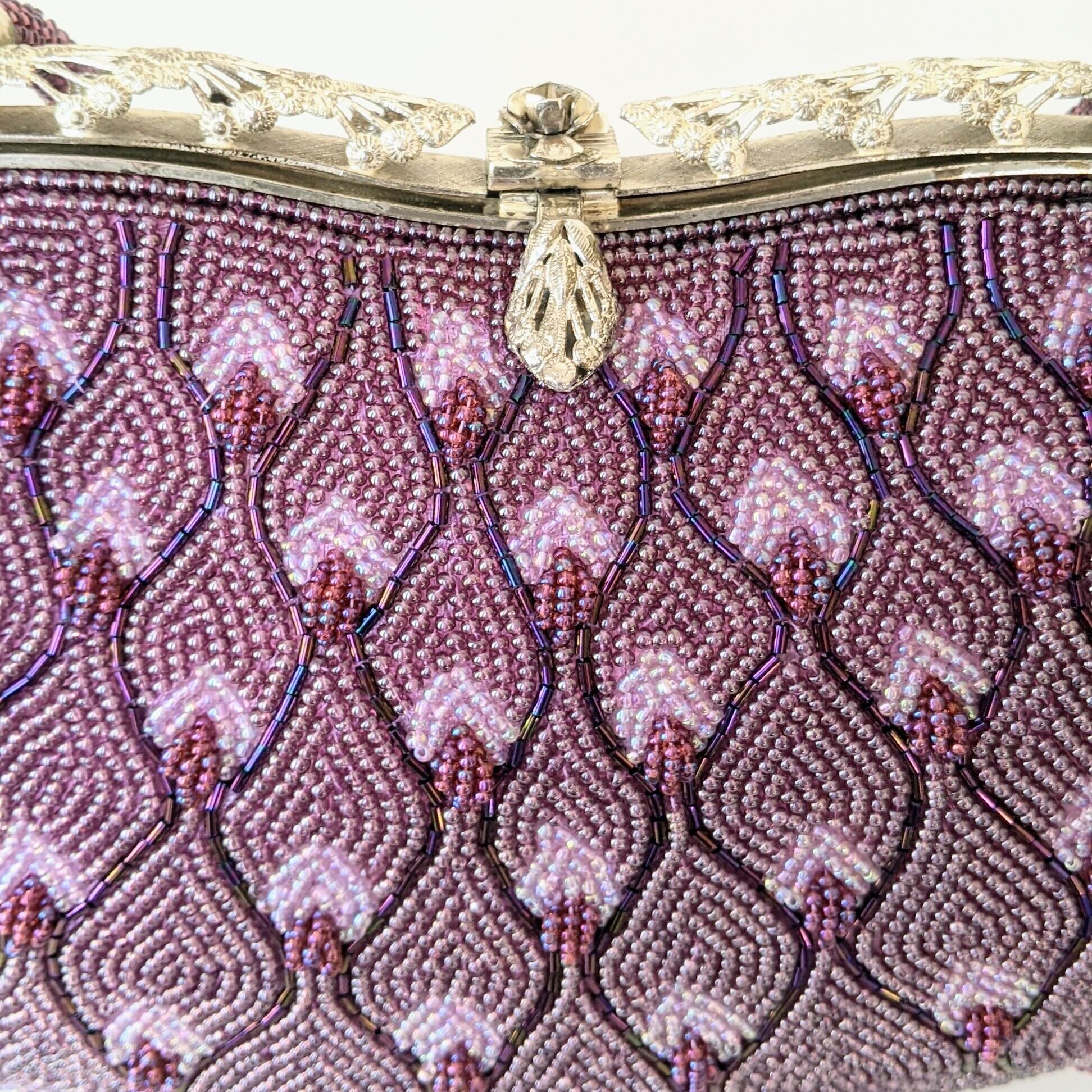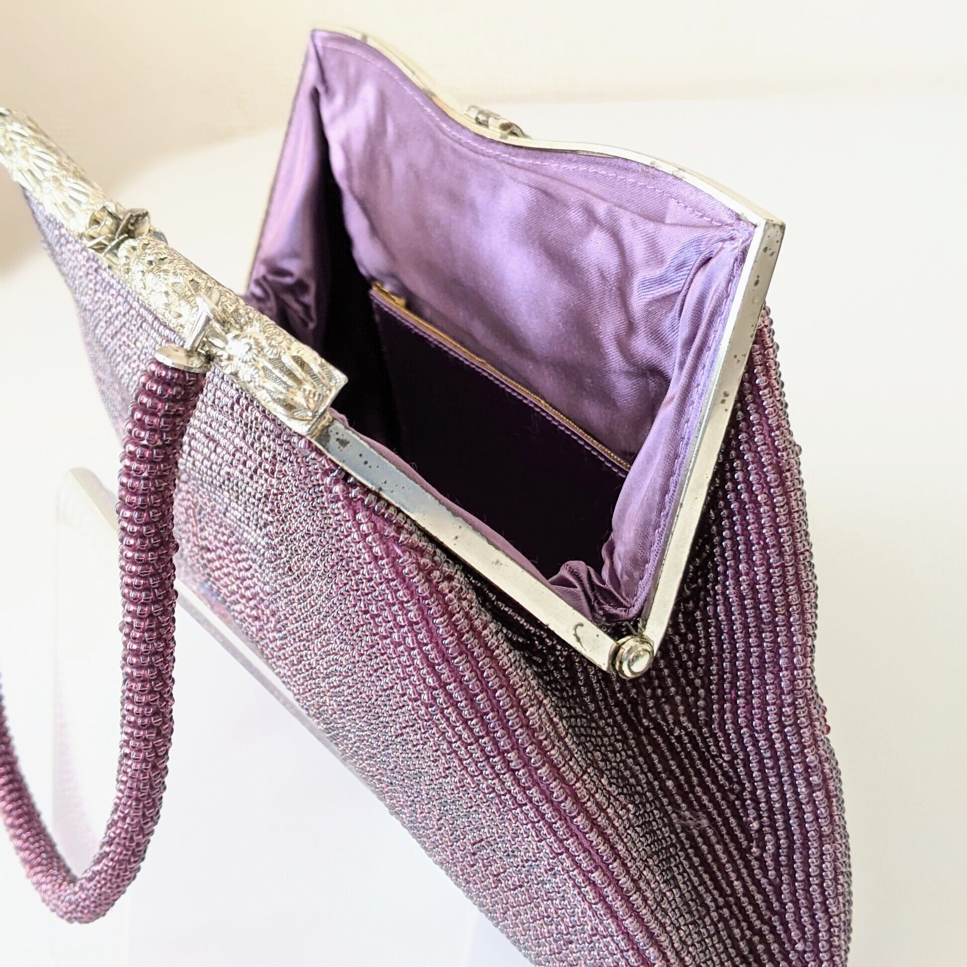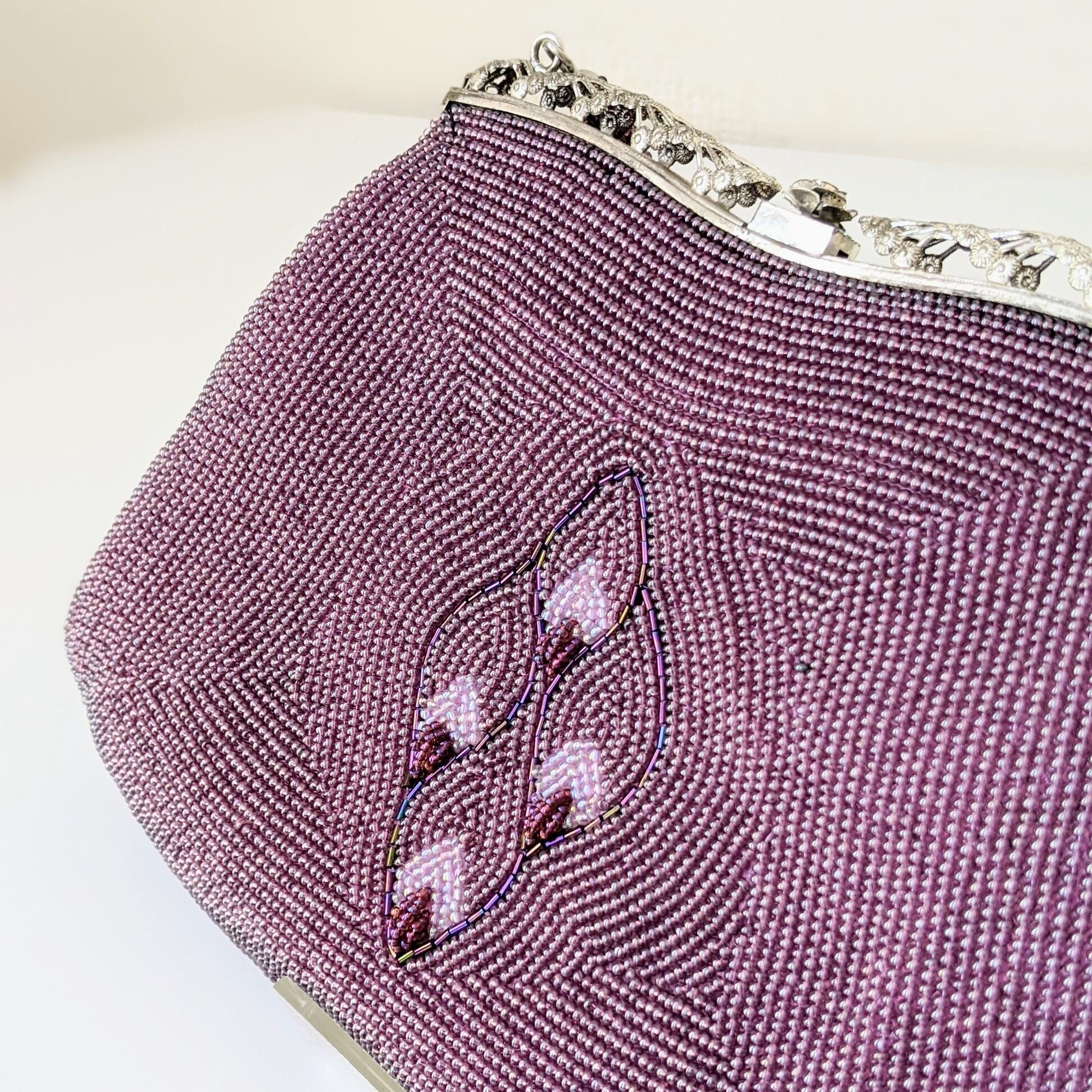 【vintage】ビーズ刺繍バッグ 紫×シルバー 立体刺繍 昭和ヴィンテージ