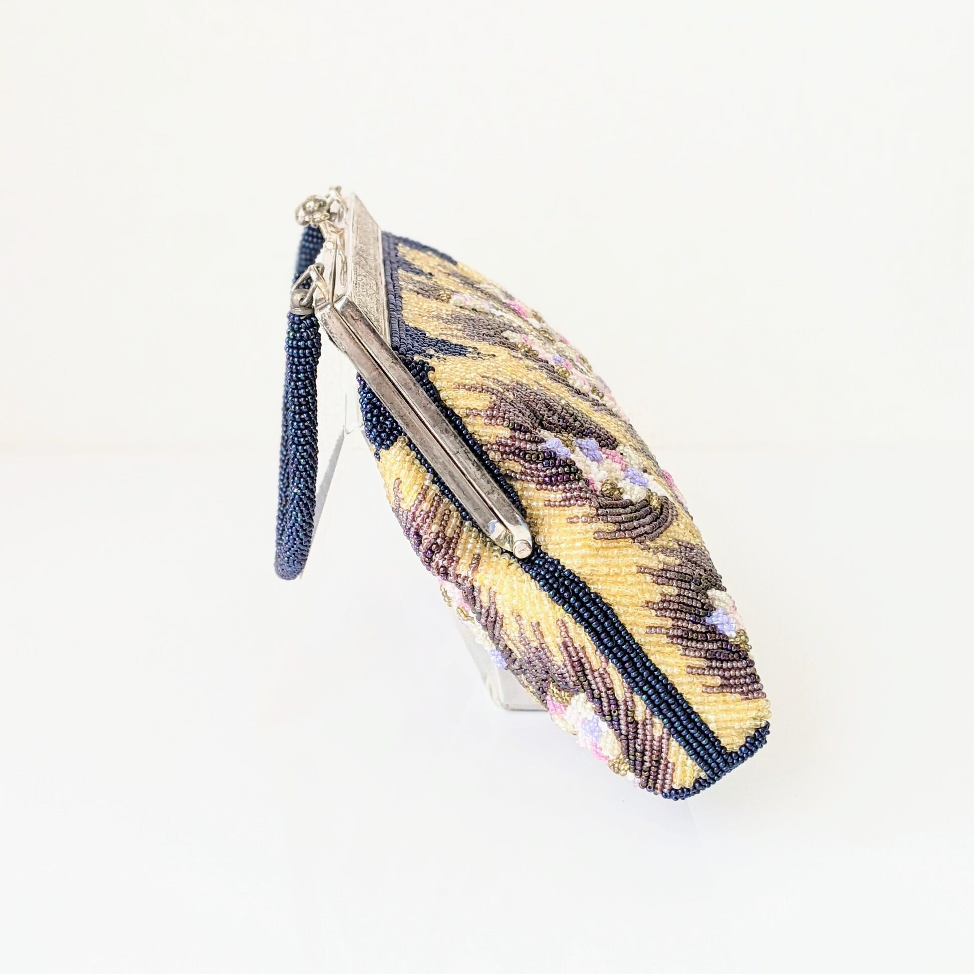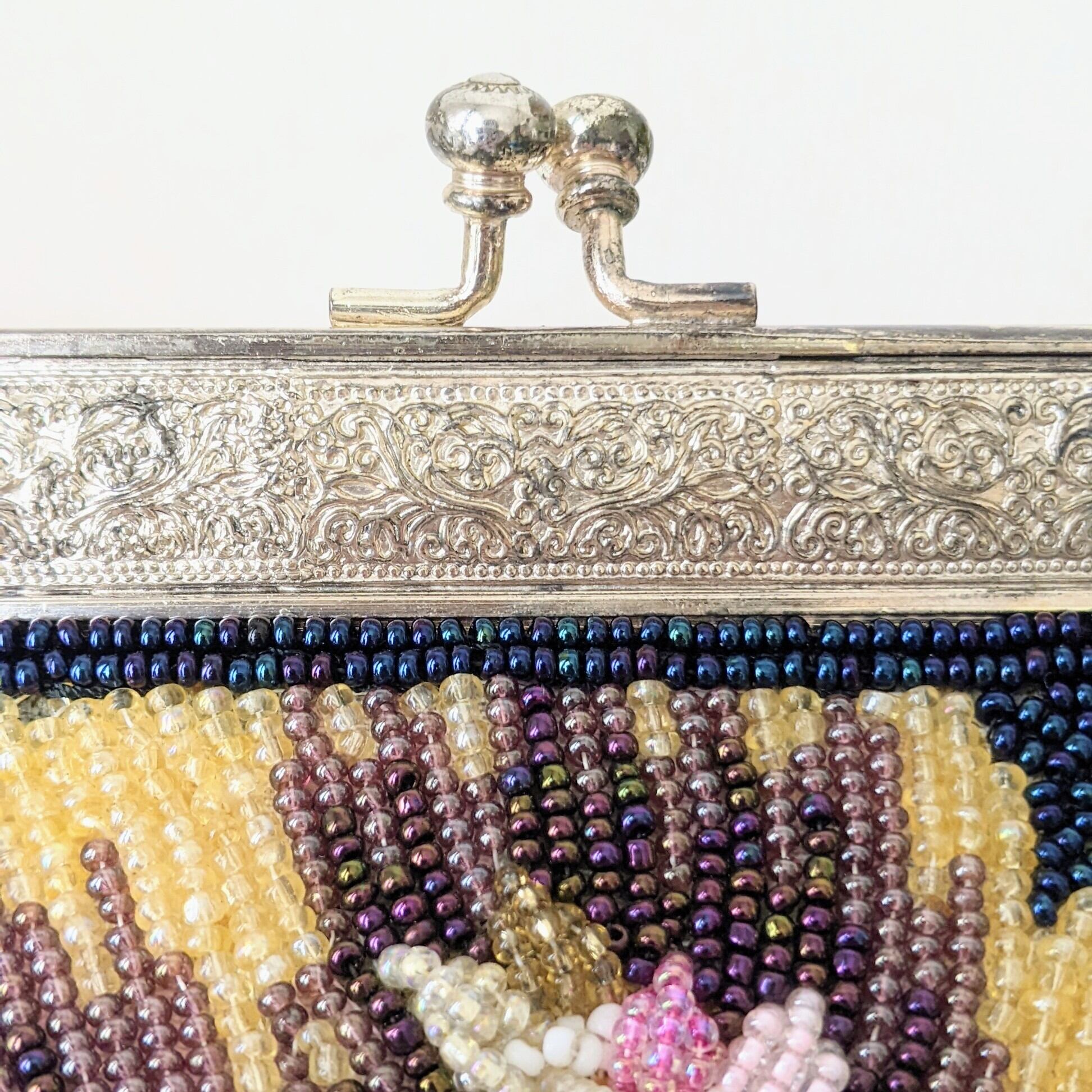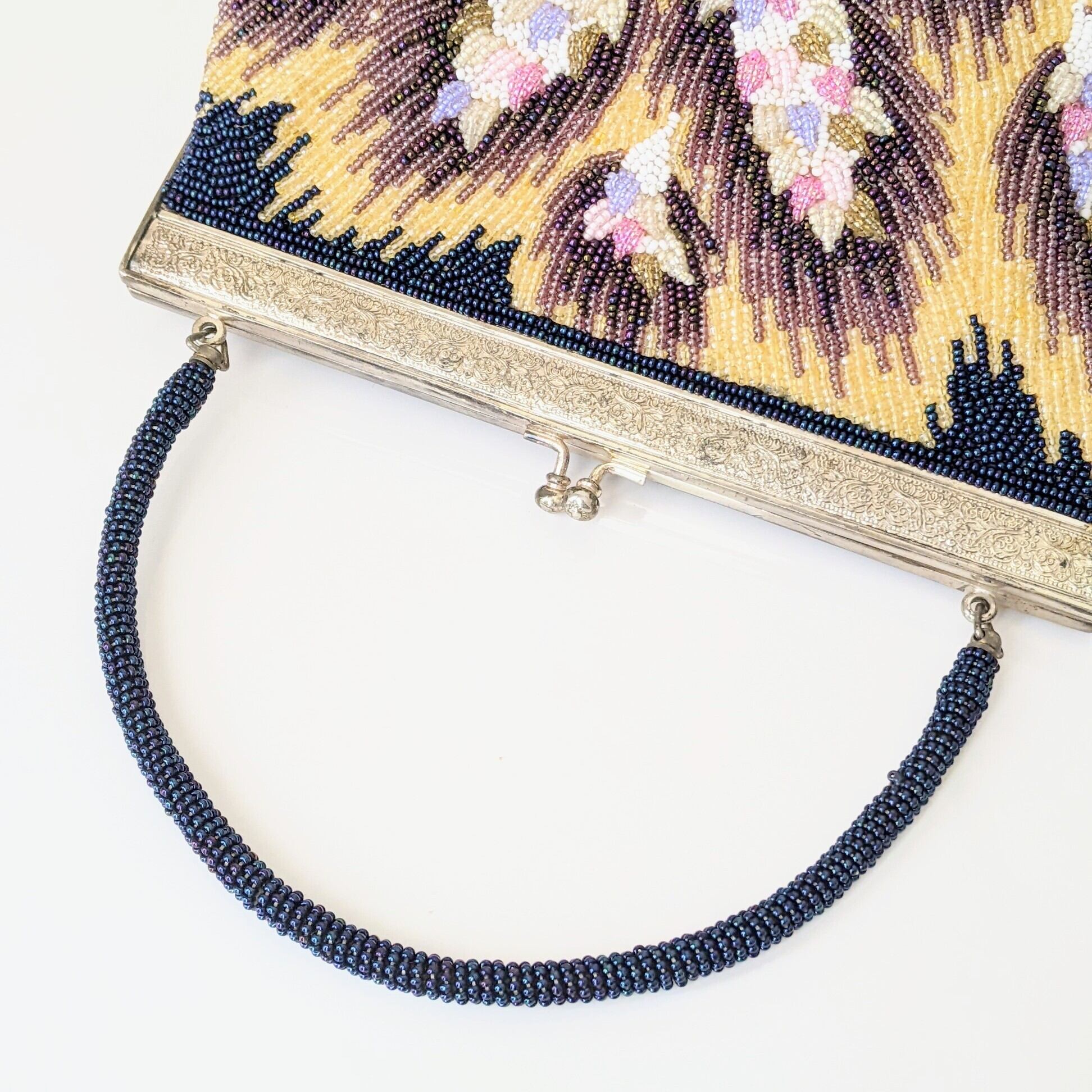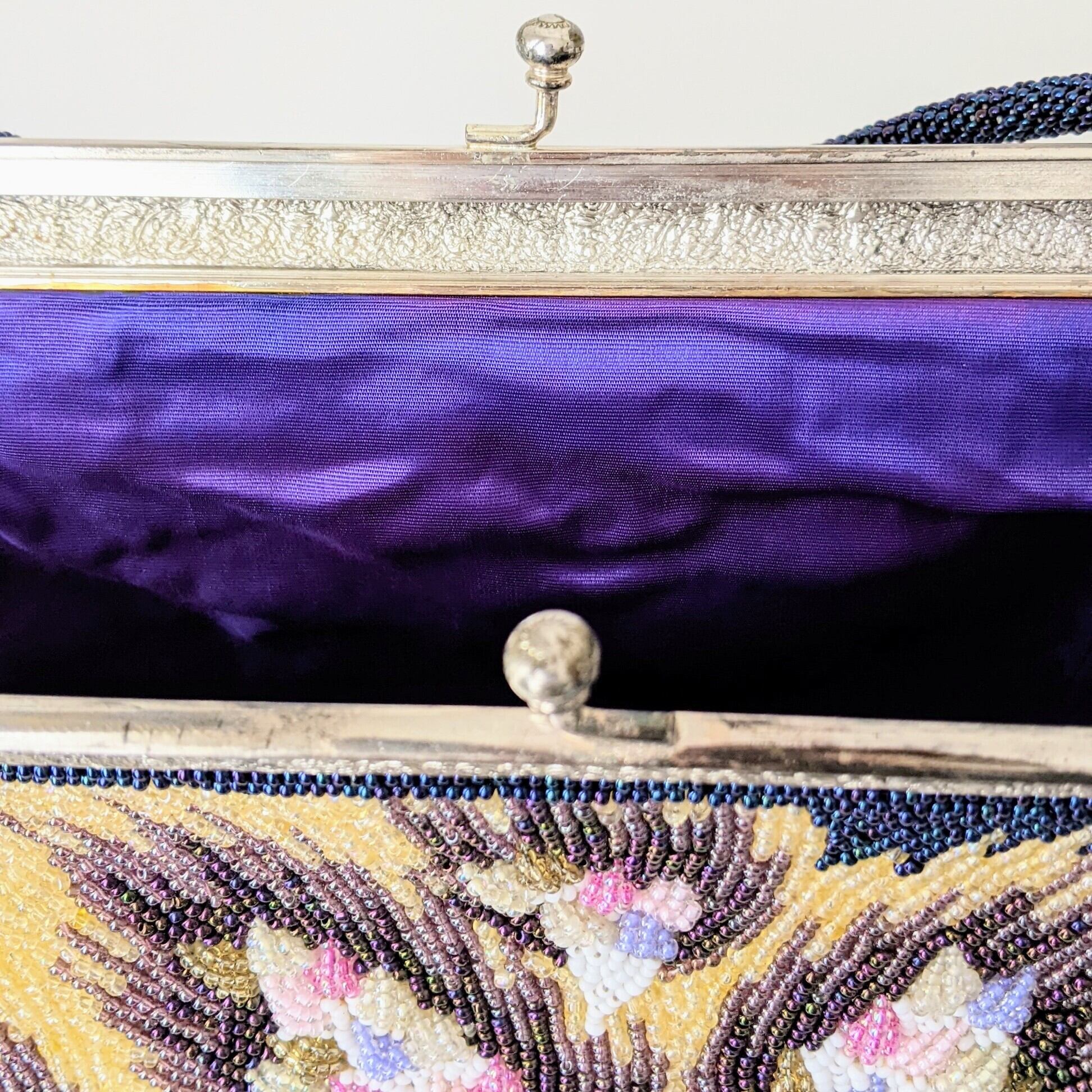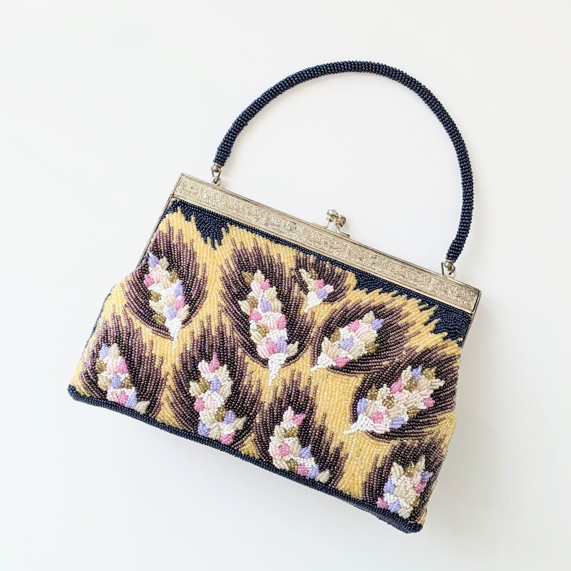 【vintage】ビーズ刺繍バッグ 稲穂柄 昭和レトロ マルチカラー 紫色