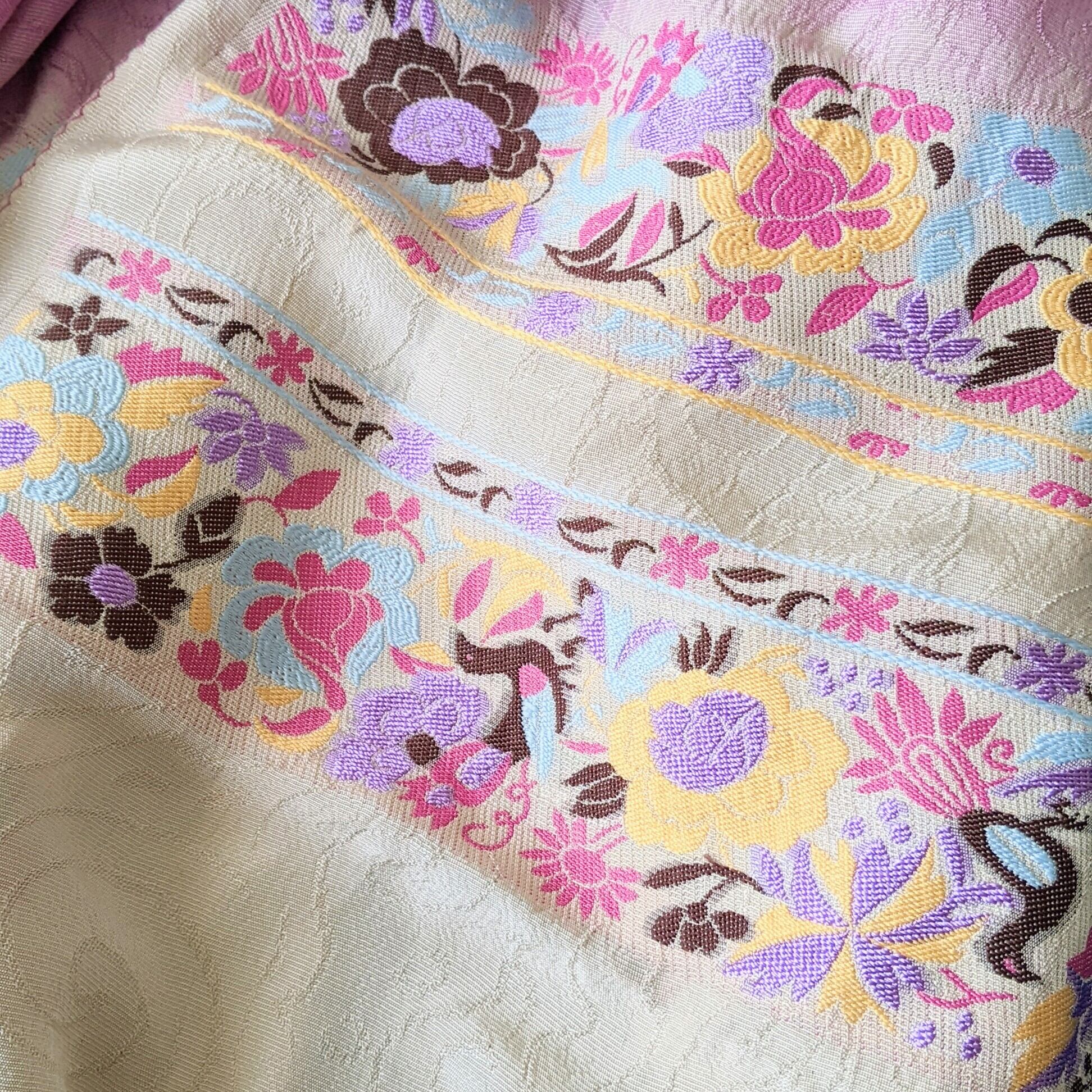 両端には可愛らしいカラフルな花々のモチーフが丁寧に刺繍されています。