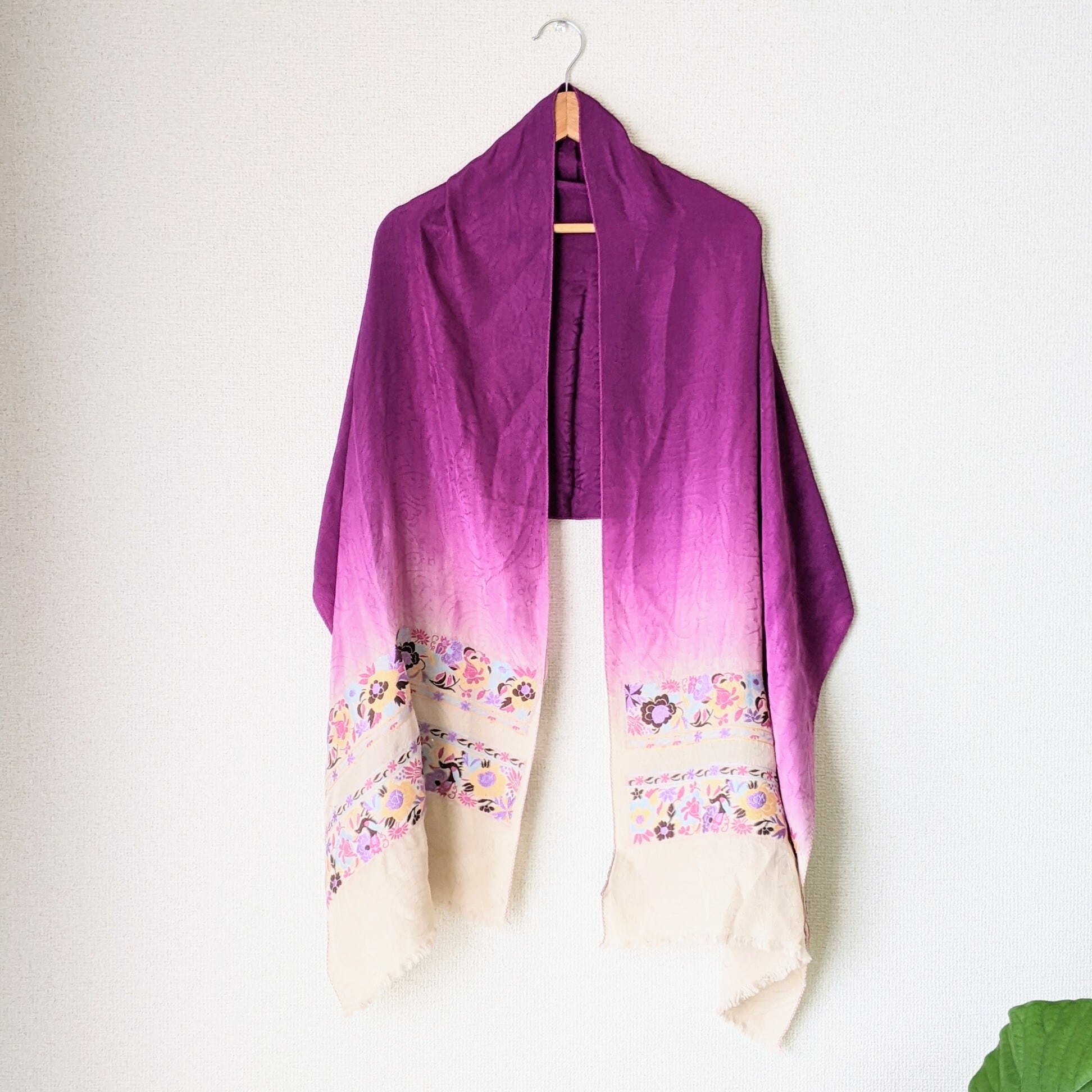 紫色のグラデーションがとても美しいエトロのスカーフです。