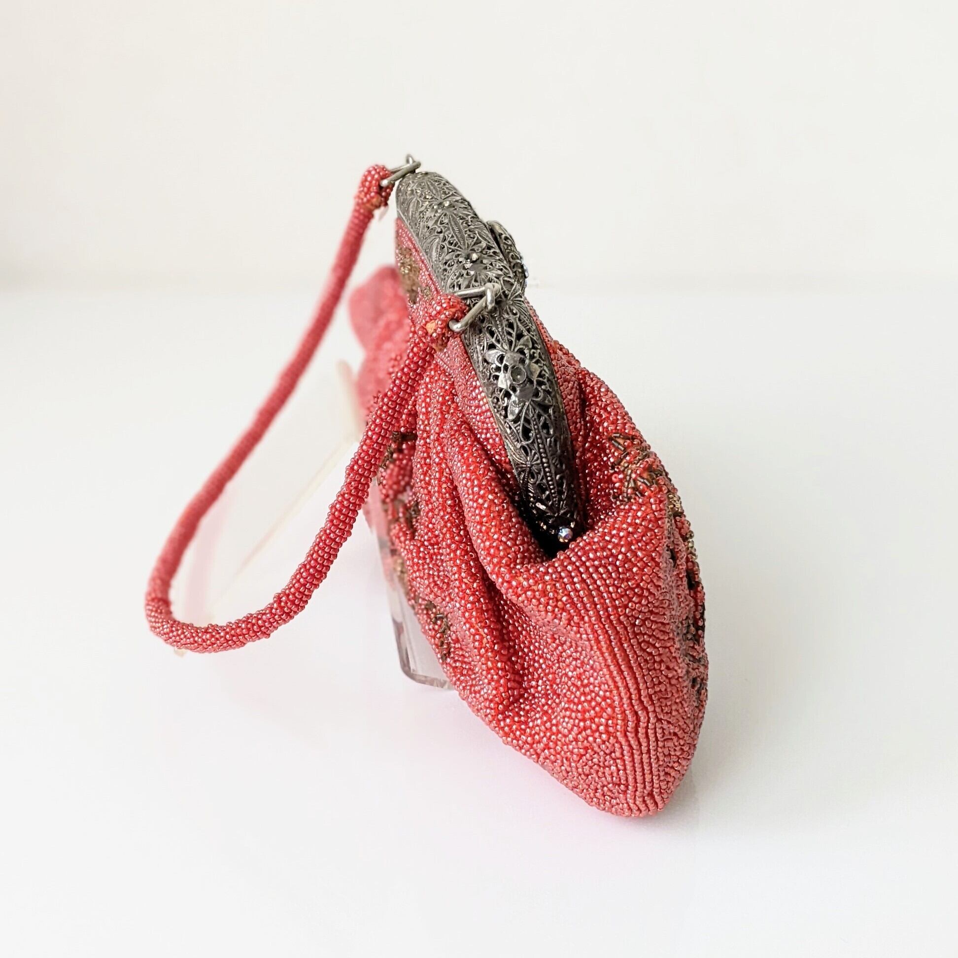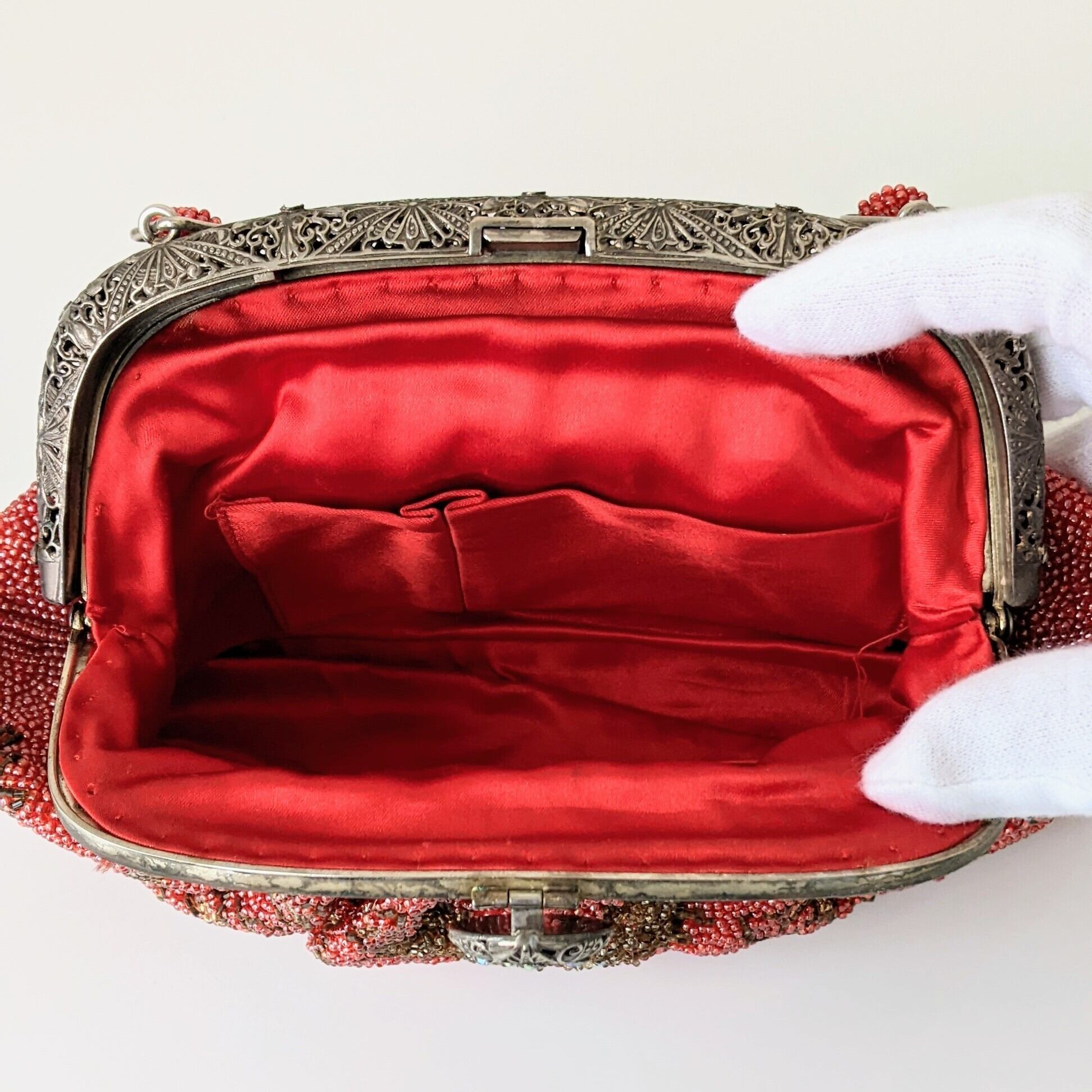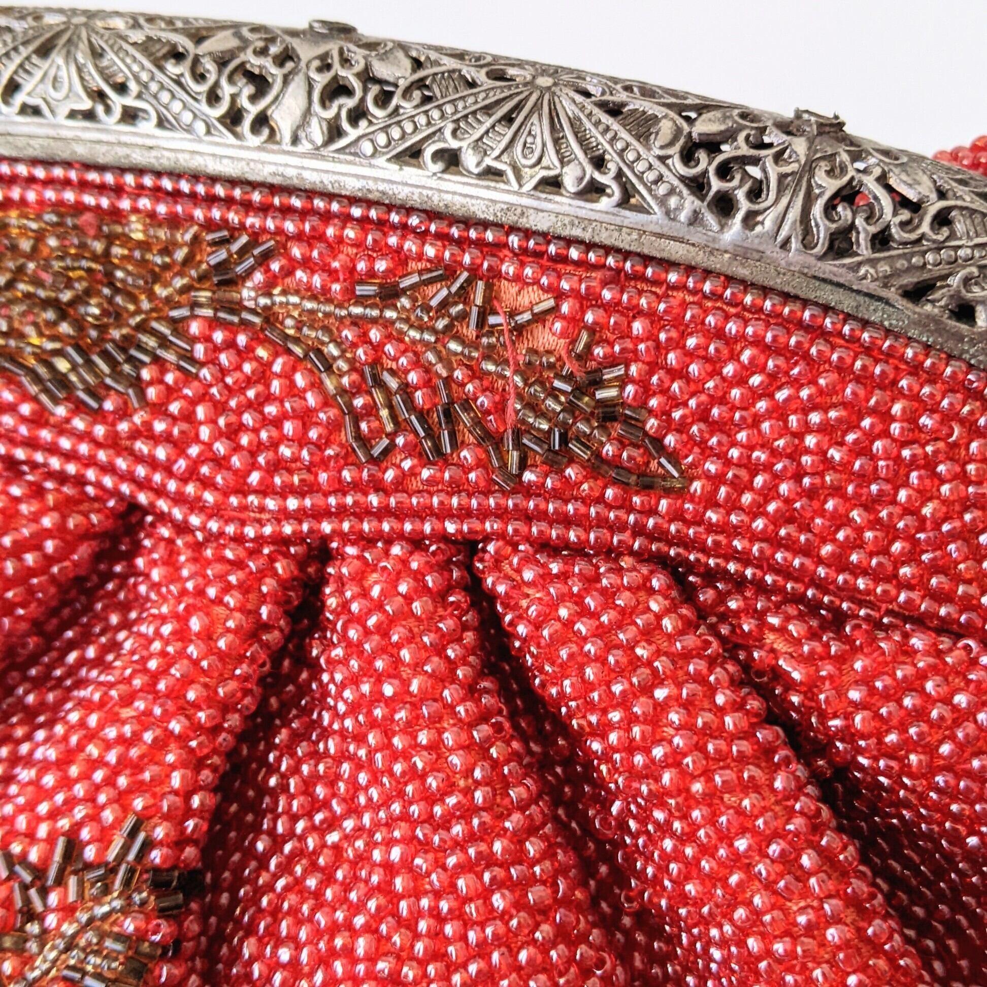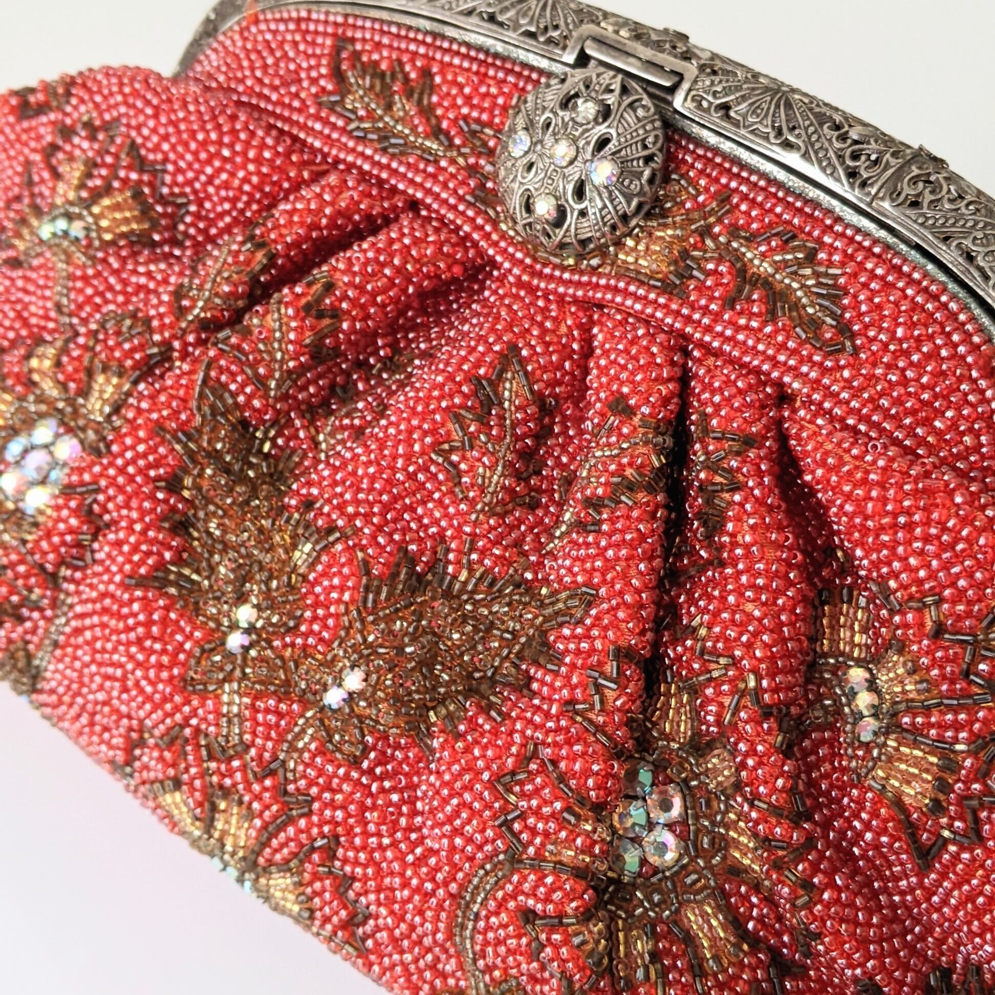 古い洋館で暮らす女主人が大切に持っているようなアンティークレッドのビーズバッグ。