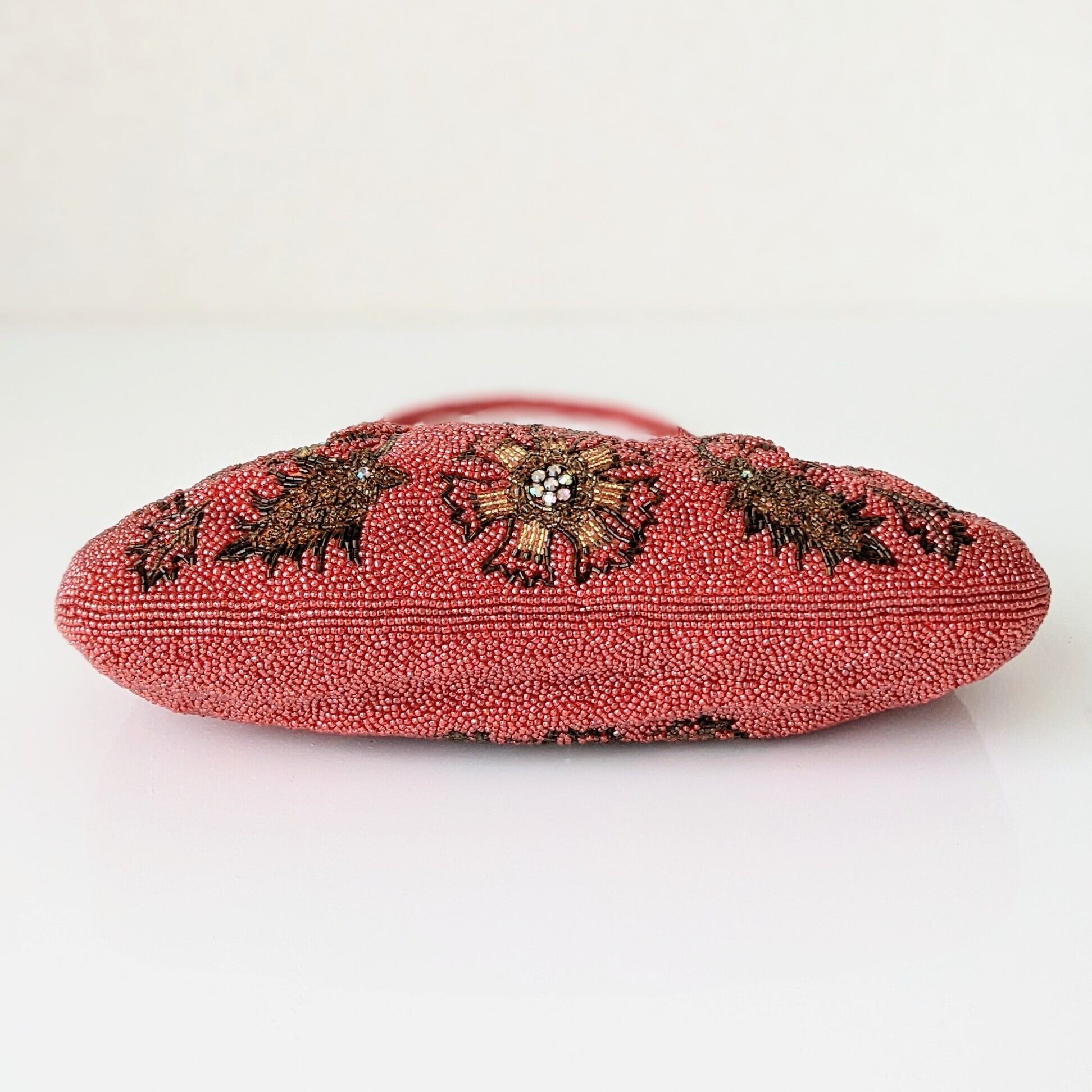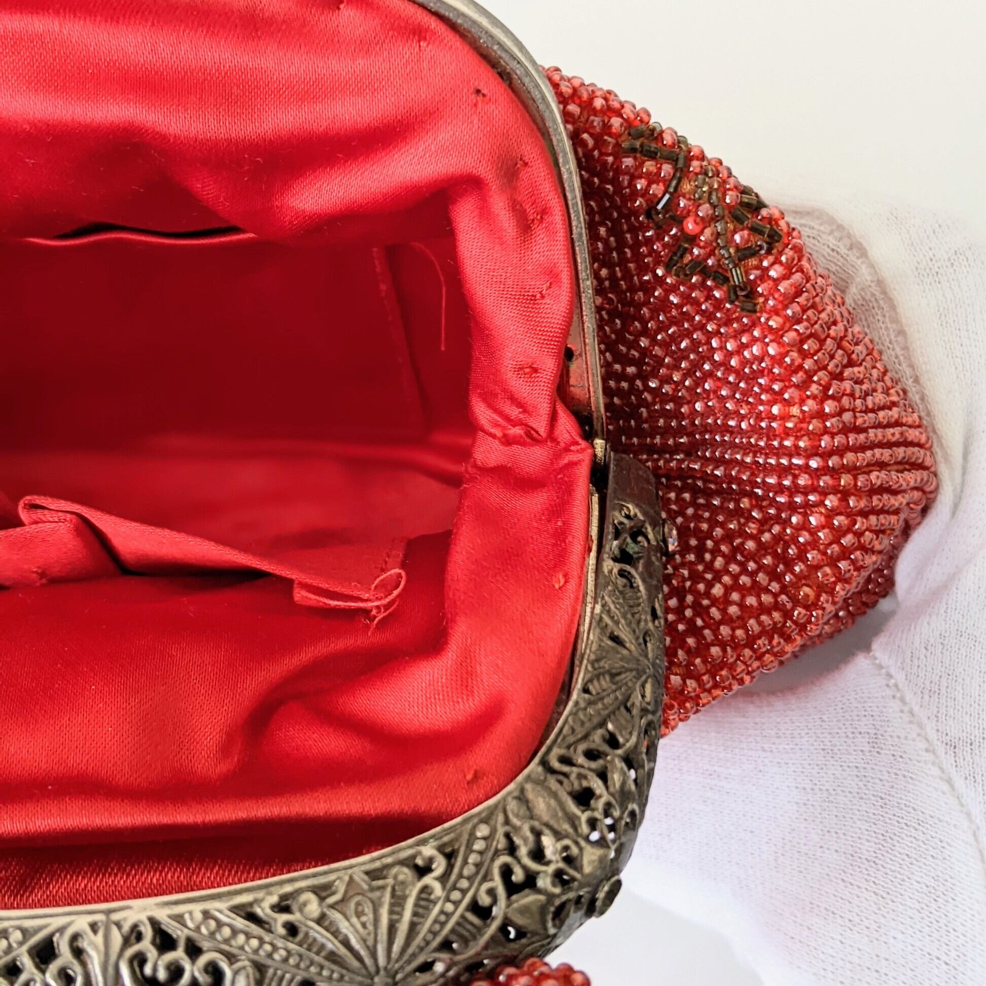 【vintage】 ビーズ刺繍バッグ 古い洋館の女主人 パーティーバッグ アンティークレッド ブロンズ 昭和レトロ 大正浪漫