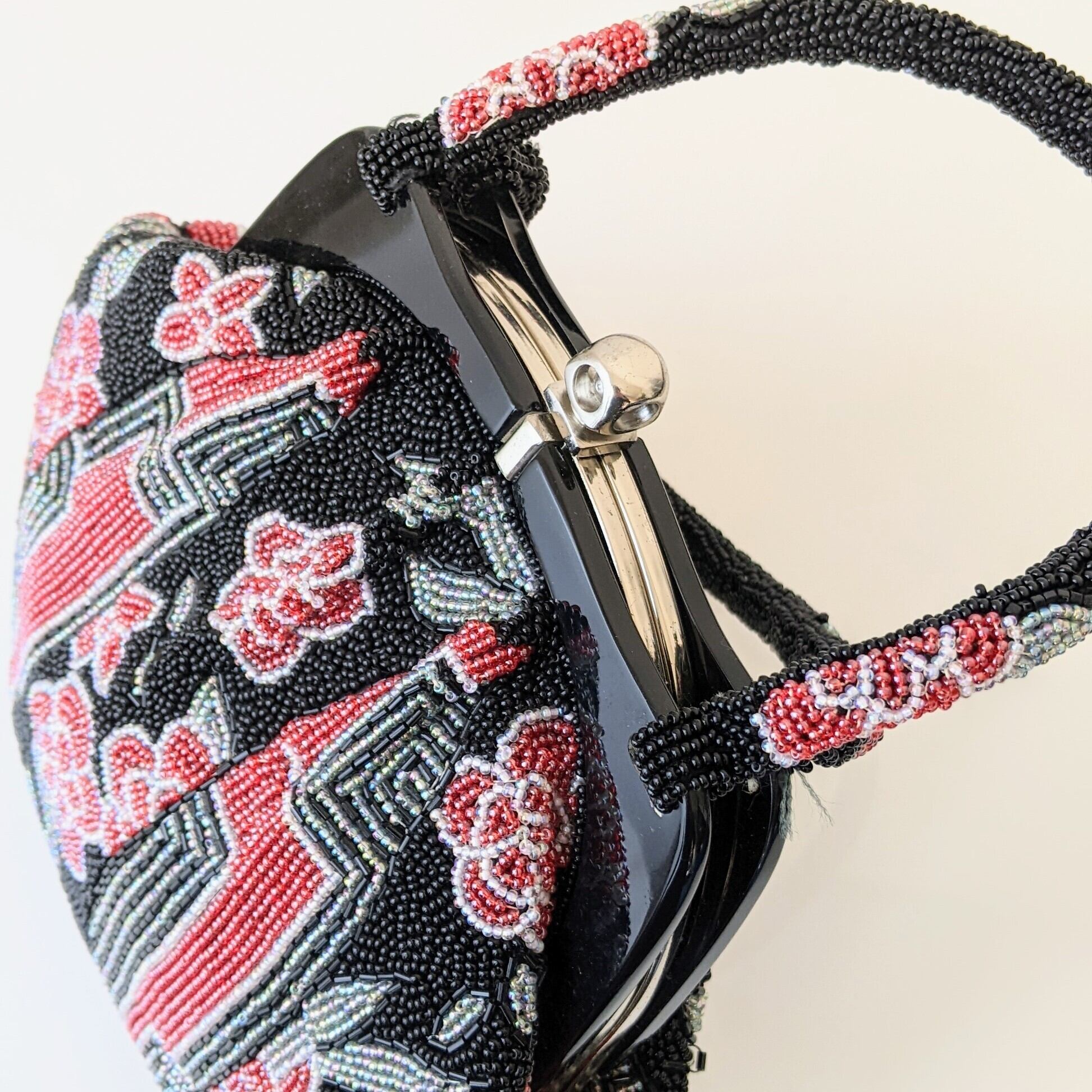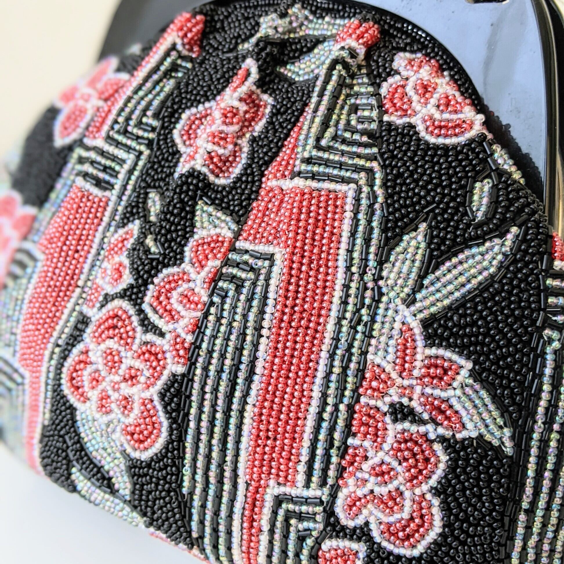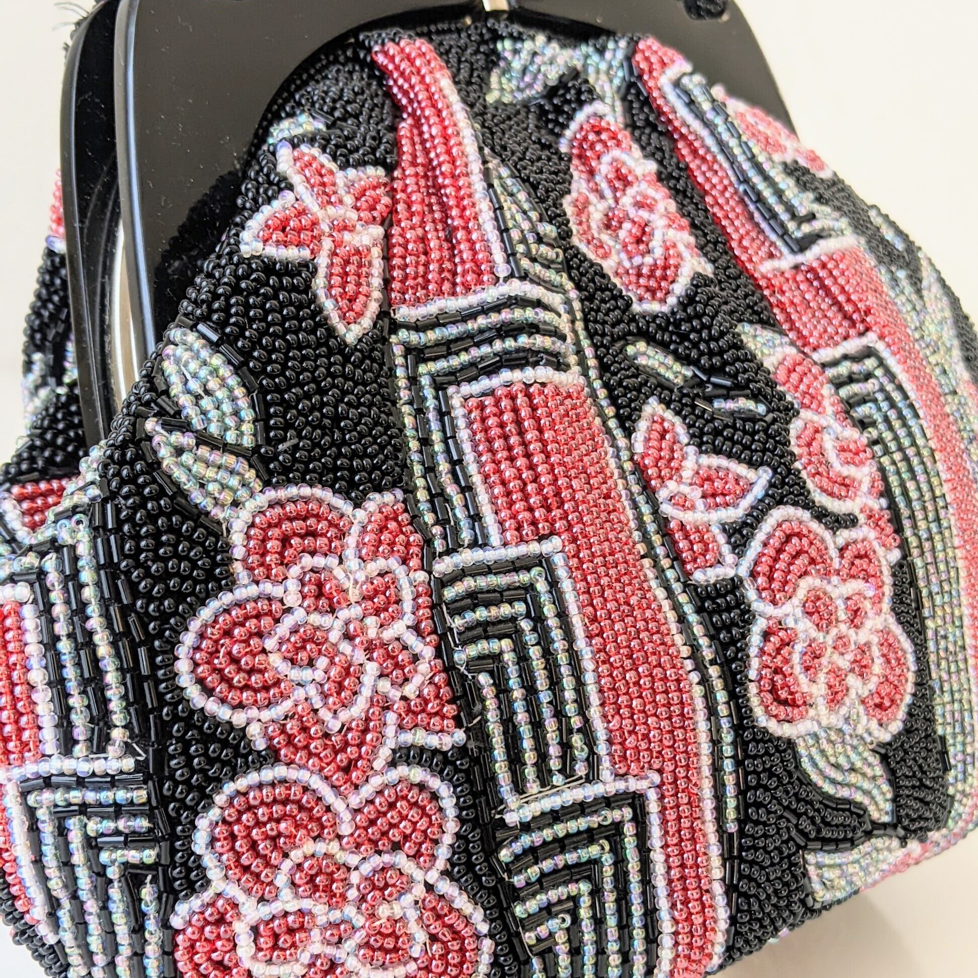 光に反射して美しく輝くヴィンテージビーズバッグ。