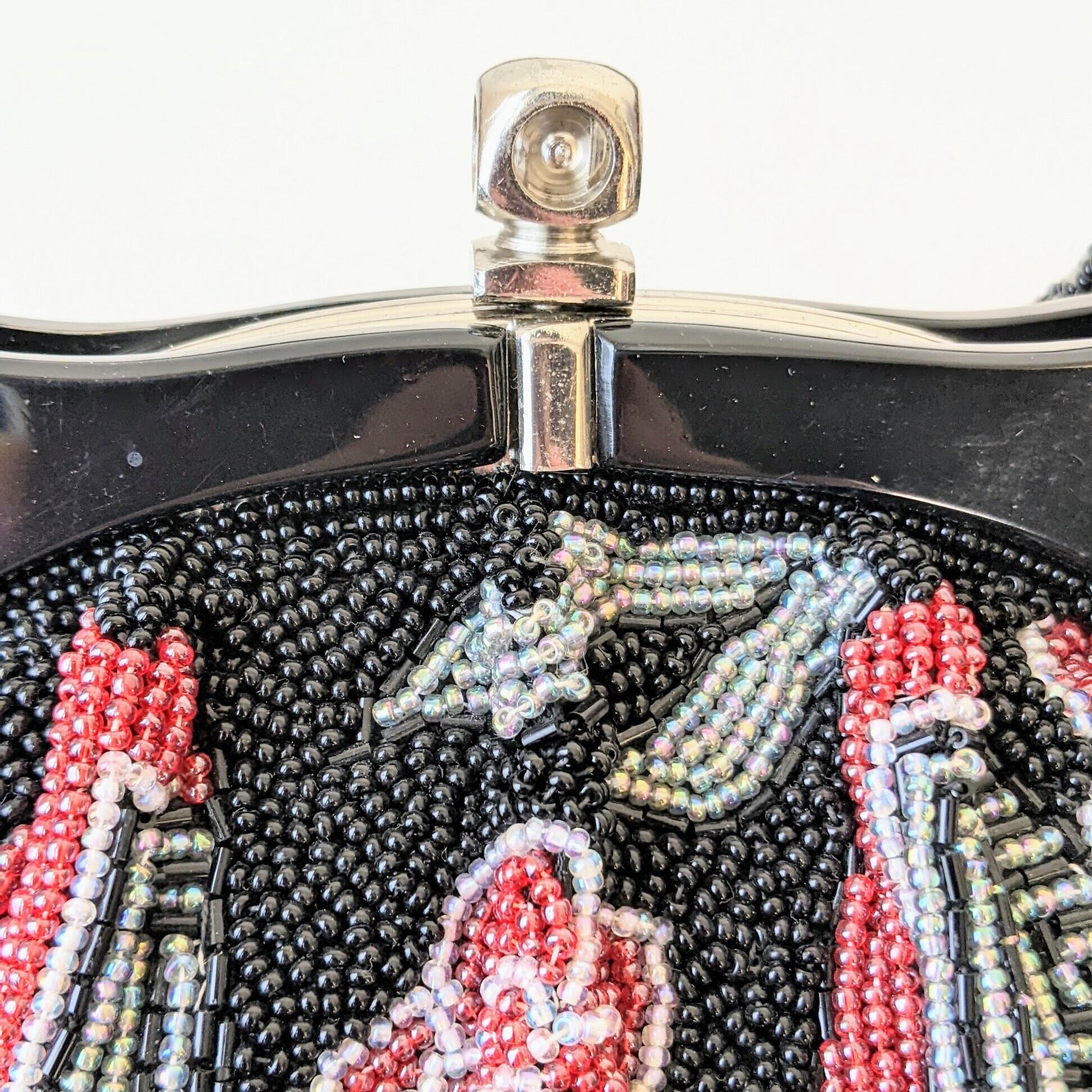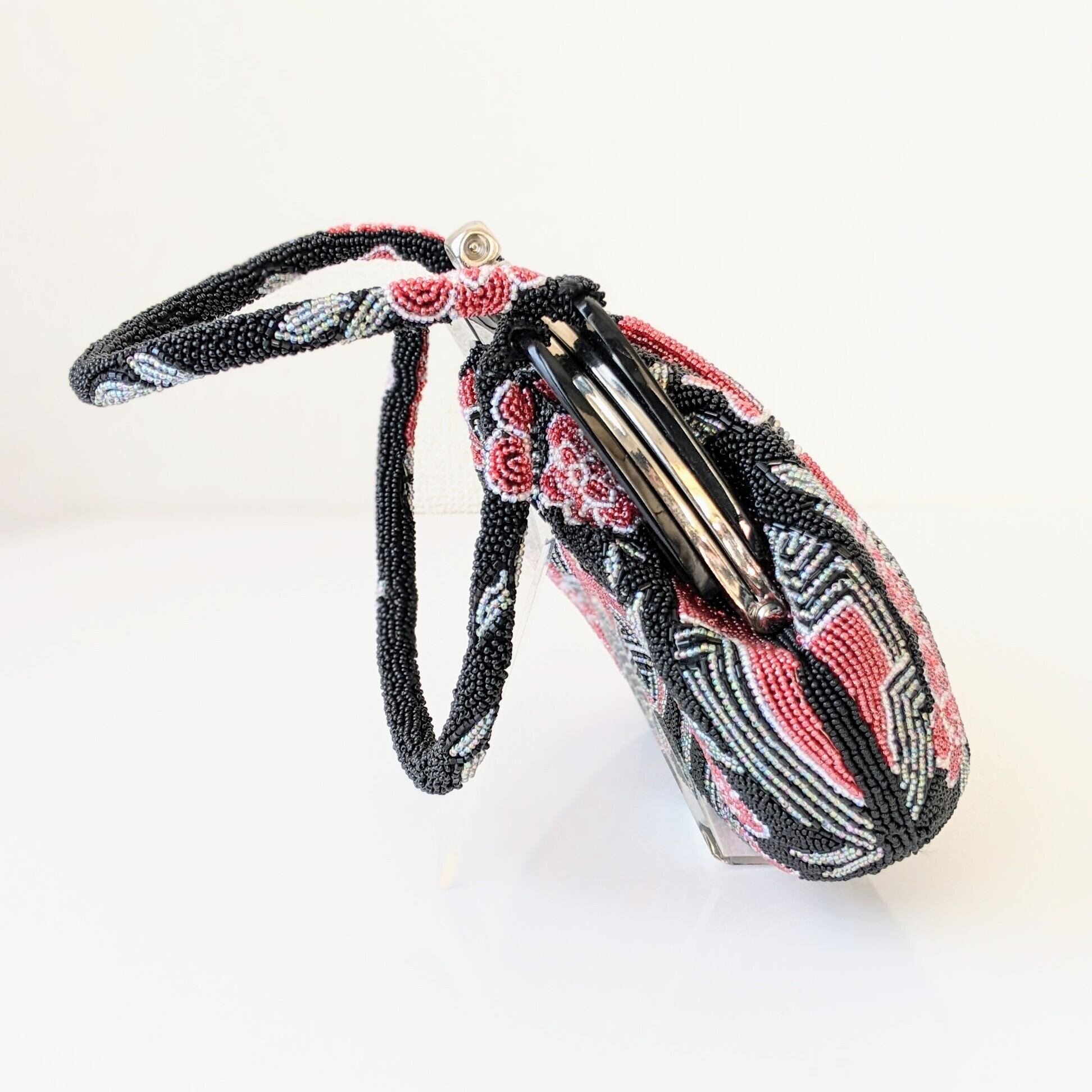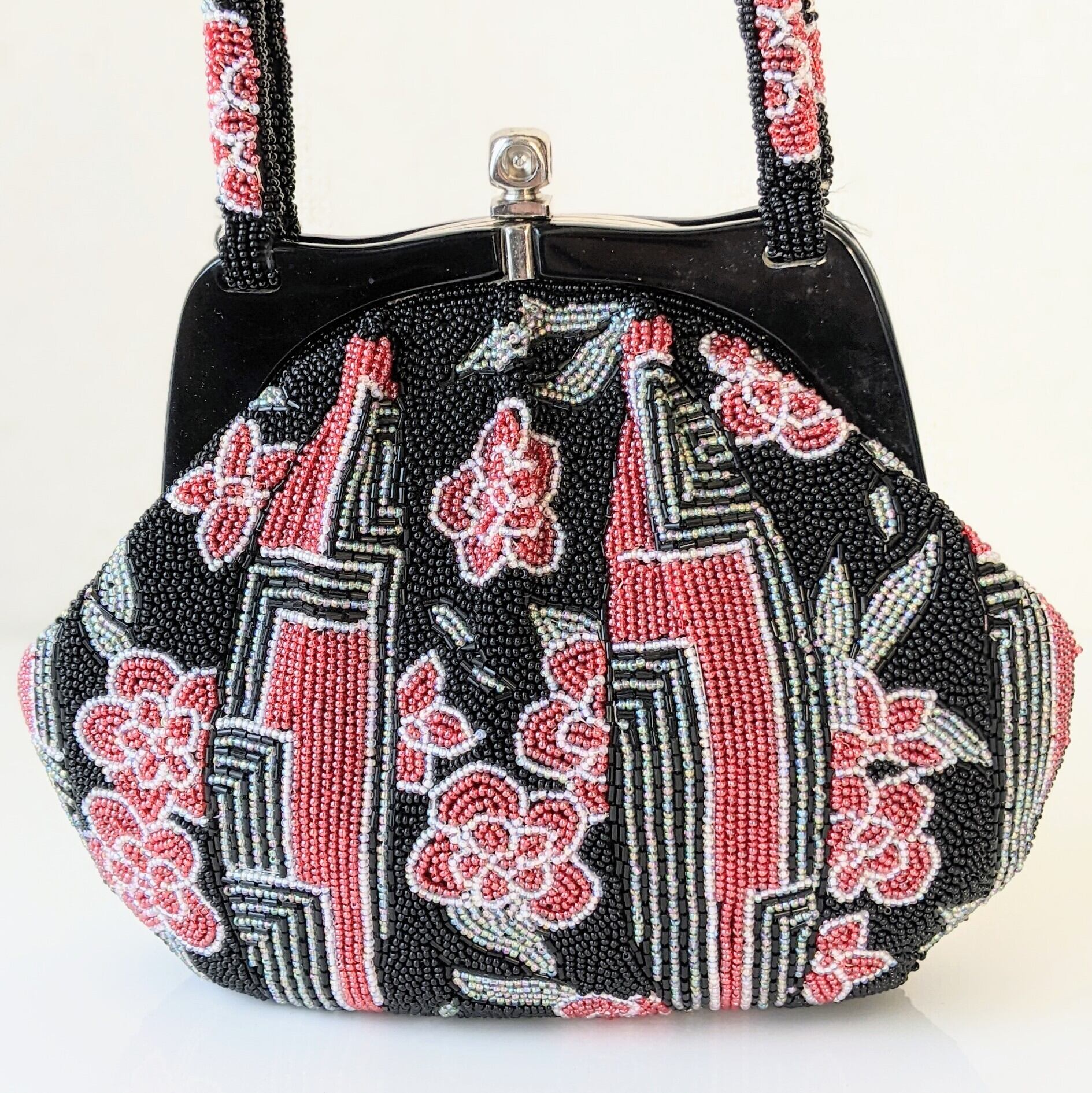 光に反射して美しく輝くヴィンテージビーズバッグ。