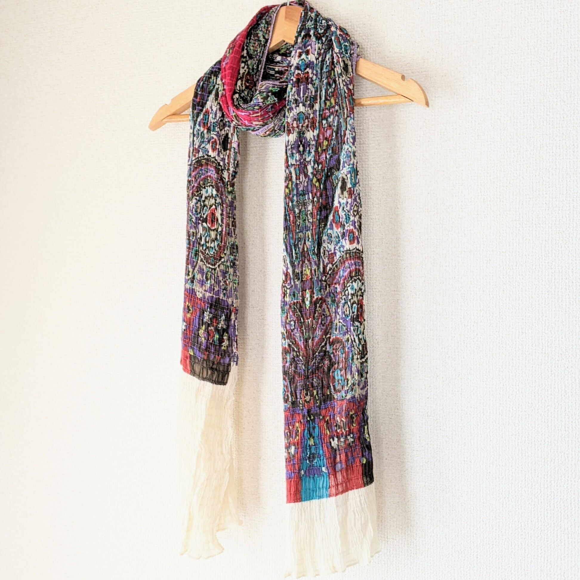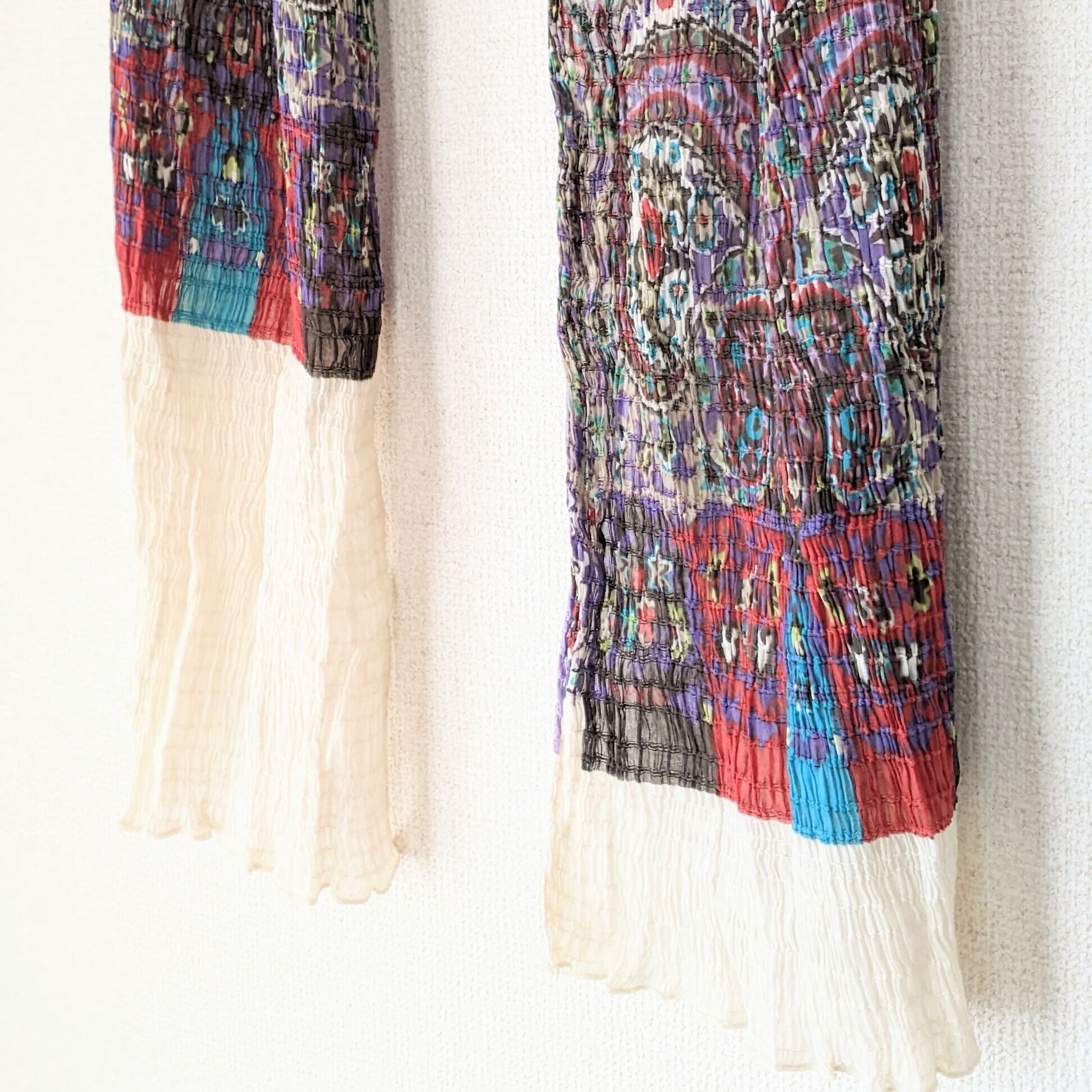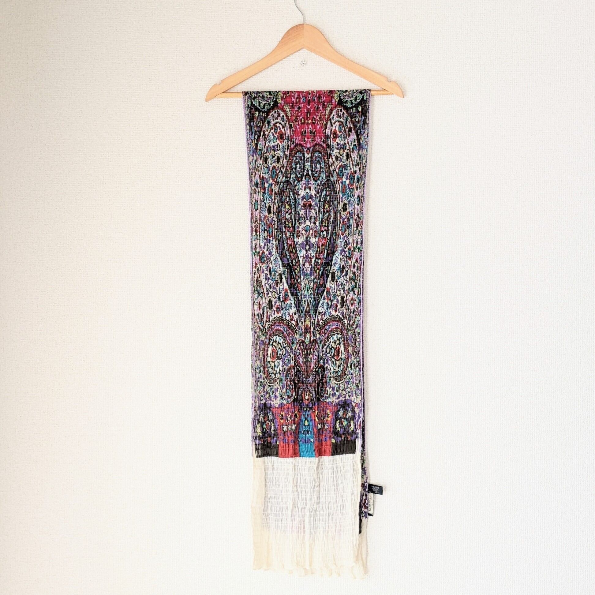 ETRO コットン/シルク スリムロングストール シャーリング加工 マルチカラー Italy製 スカーフ ショール