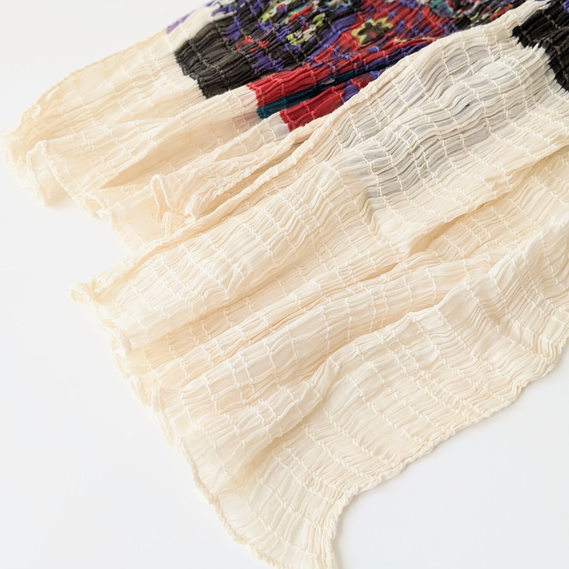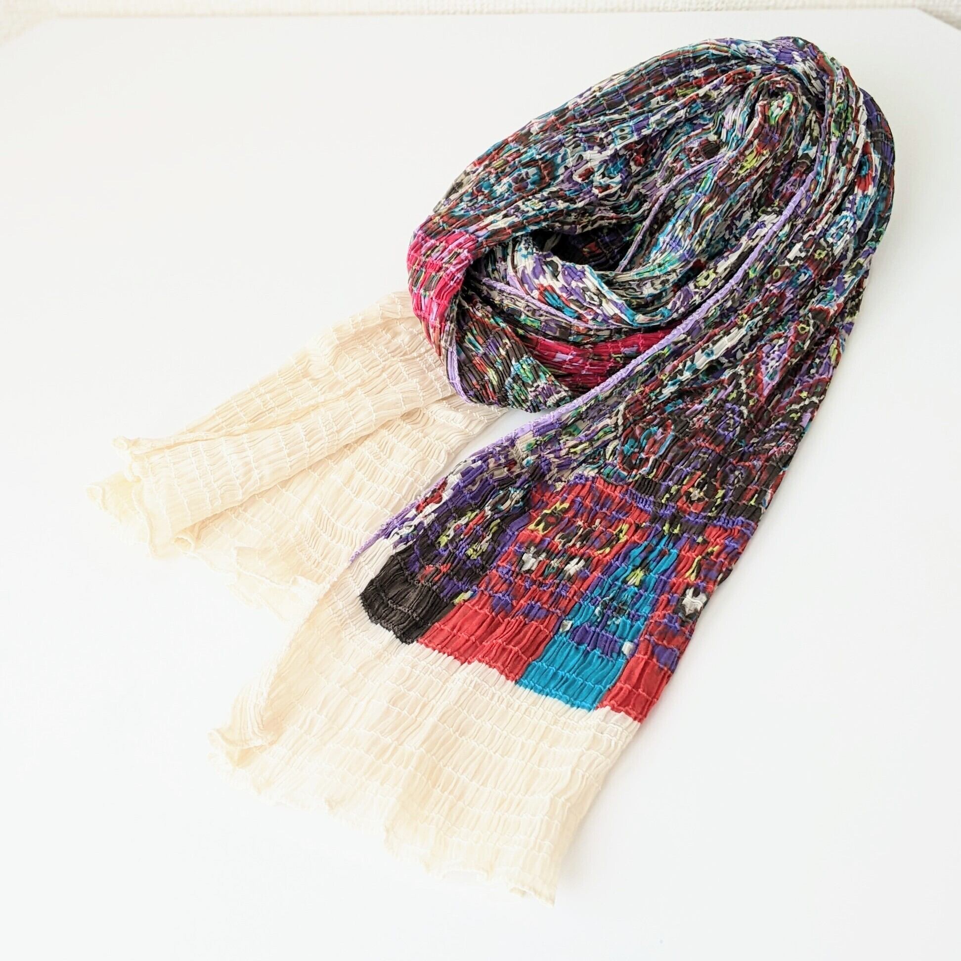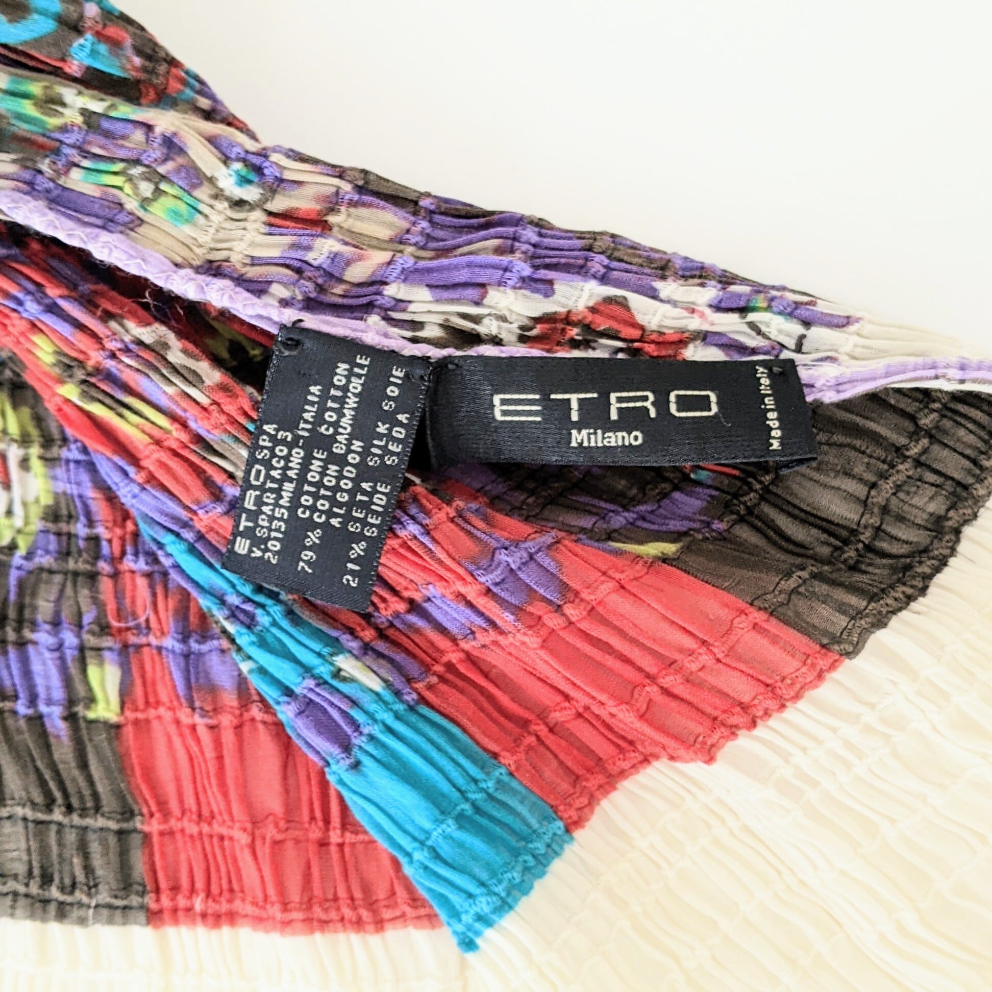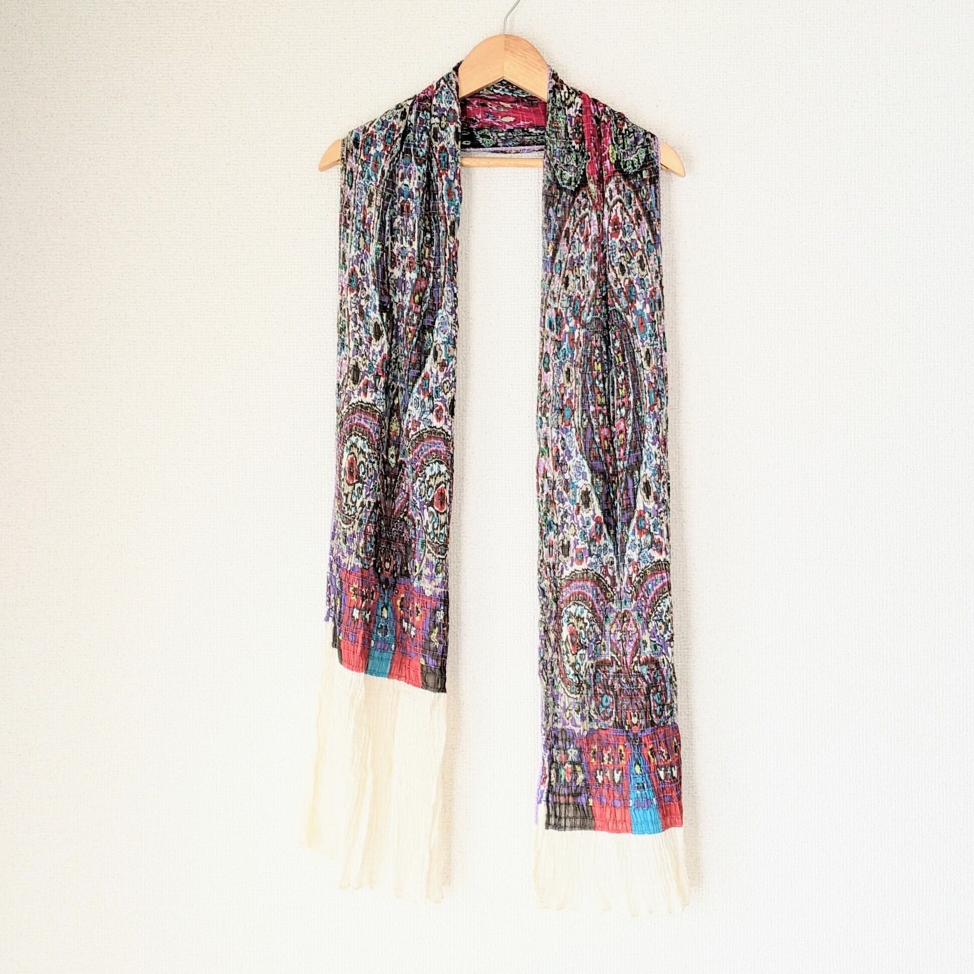 ETRO コットン/シルク スリムロングストール シャーリング加工 マルチカラー Italy製 スカーフ ショール
