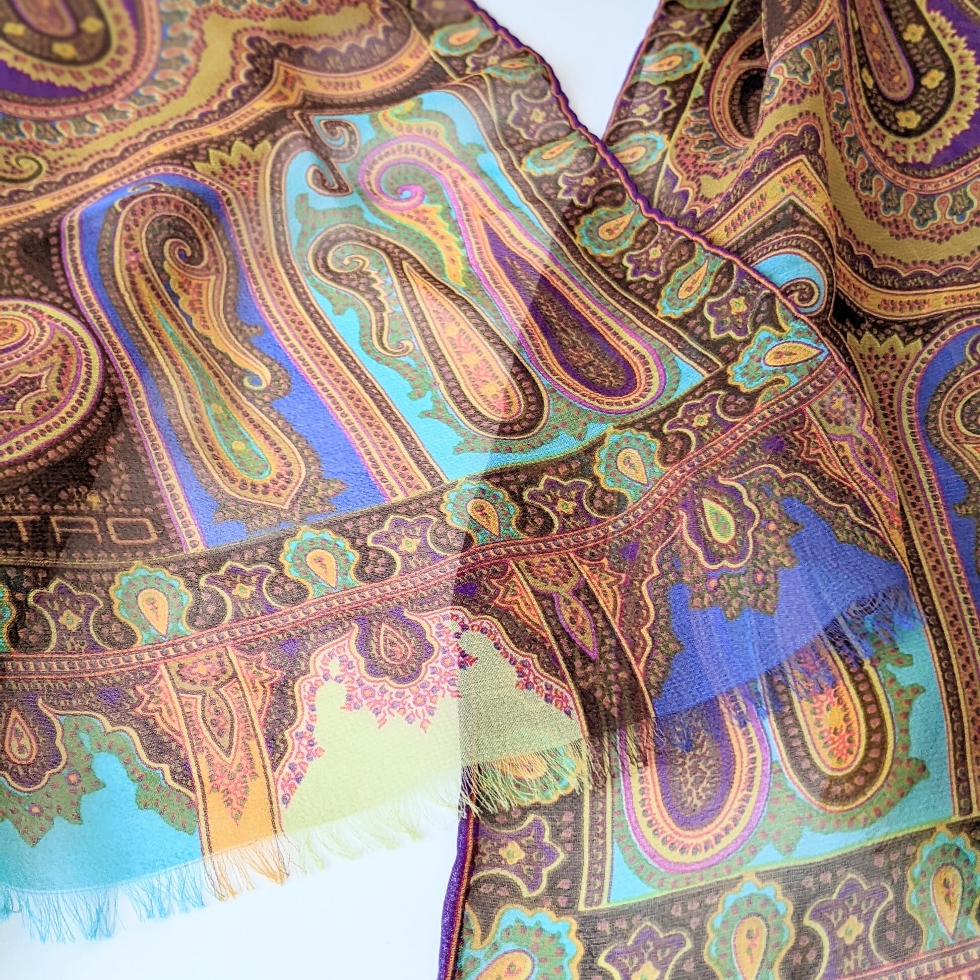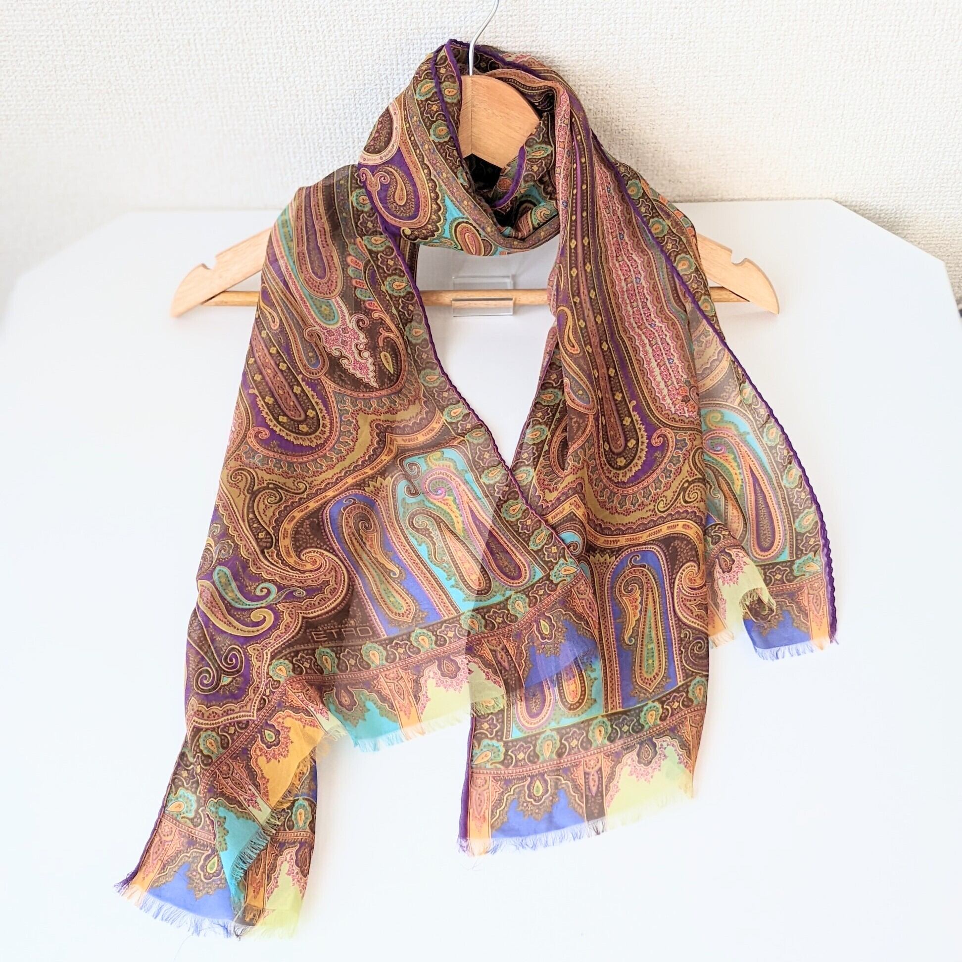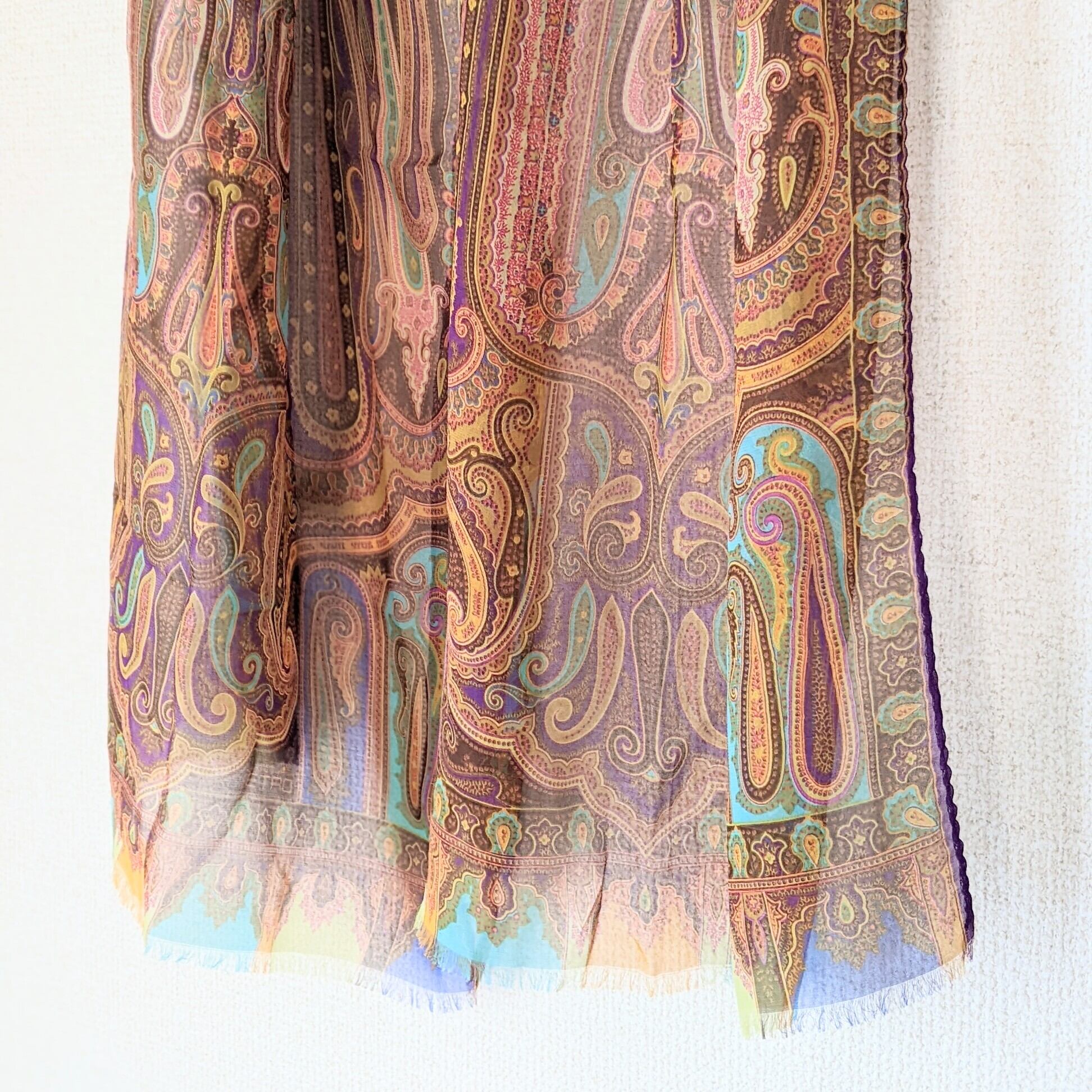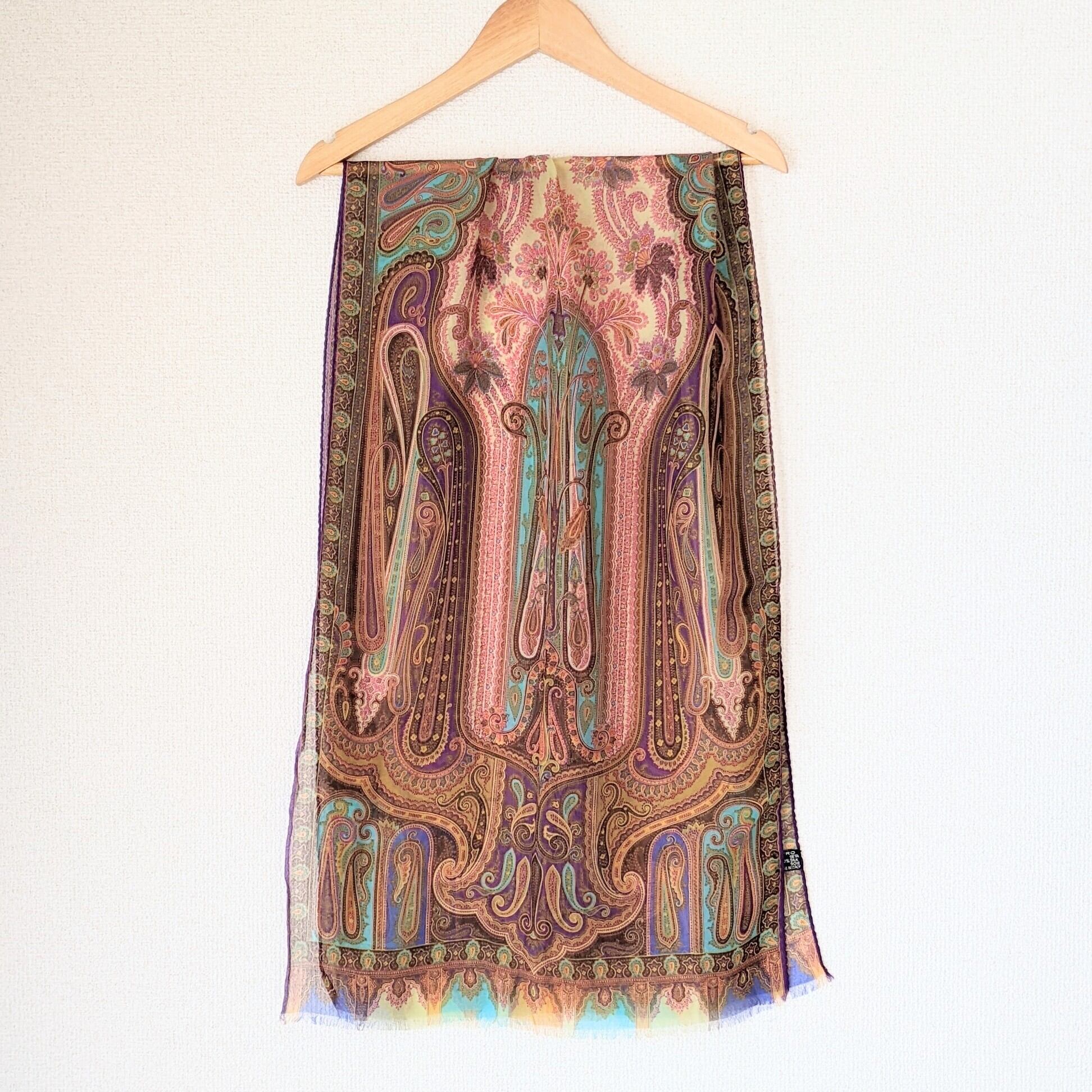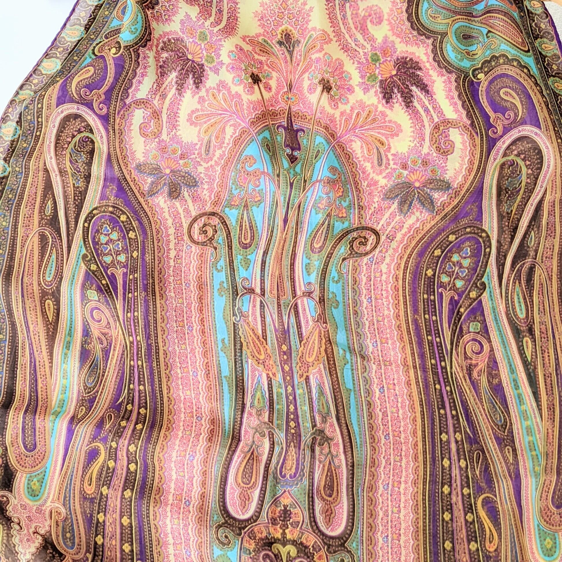 ETRO シルク100% ストール バロック柄 マルチカラー Italy製 スカーフ ショール アラベスク柄 ペイズリー柄