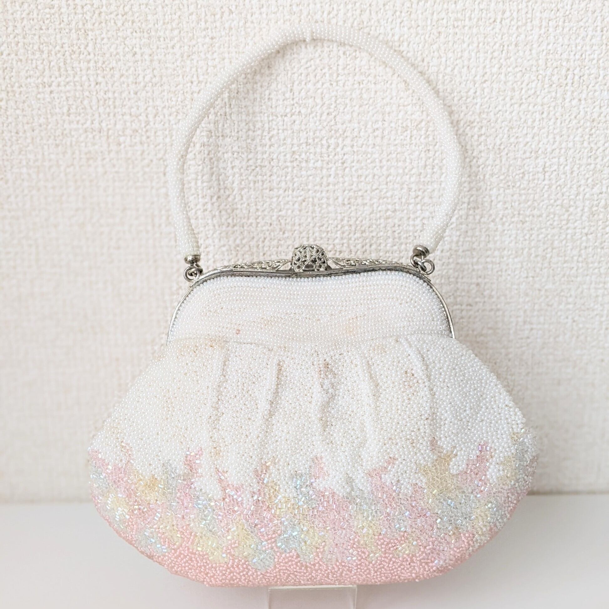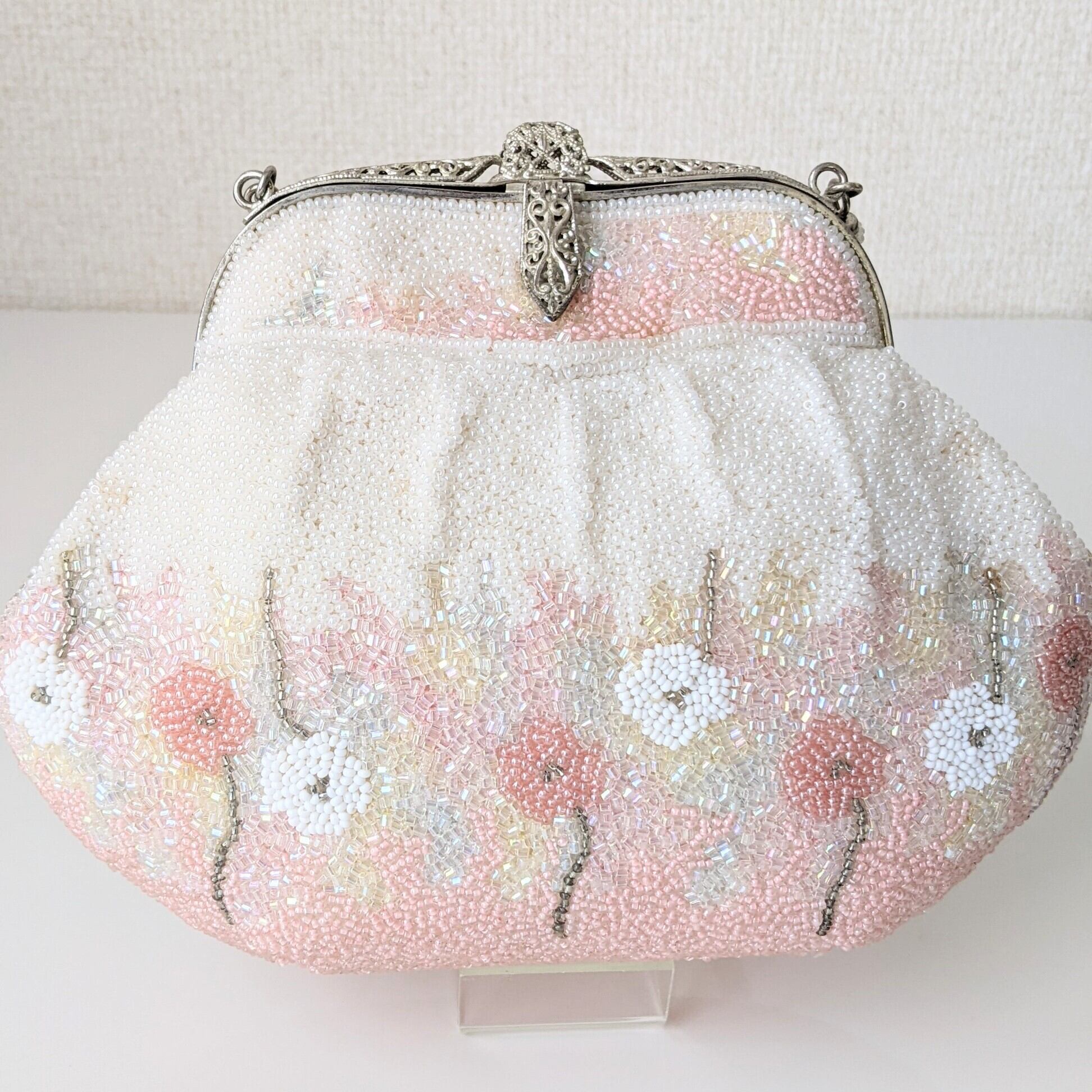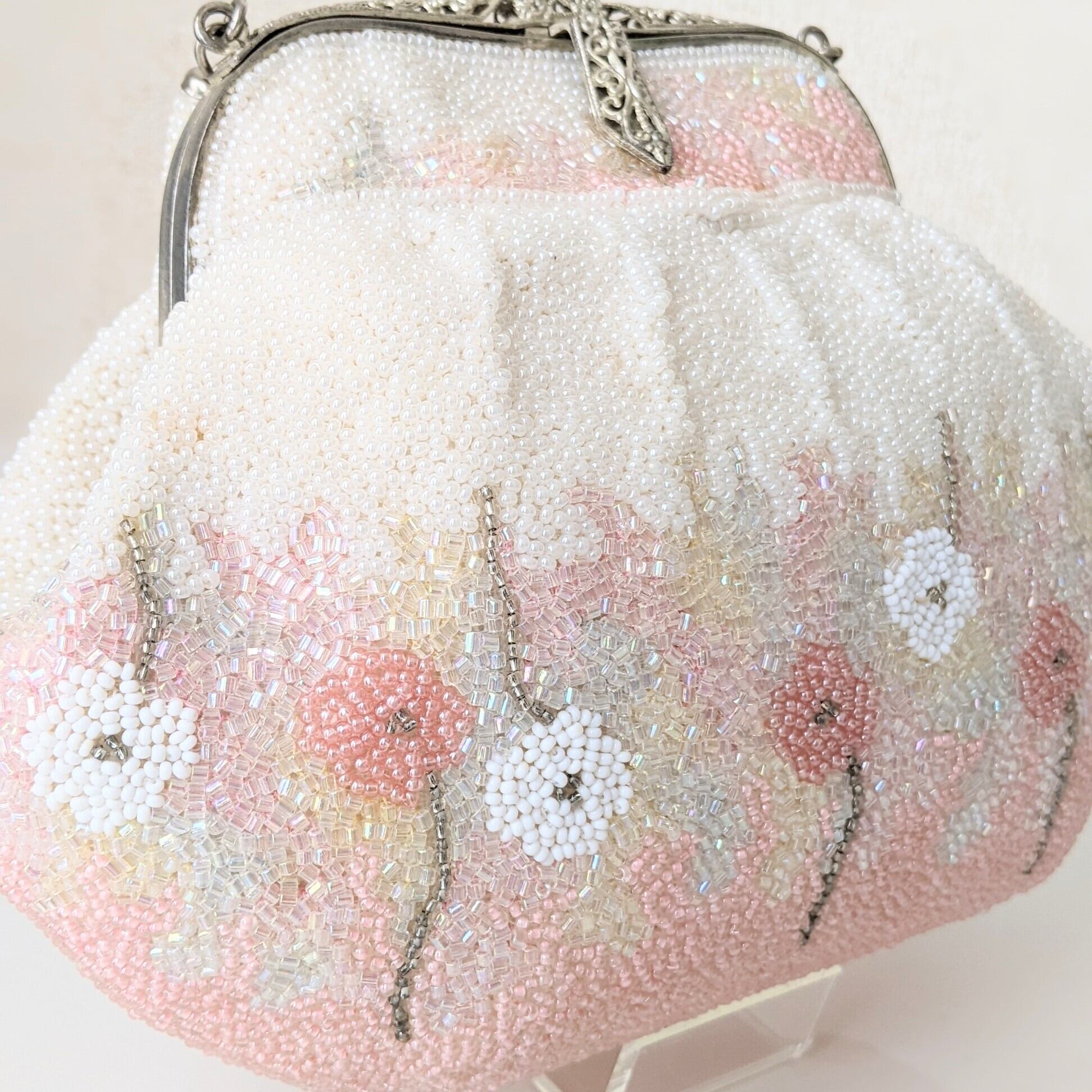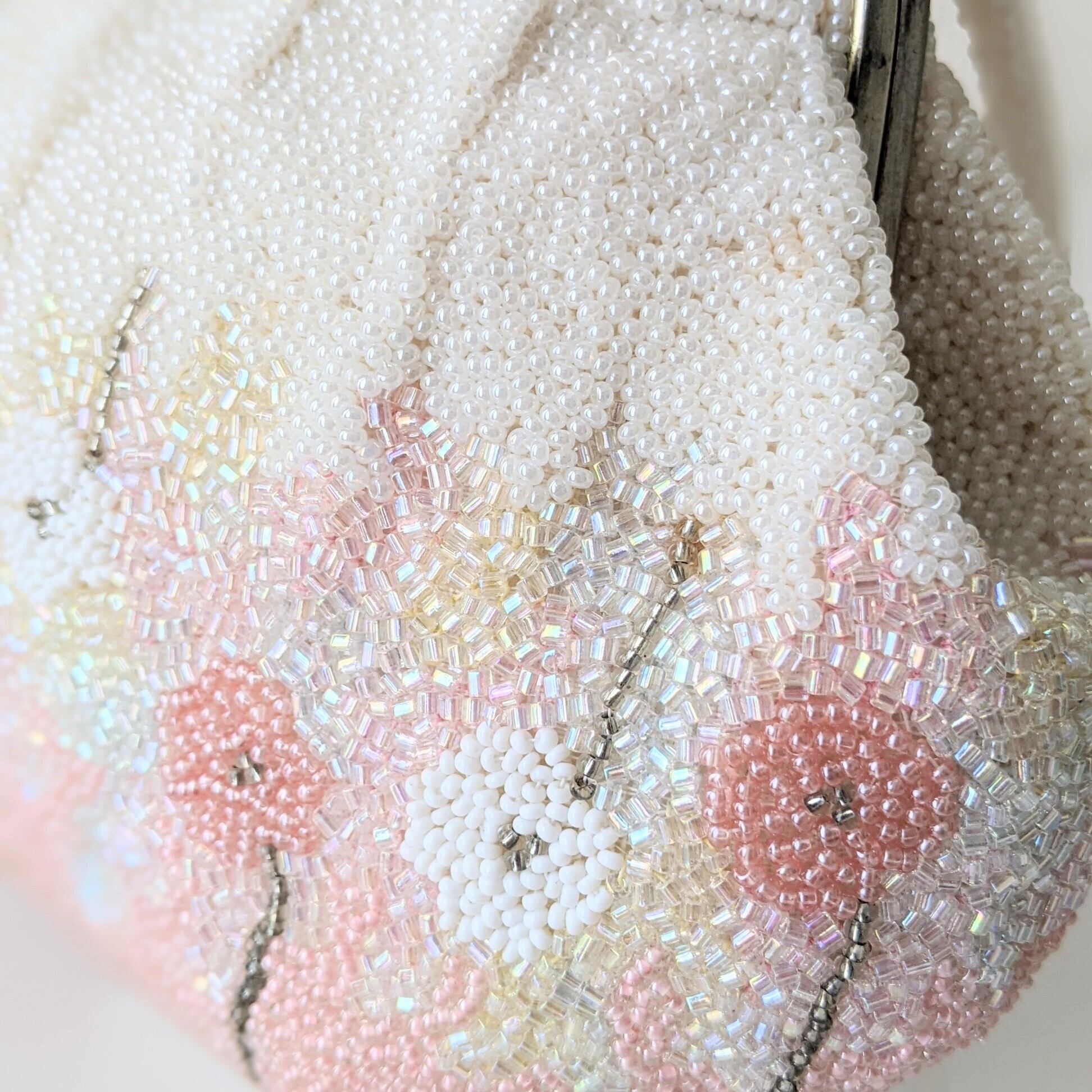 光に反射して美しく輝くヴィンテージビーズバッグ。