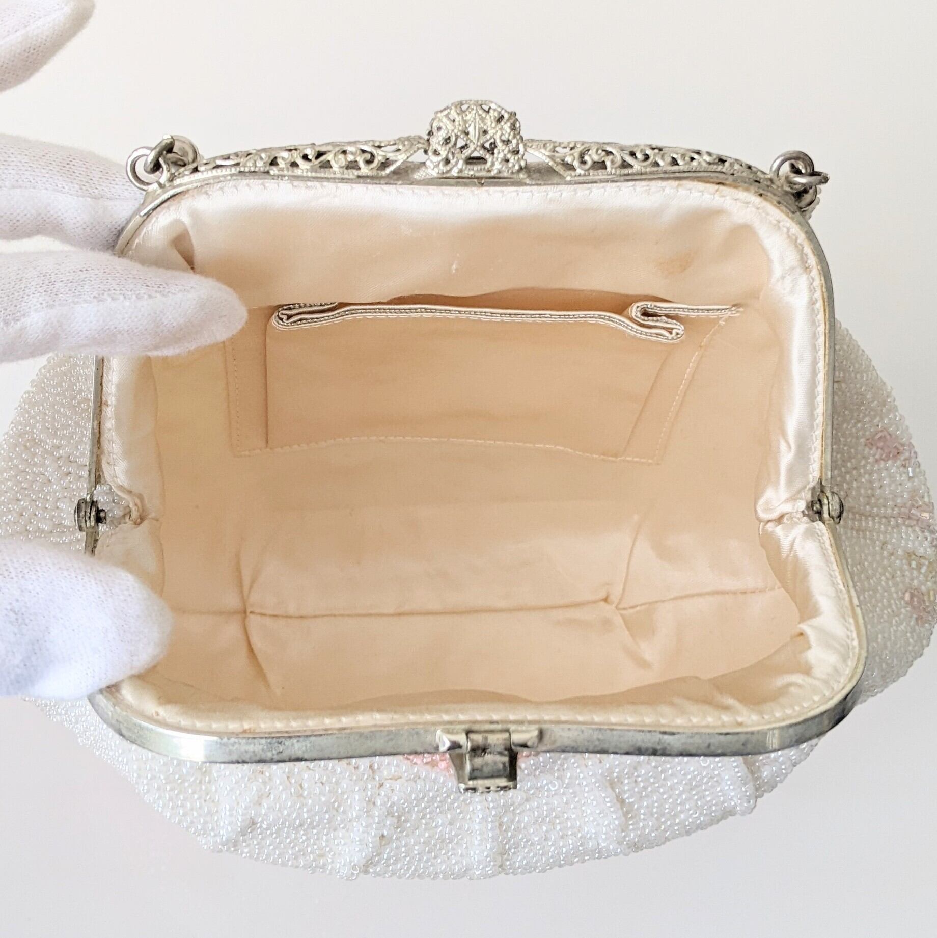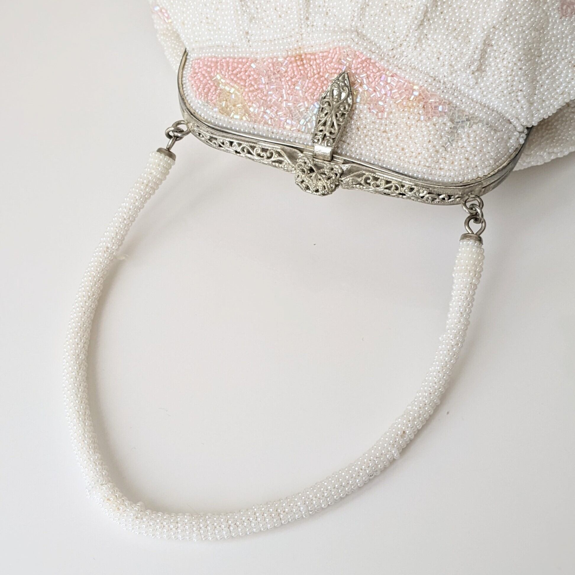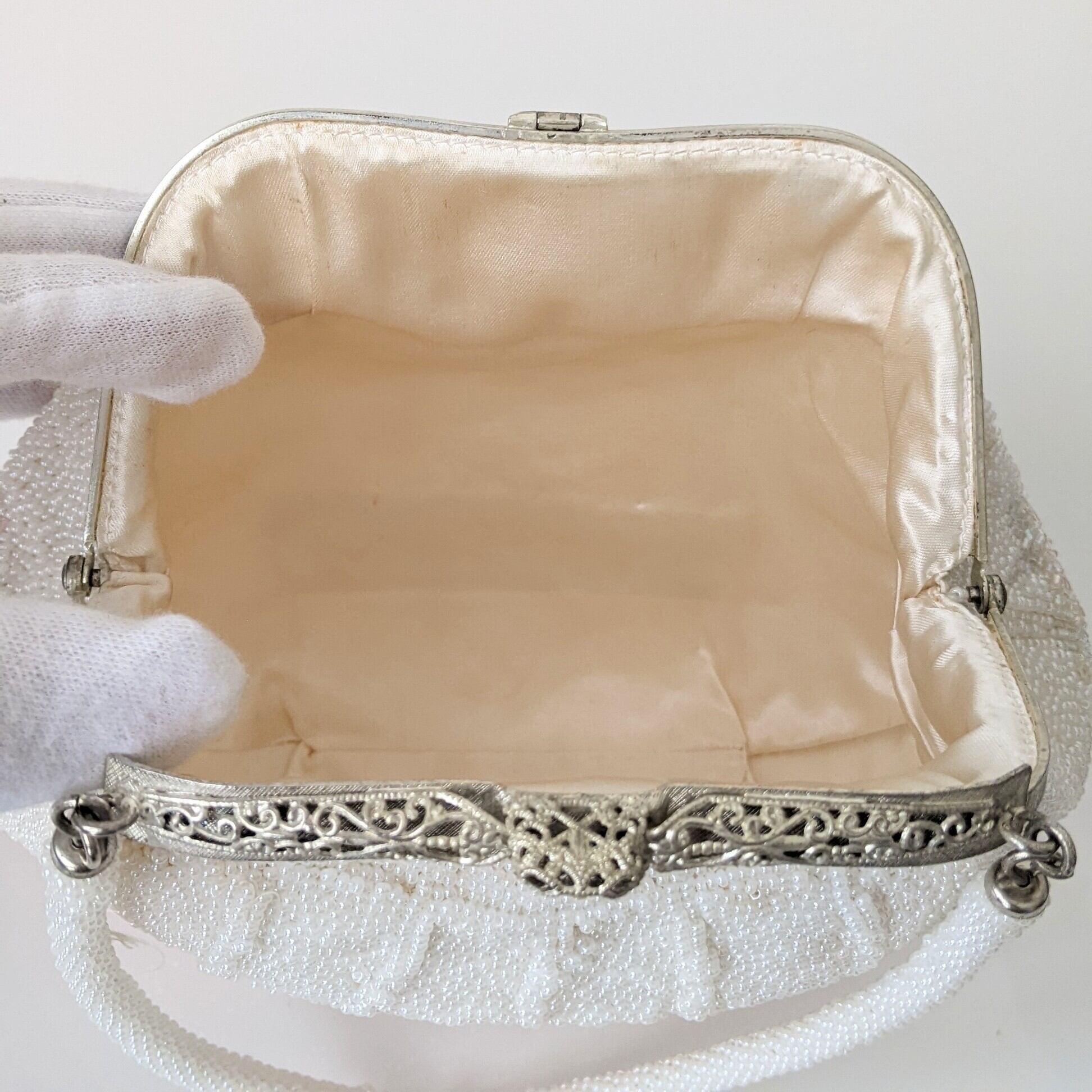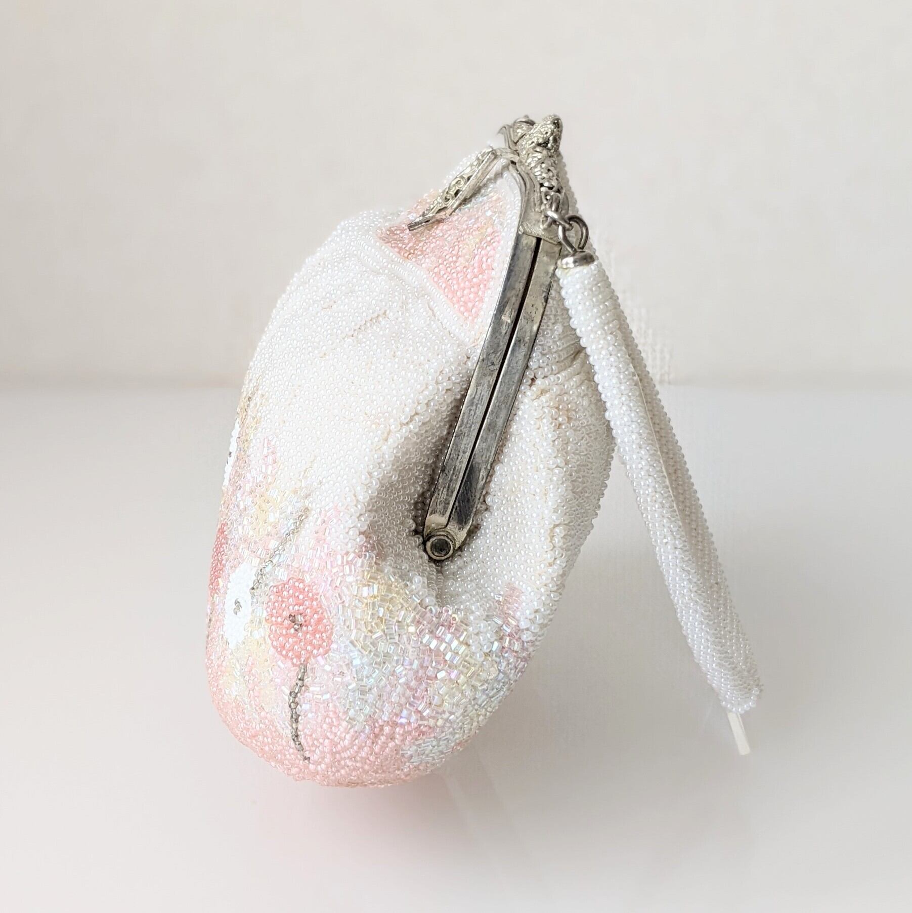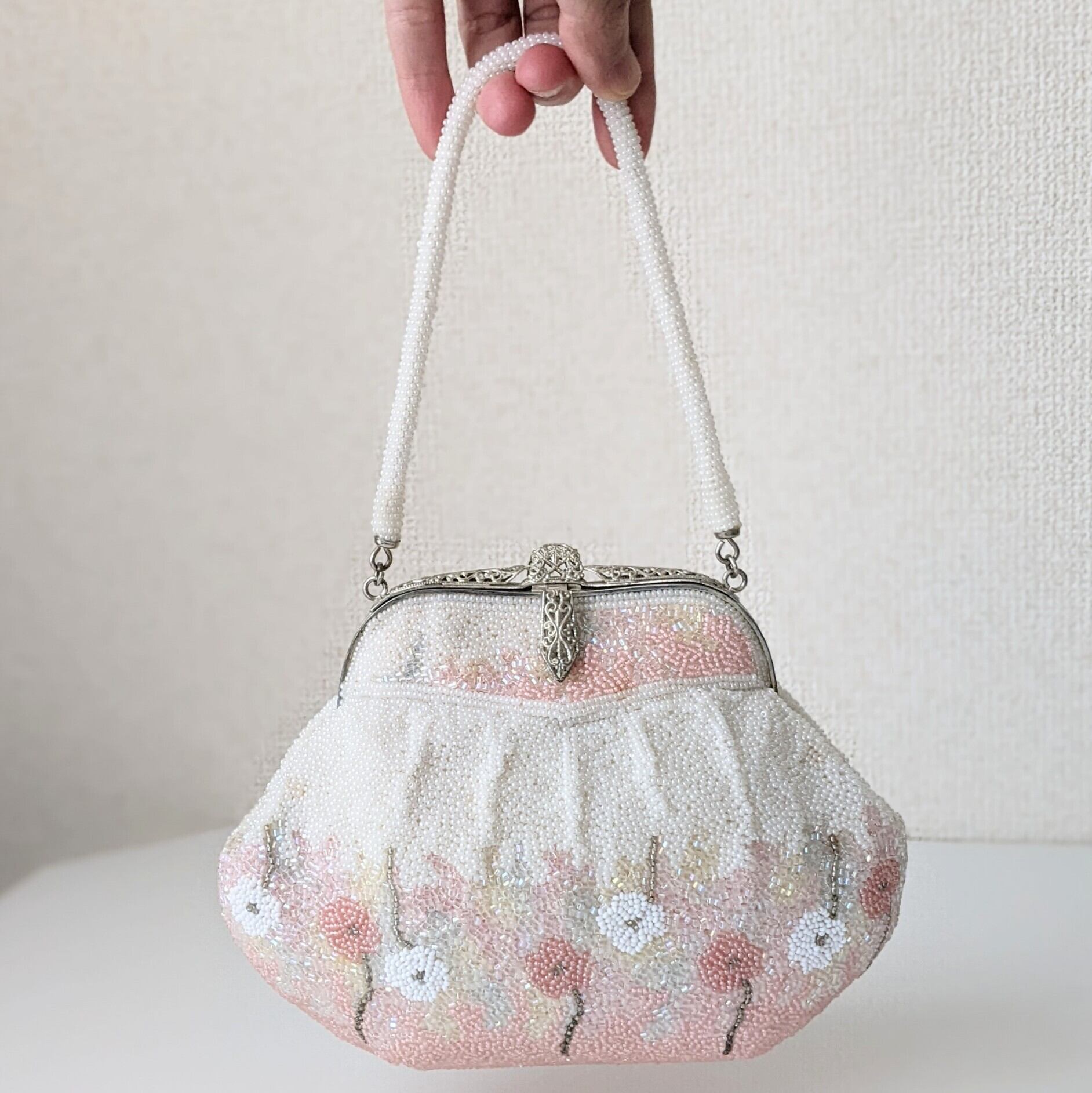 光に反射して美しく輝くヴィンテージビーズバッグ。