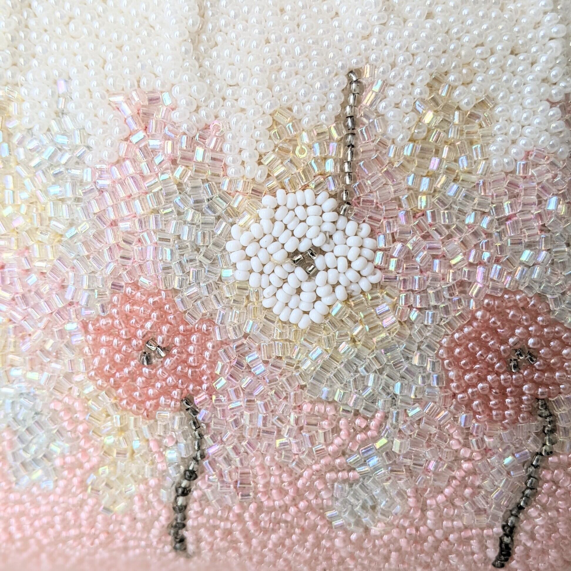一面に咲き誇るポピー畑を見ているような可憐で可愛らしいビーズバッグです。