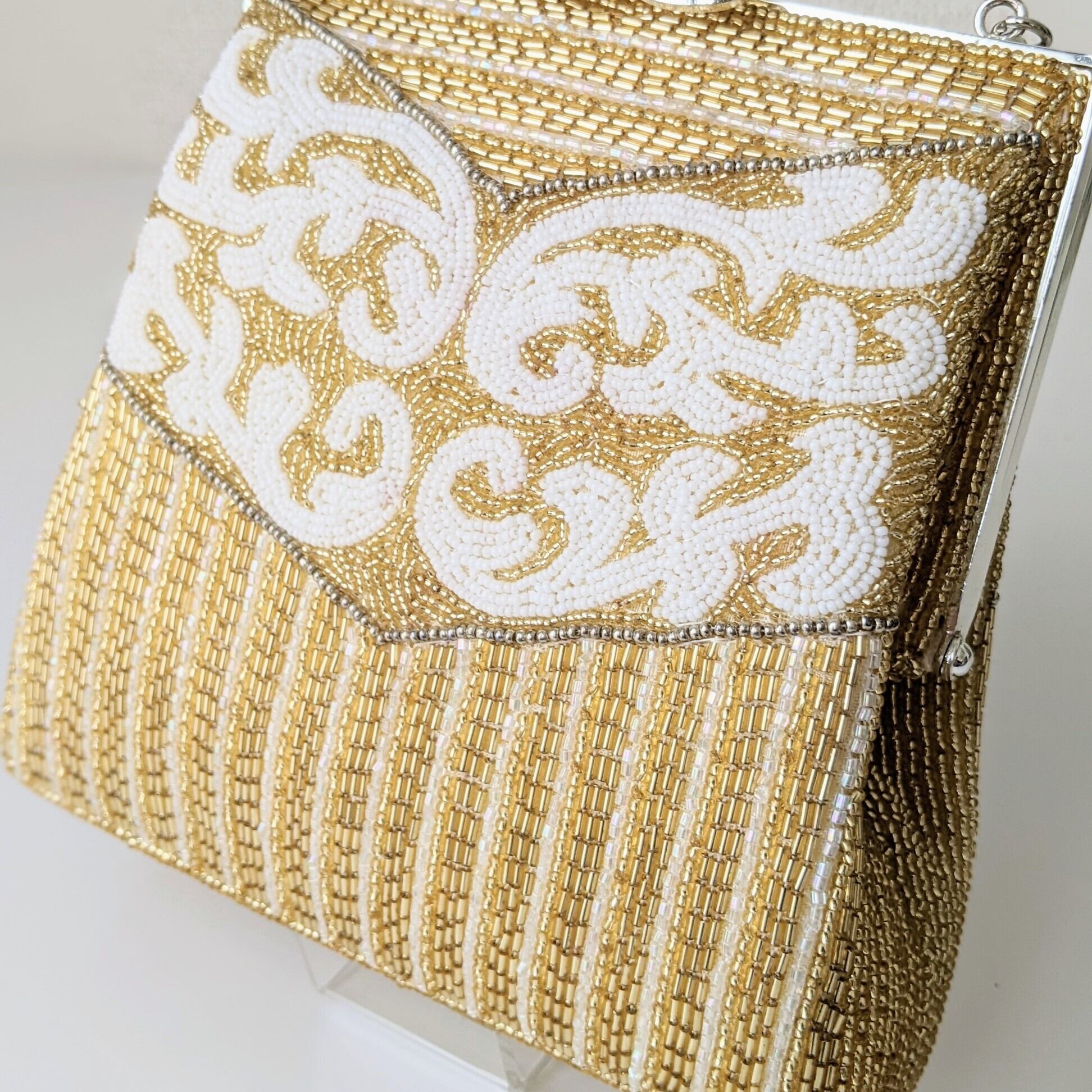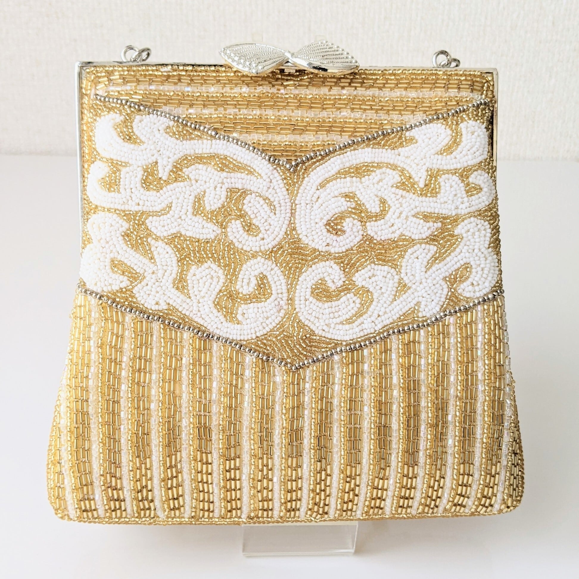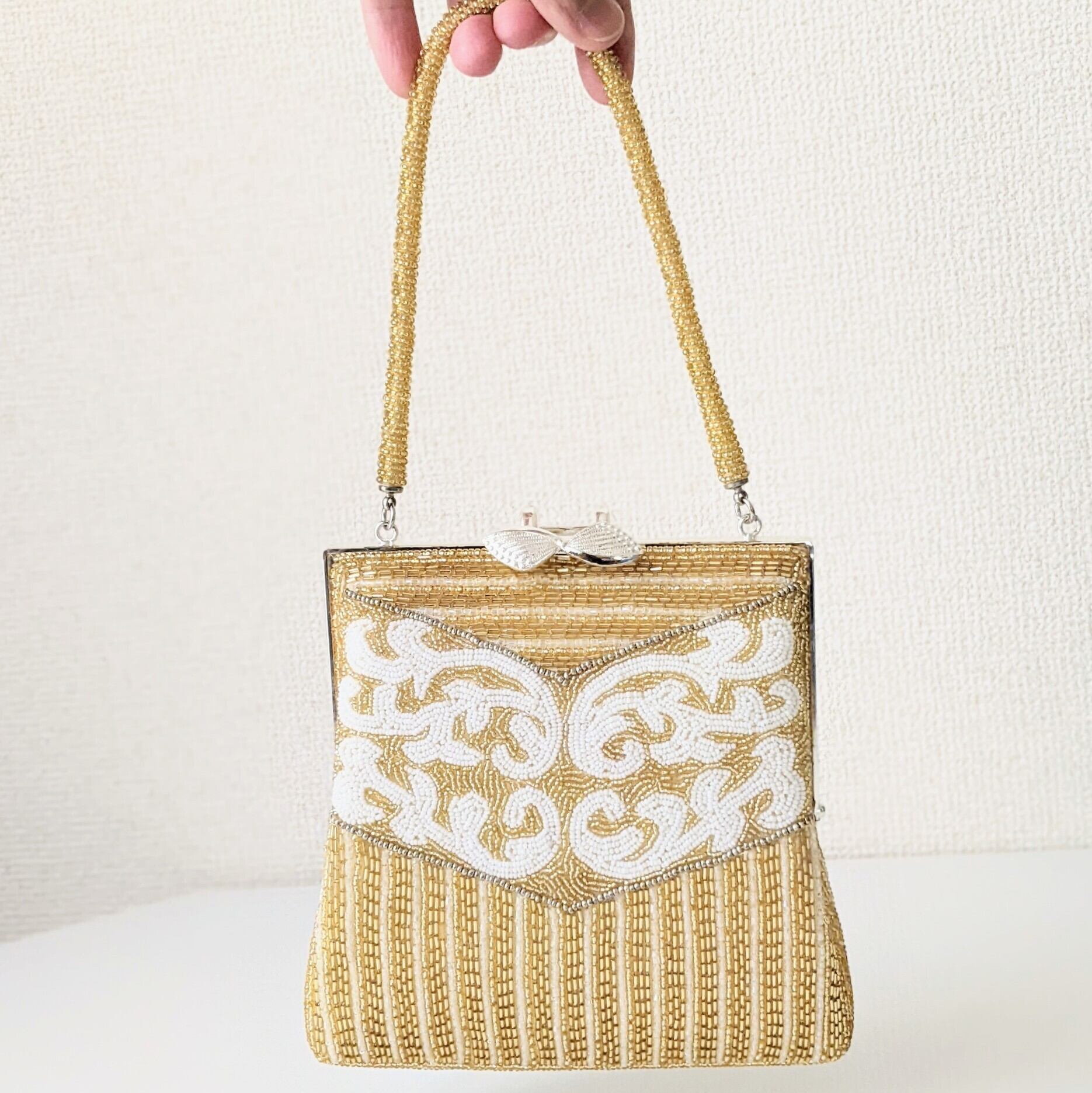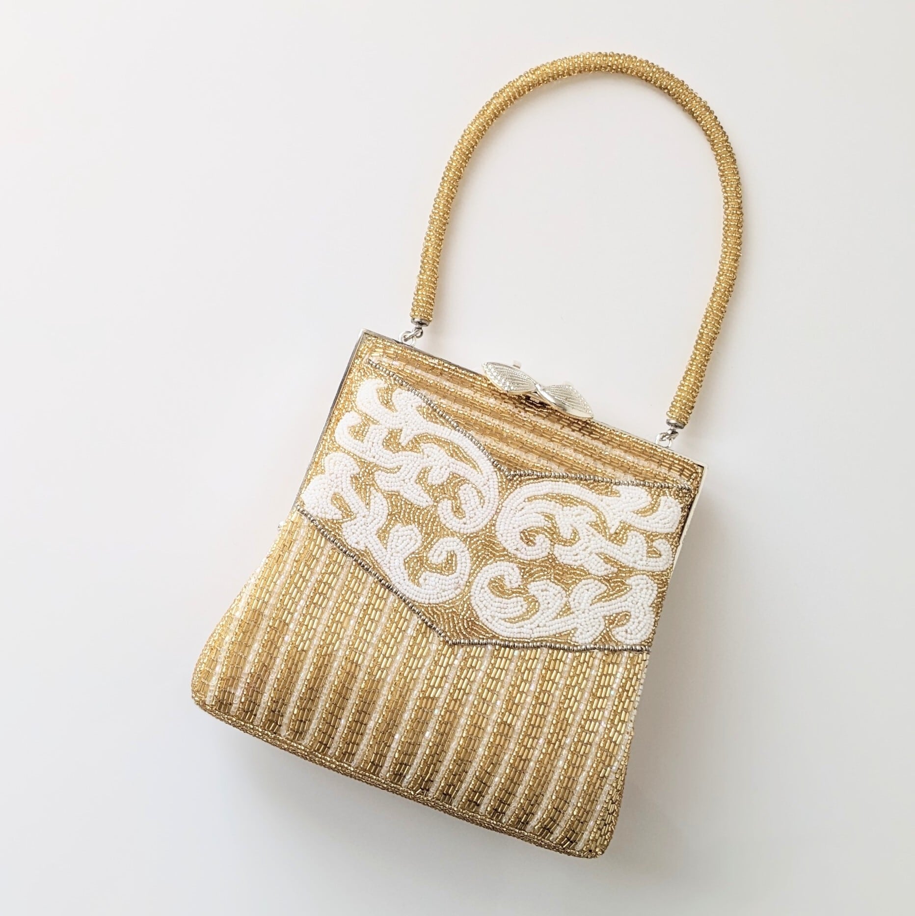 ゴールド×唐草(アラベスク)模様の粋で小ぶりなビーズバッグです。