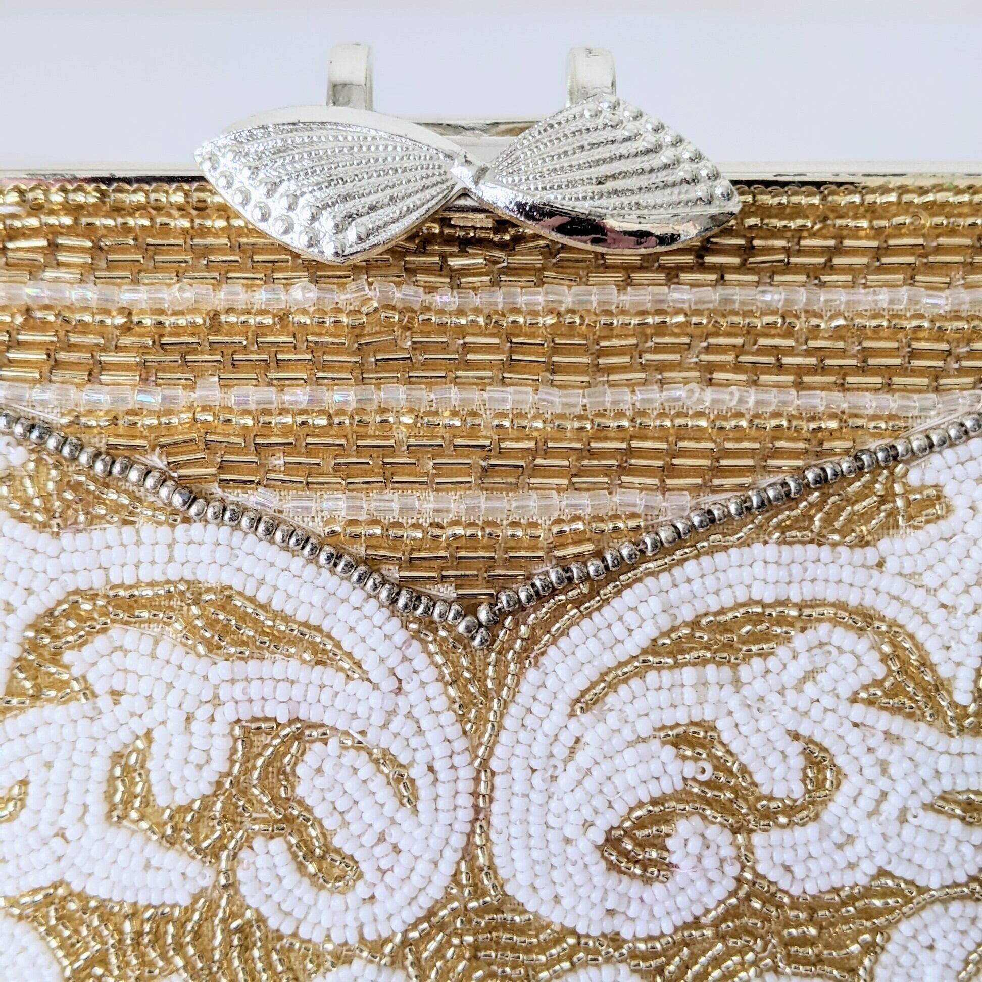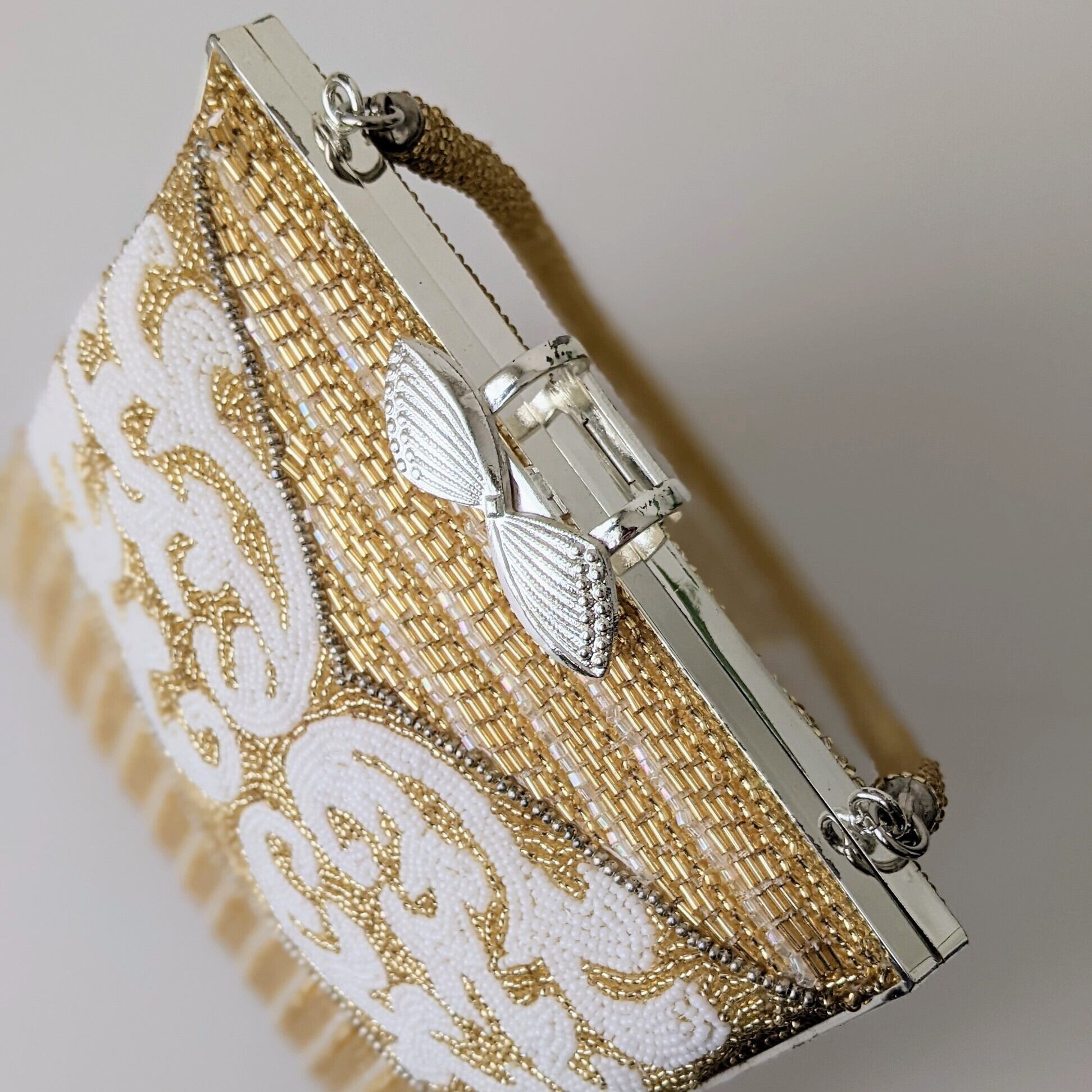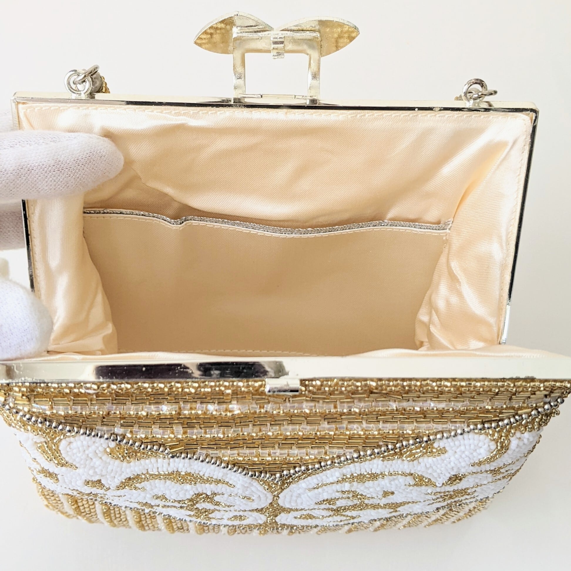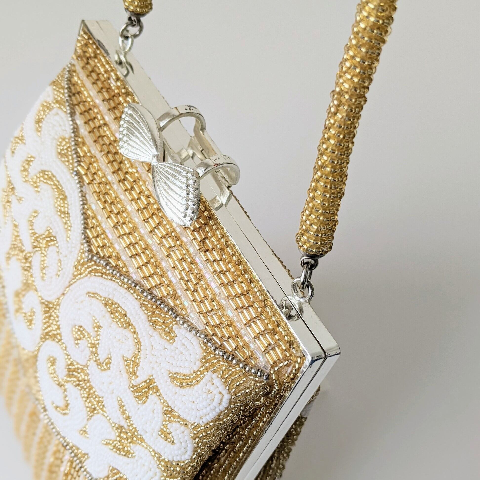 ゴールド×唐草(アラベスク)模様の粋で小ぶりなビーズバッグです。