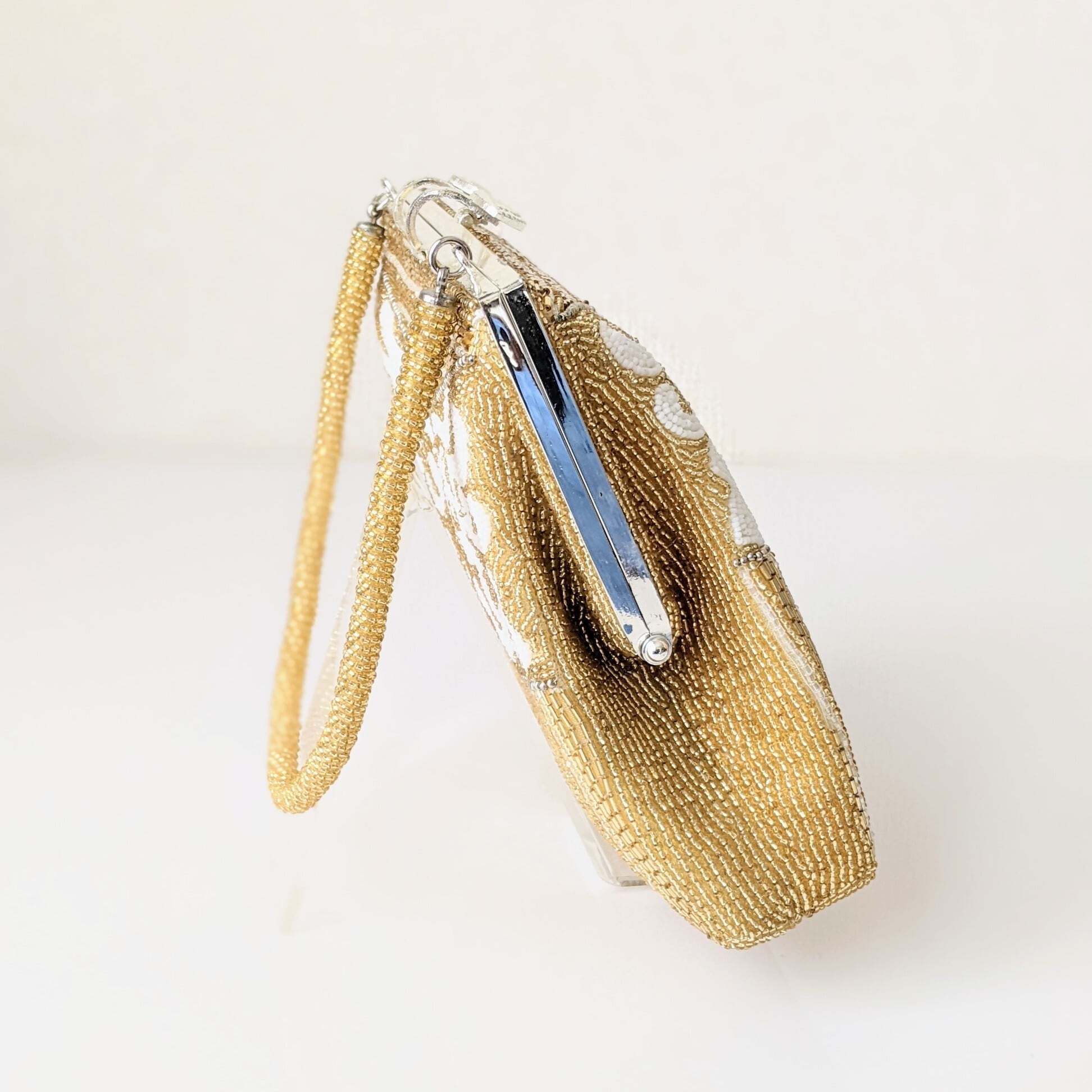 当店で販売しているビーズバッグの中では一番小さなサイズとなりますが、輝くゴールドの存在感は大きいです。