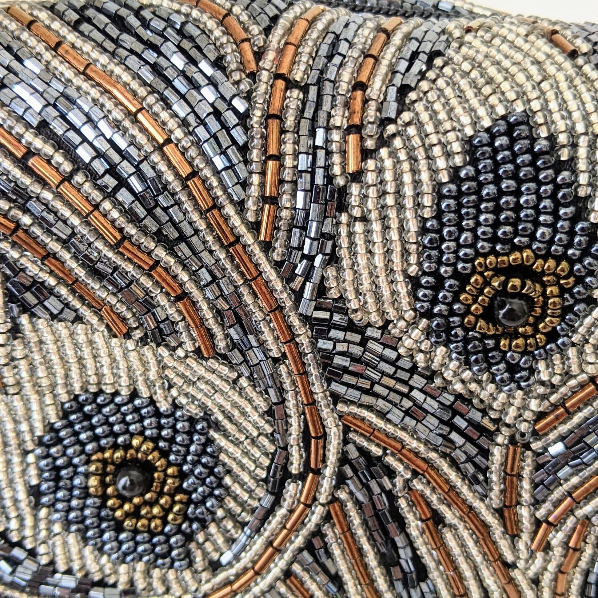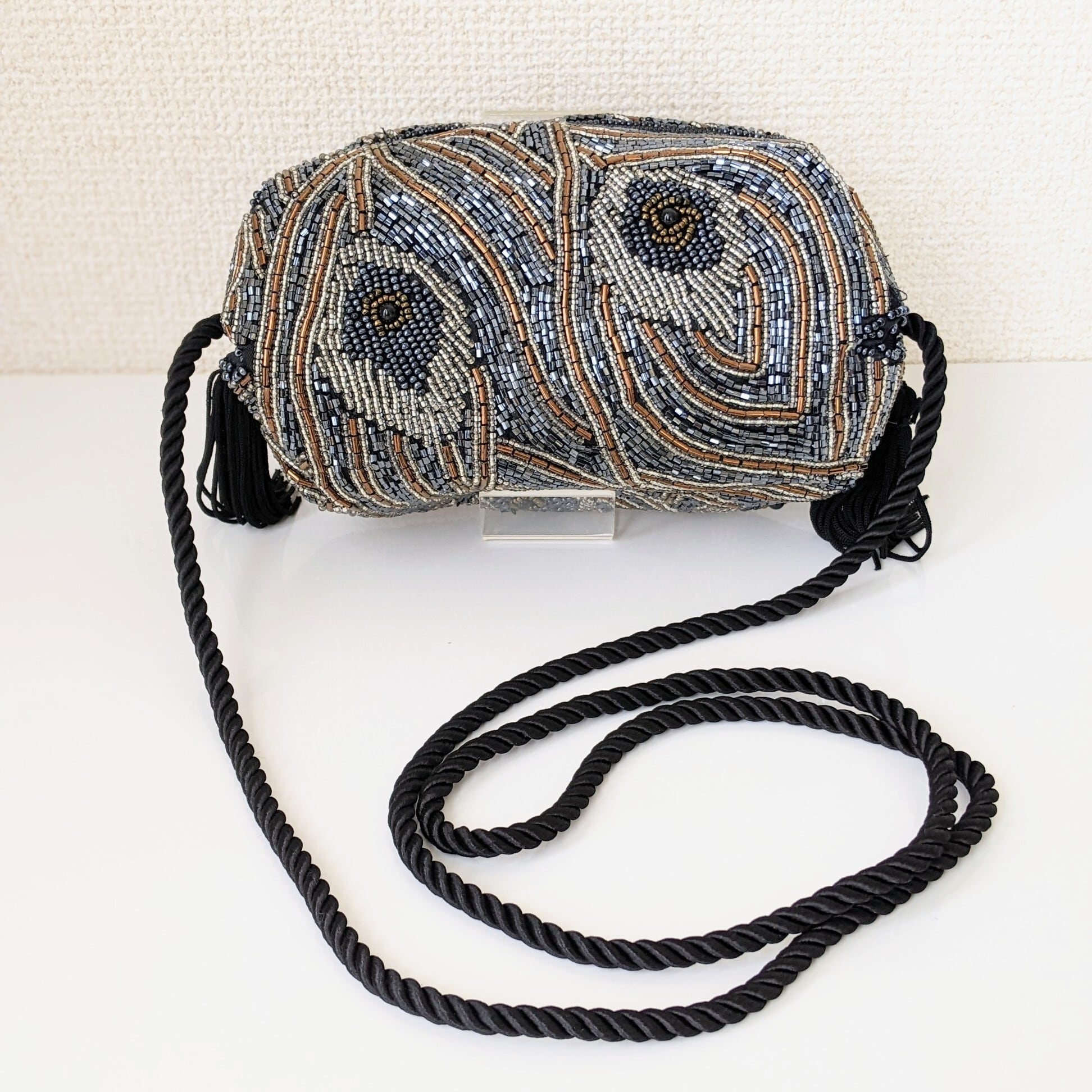 光に反射して美しく輝くヴィンテージビーズバッグ。